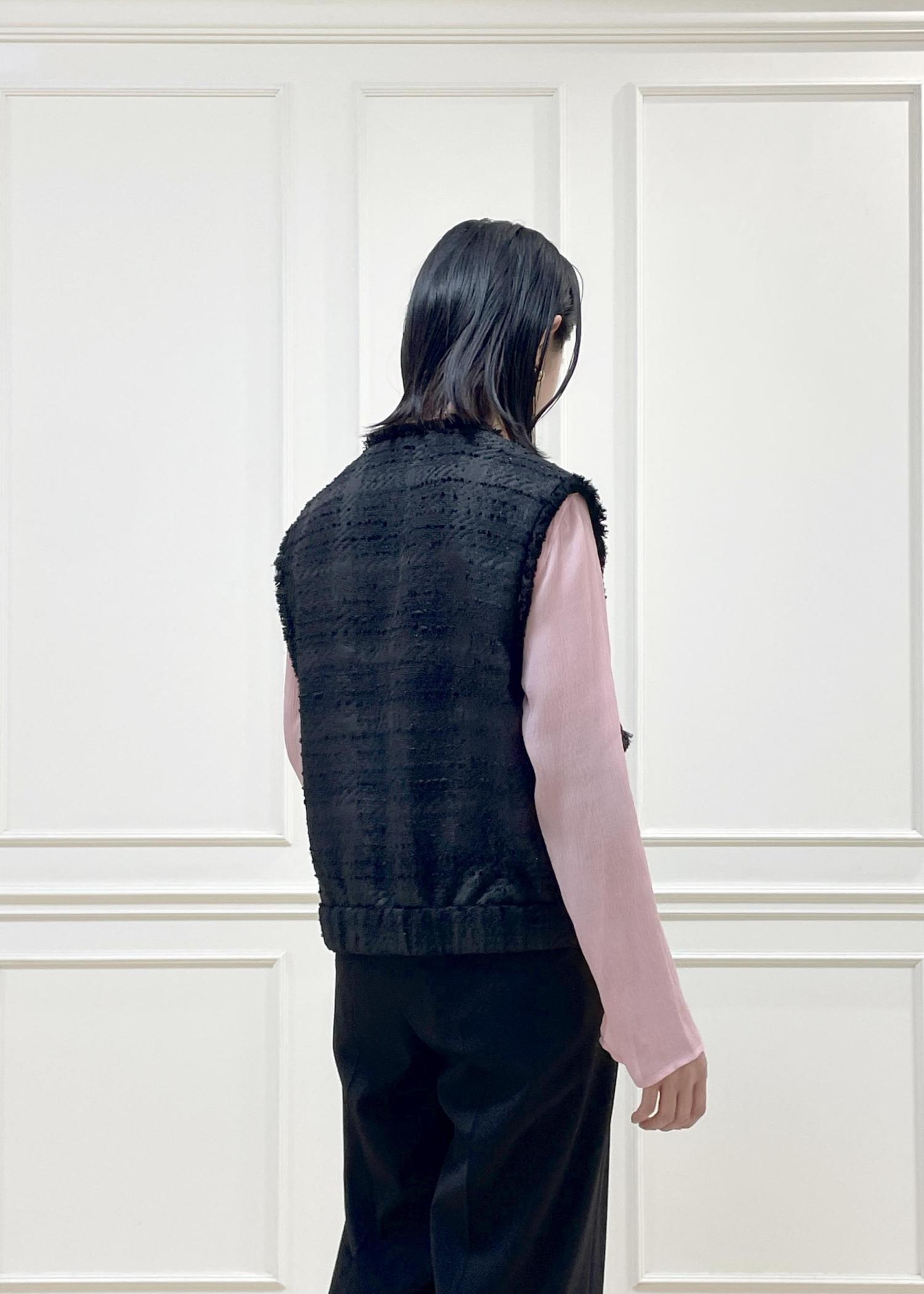 アウトレットROPÉサマーツイードジレブラック / F¥25,080レビュー身幅にゆとりを持たせたリラックス感のあるシルエットで、堅苦しさのない印象に仕上げた一着。