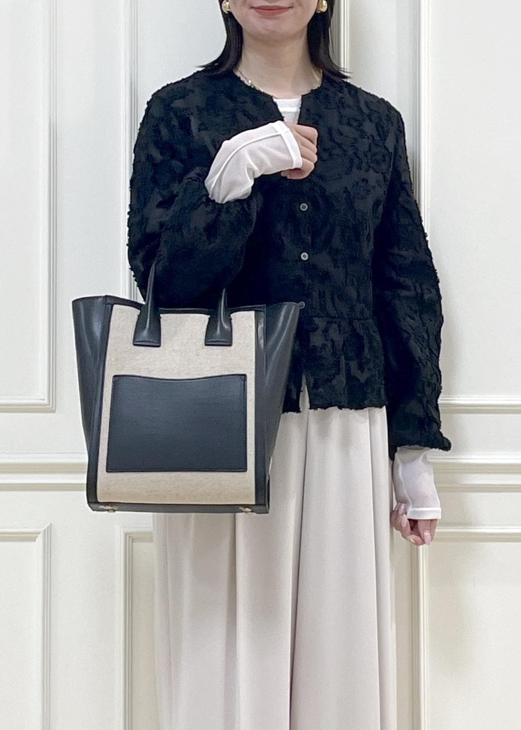 アウトレットROPÉ【E'POR】 I BAG Medium(キャンバスコンビ縦型トートバッグ)ブラック系 / F¥15,400レビュー縦長のバックで、ペットボトル、長財布、折りたたみ傘などが収納しやすいです。