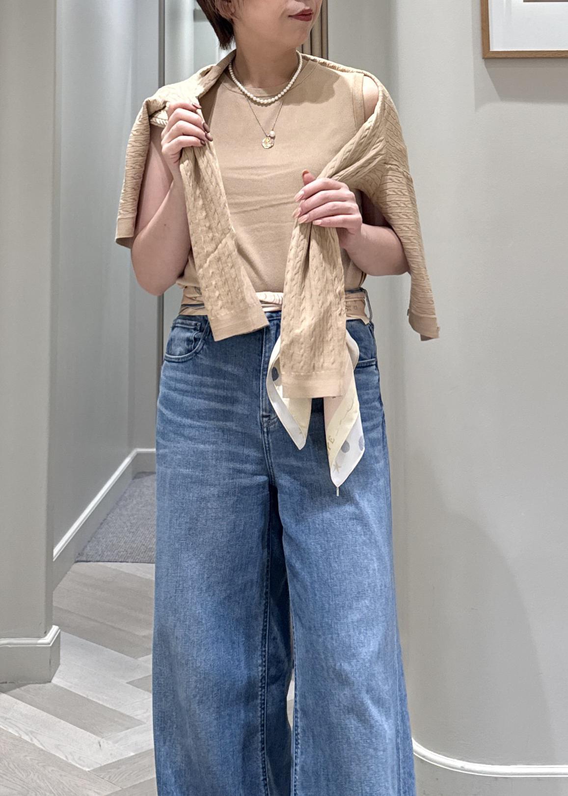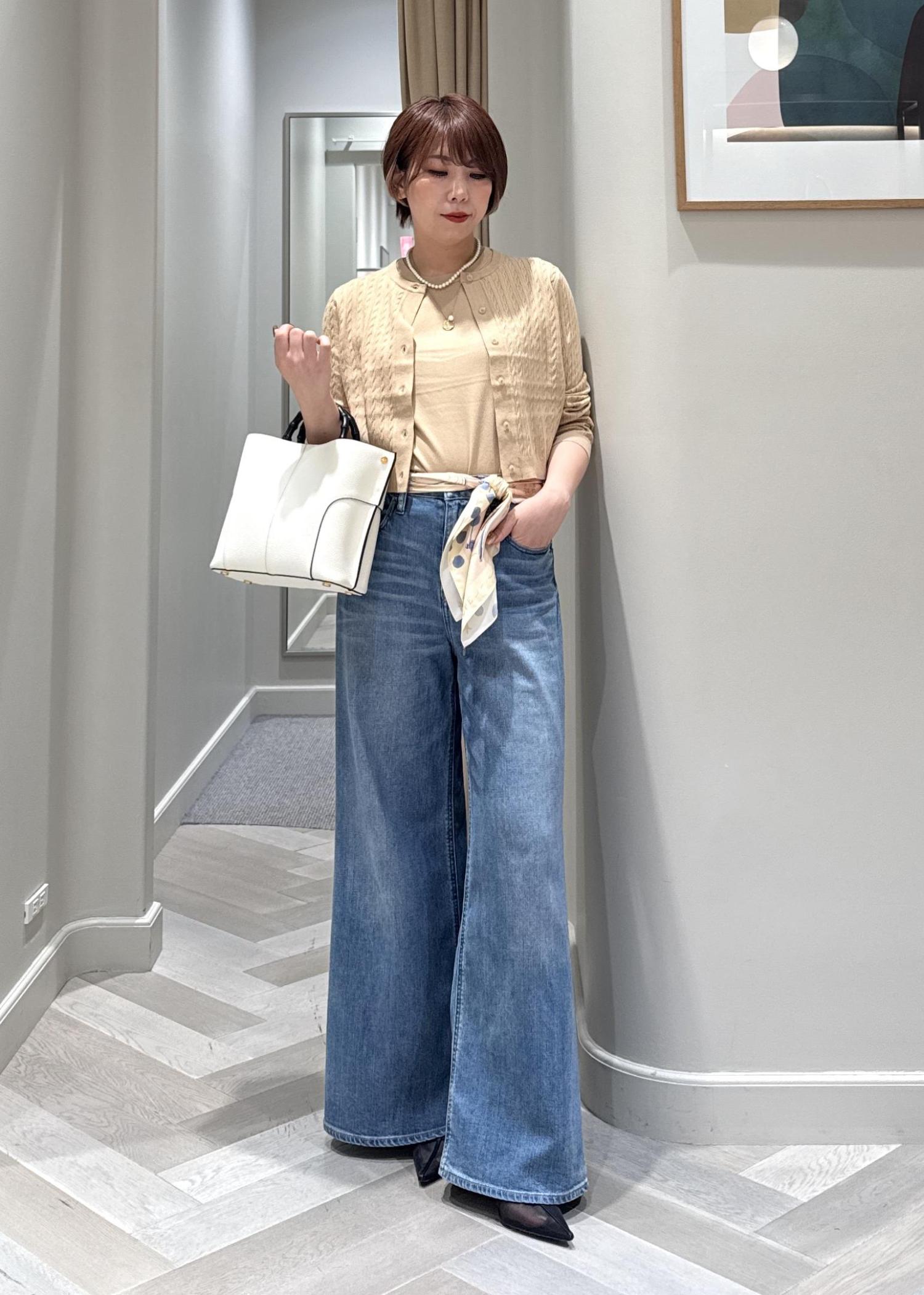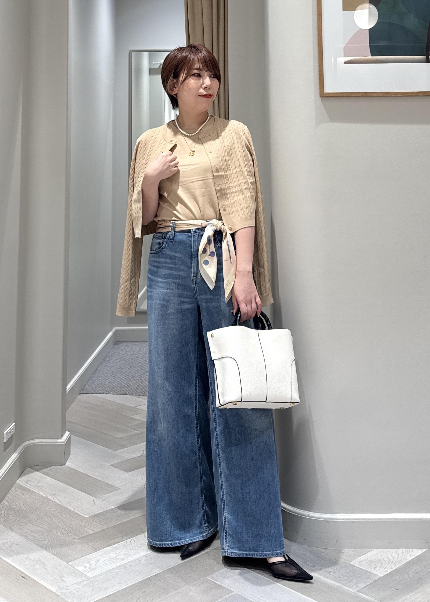きれいめな印象のアンサンブルをデニムでカジュアルダウンしました♪