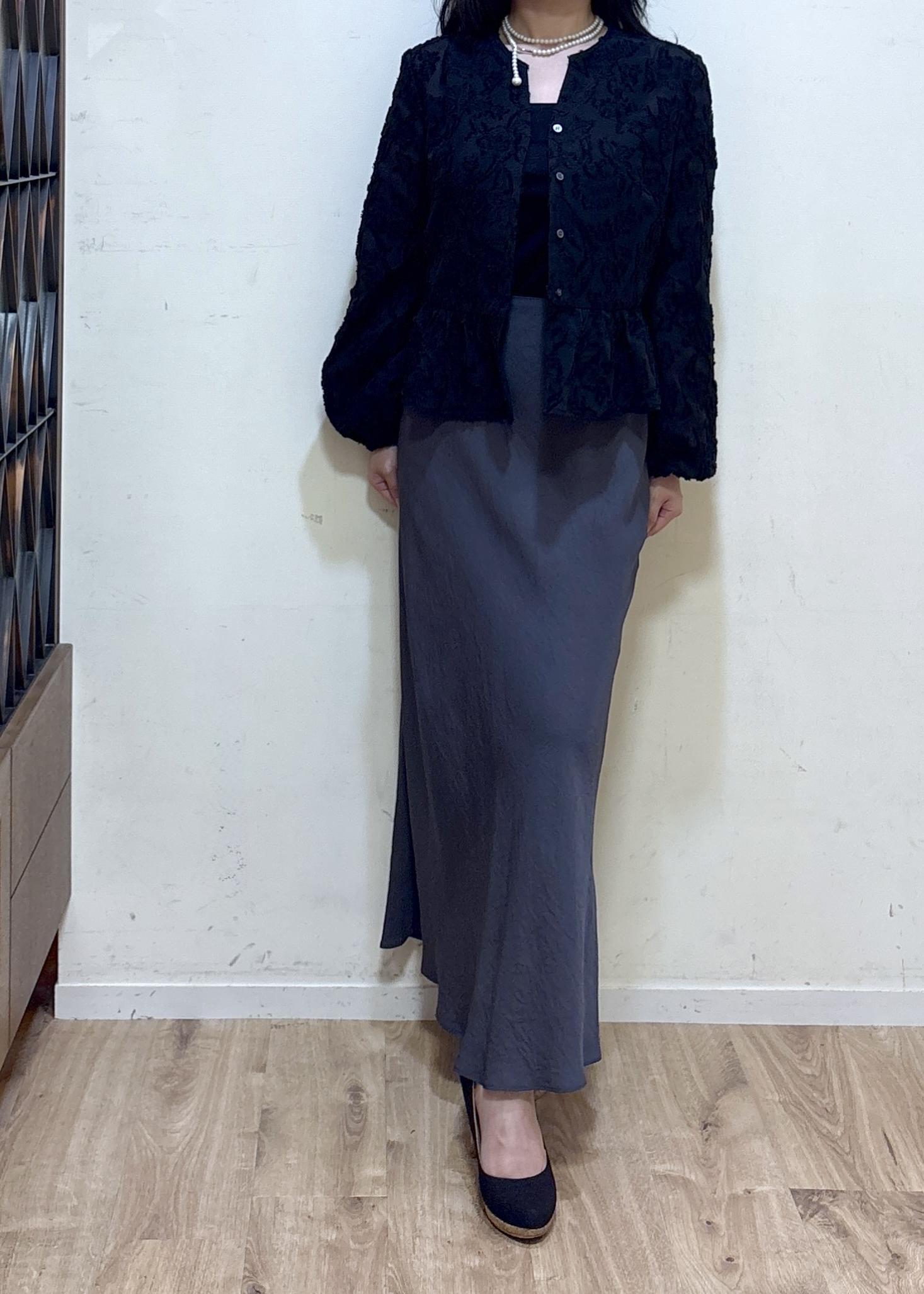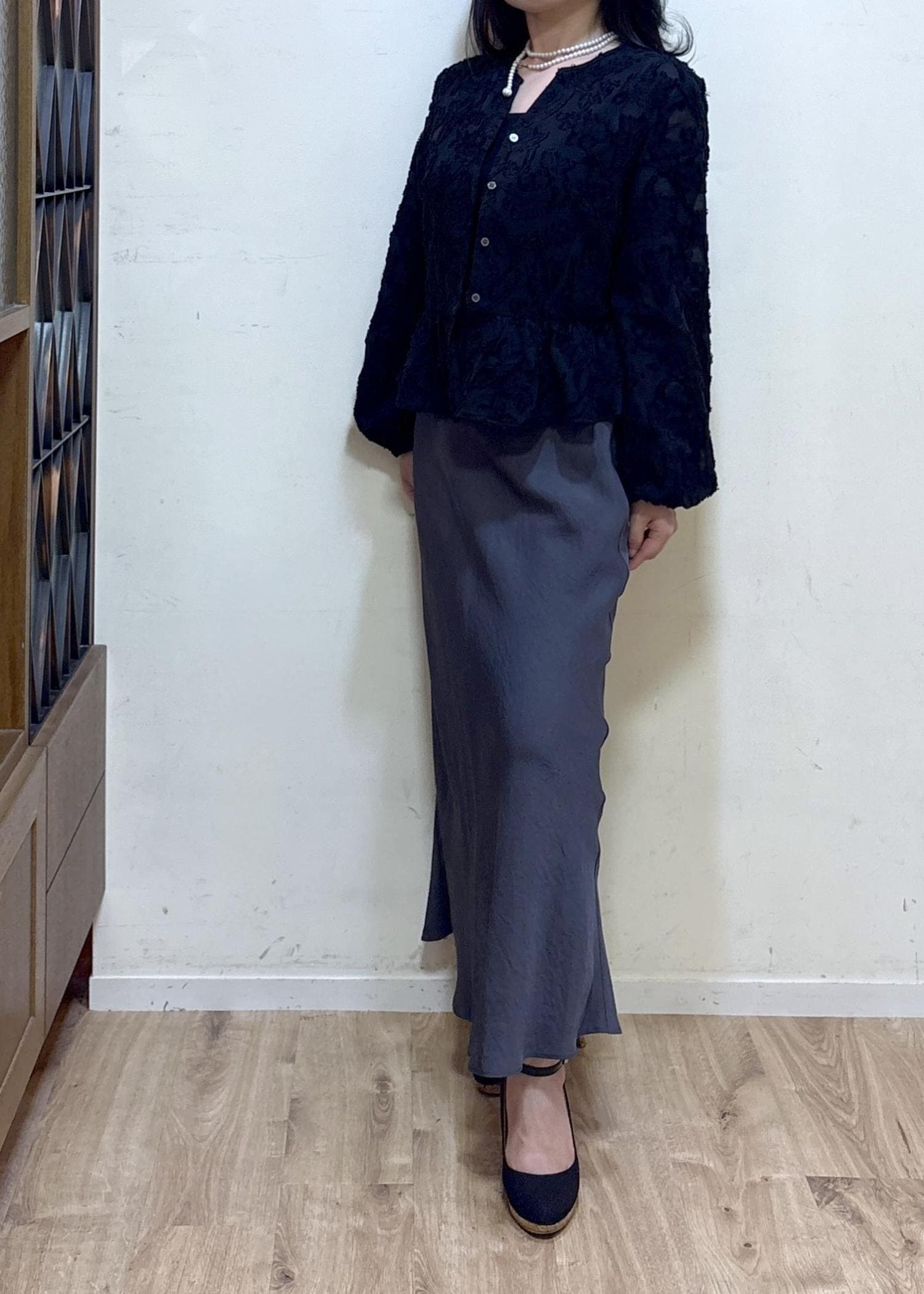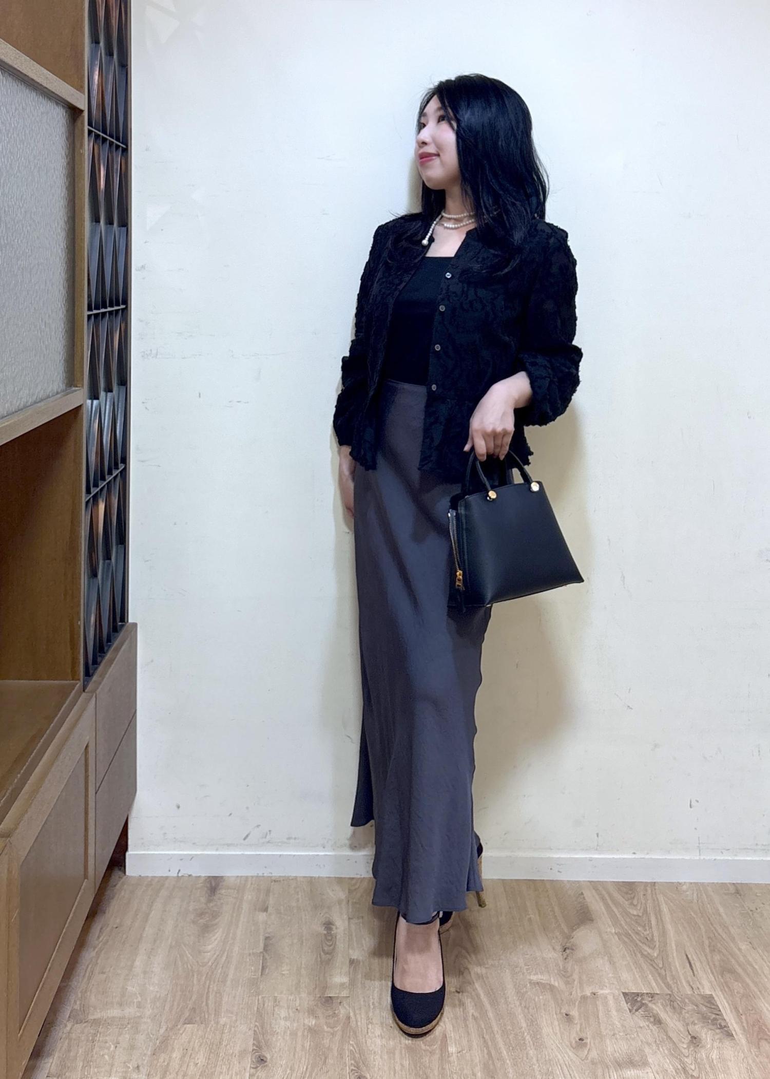艶感や華やかさが漂う品のよいキレイめstylingです。