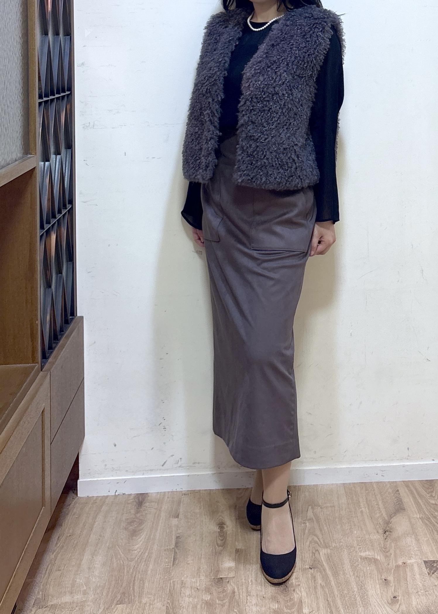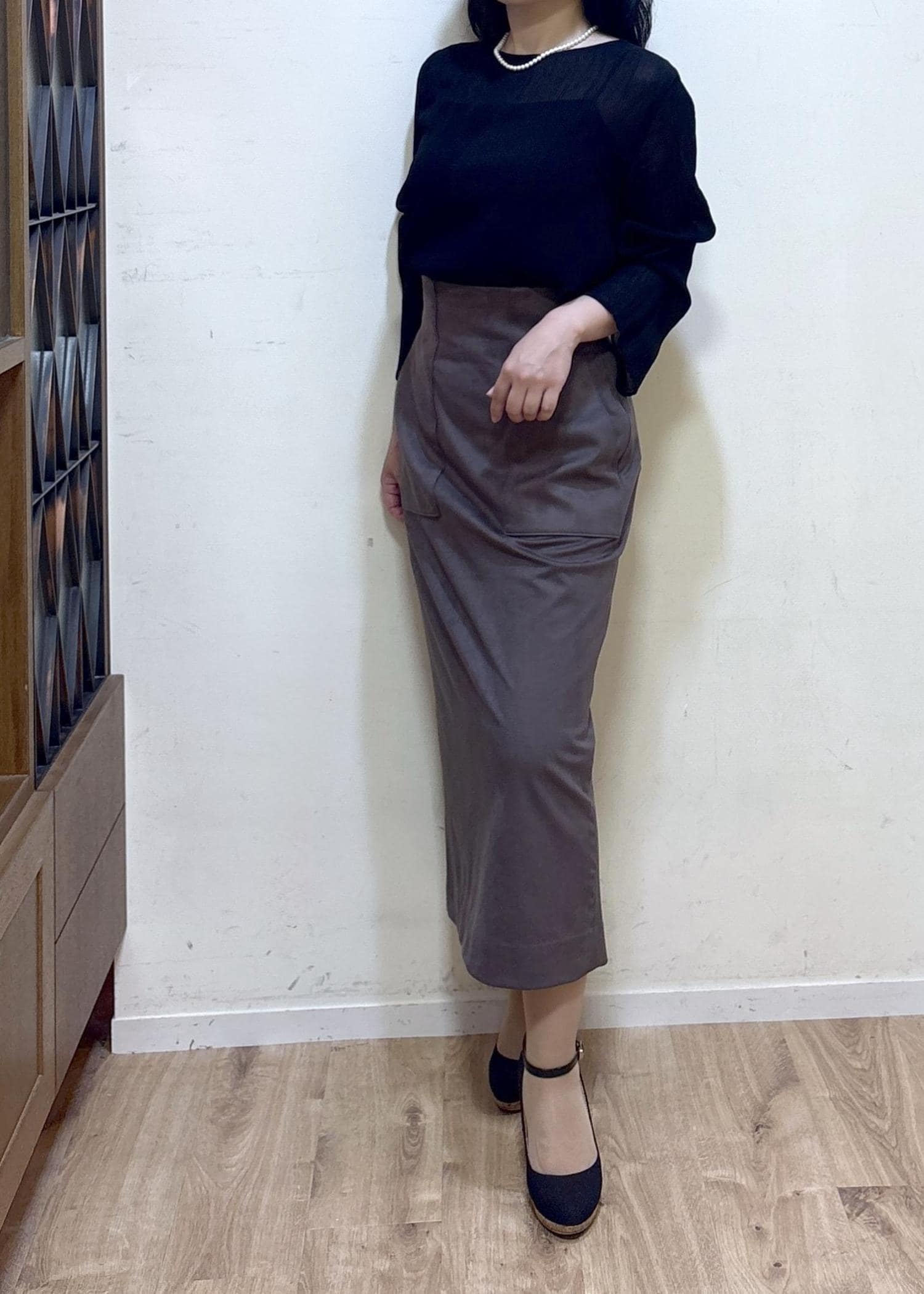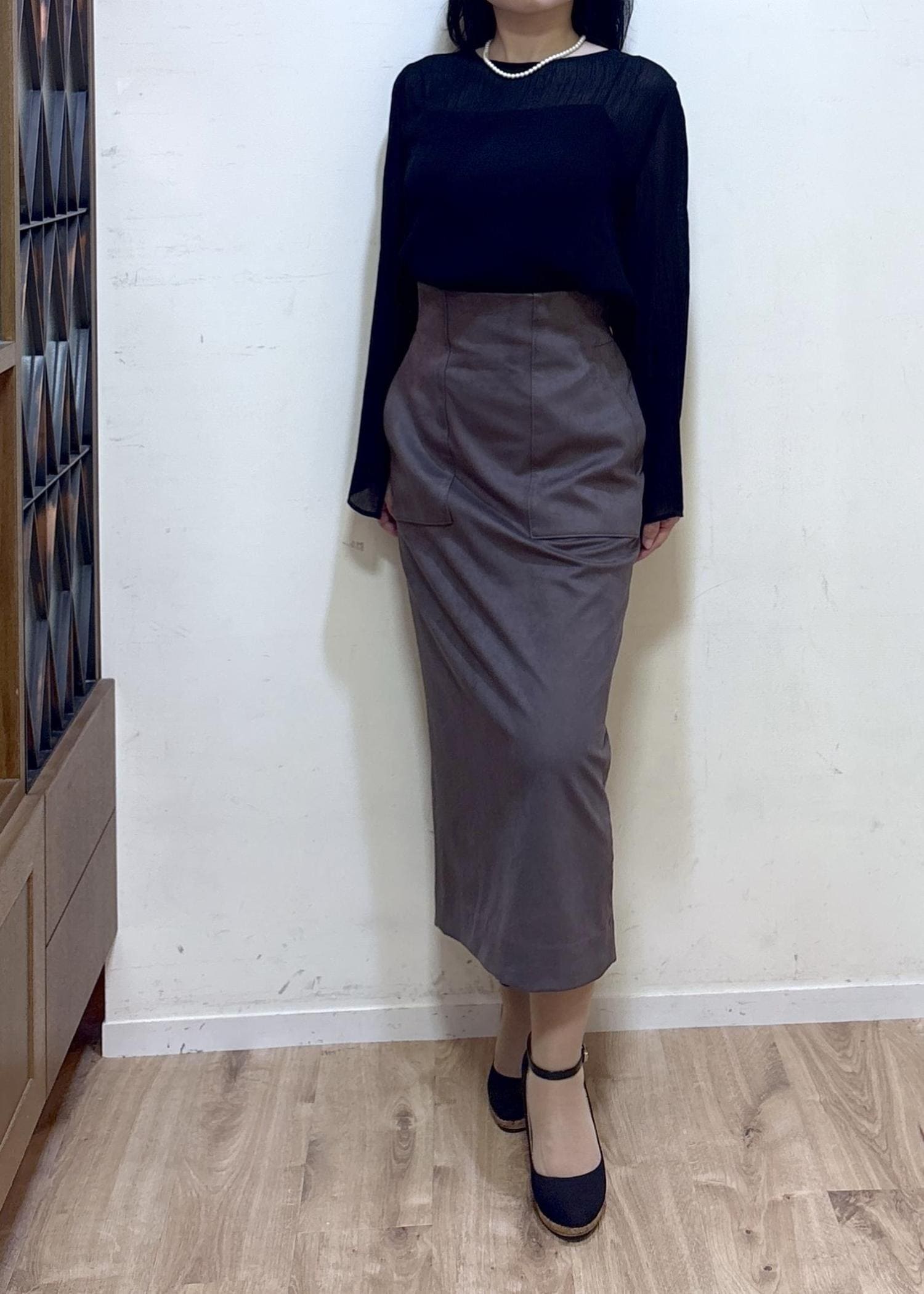 ROPÉ[美人スカート]スエードポケット付きタイトスカート/イージーケアダークブラウン / 36¥25,300レビュー身長152cm 36サイズ着用