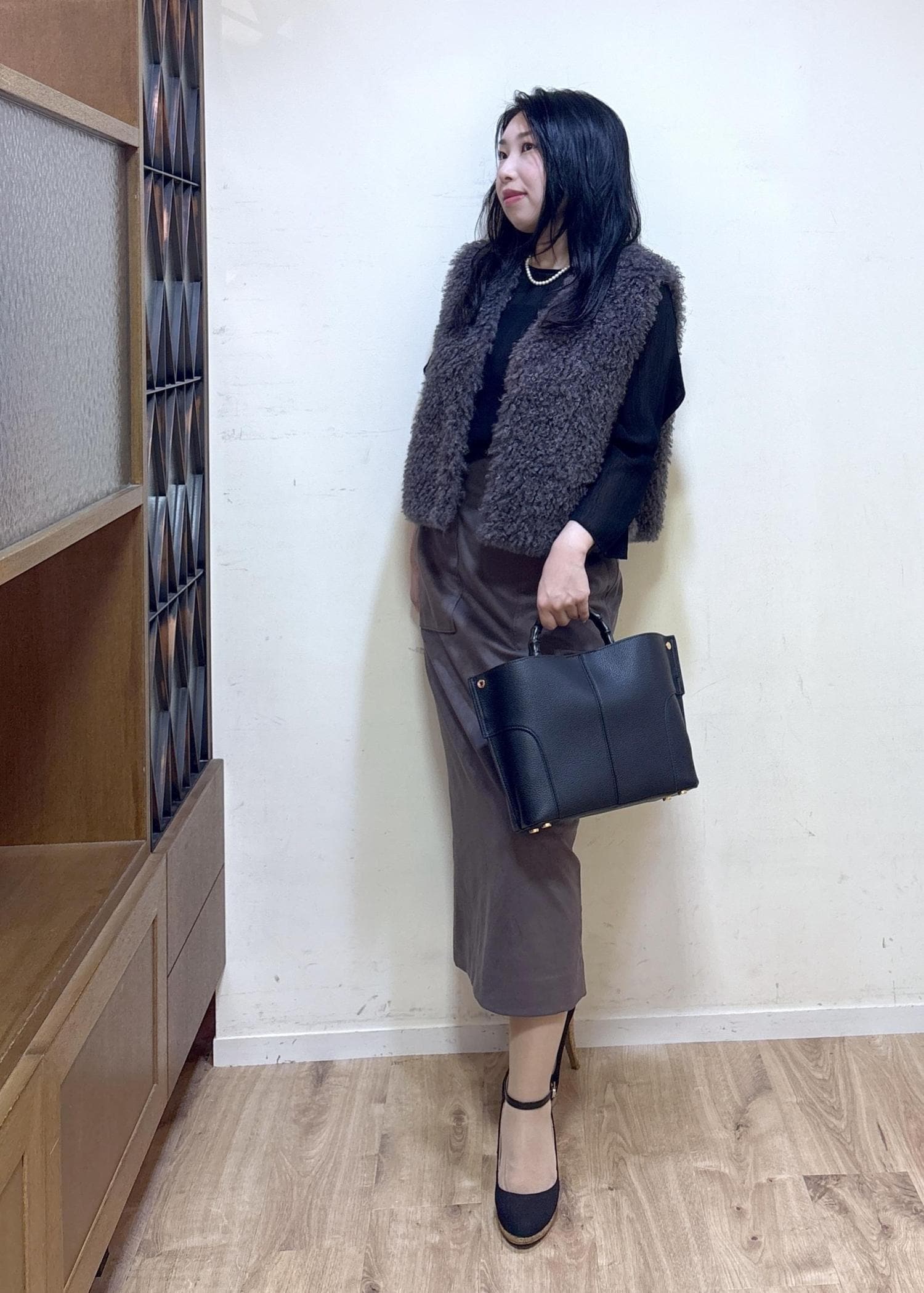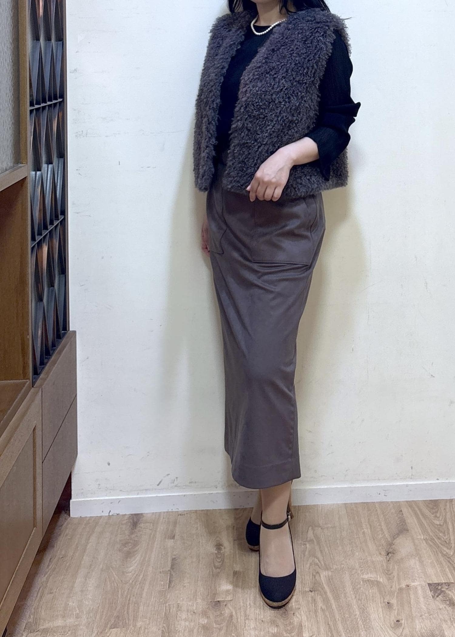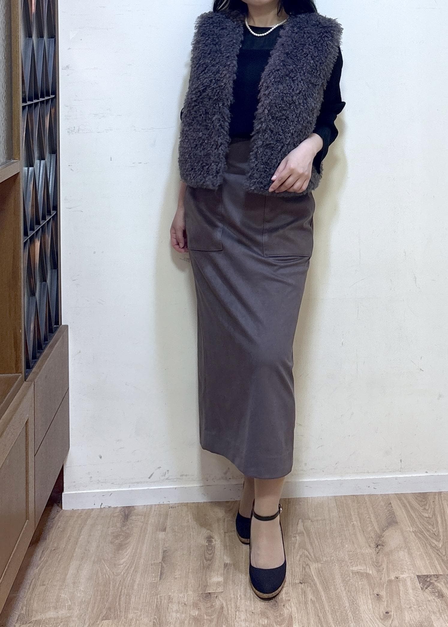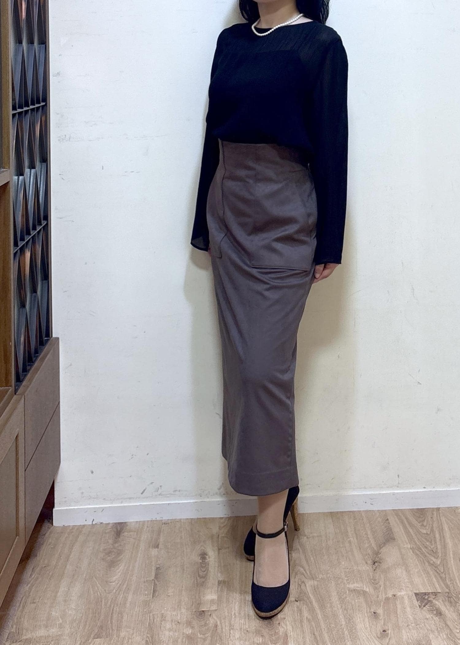 ROPÉ[美人スカート]スエードポケット付きタイトスカート/イージーケアダークブラウン / 36¥25,300レビュー身長152cm 36サイズ着用