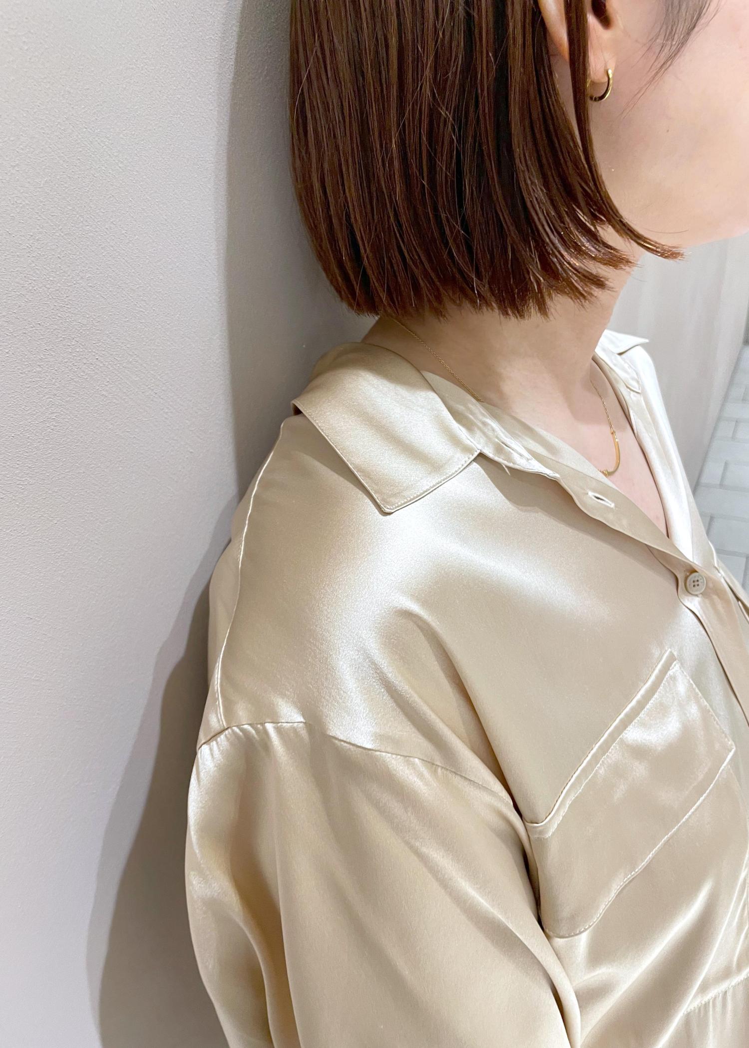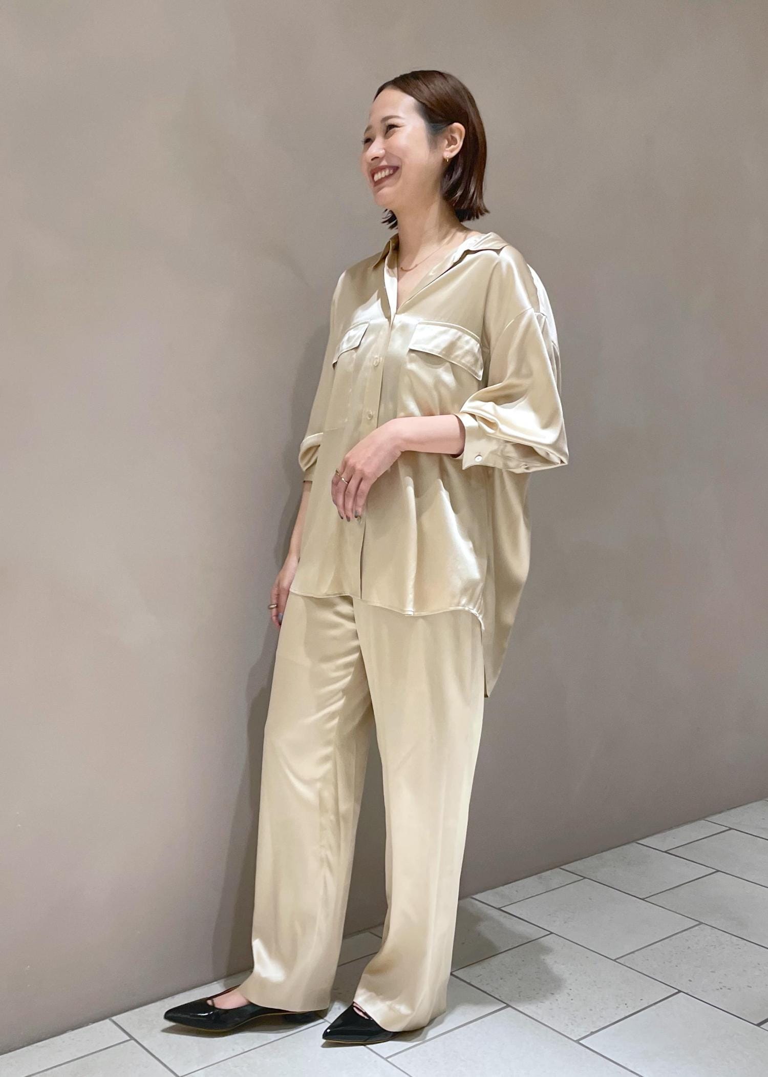 ROPÉ SELECTGWIL SILK SATIN SHIRT|シルクサテンシャツベージュ / F¥46,200レビューゆったりとしたサイズ感で後ろはヒップがしっかりと隠れるほどです。ゆったりとしたサイズ感でも落ち感があるので大きく見えることなく着ることができます!