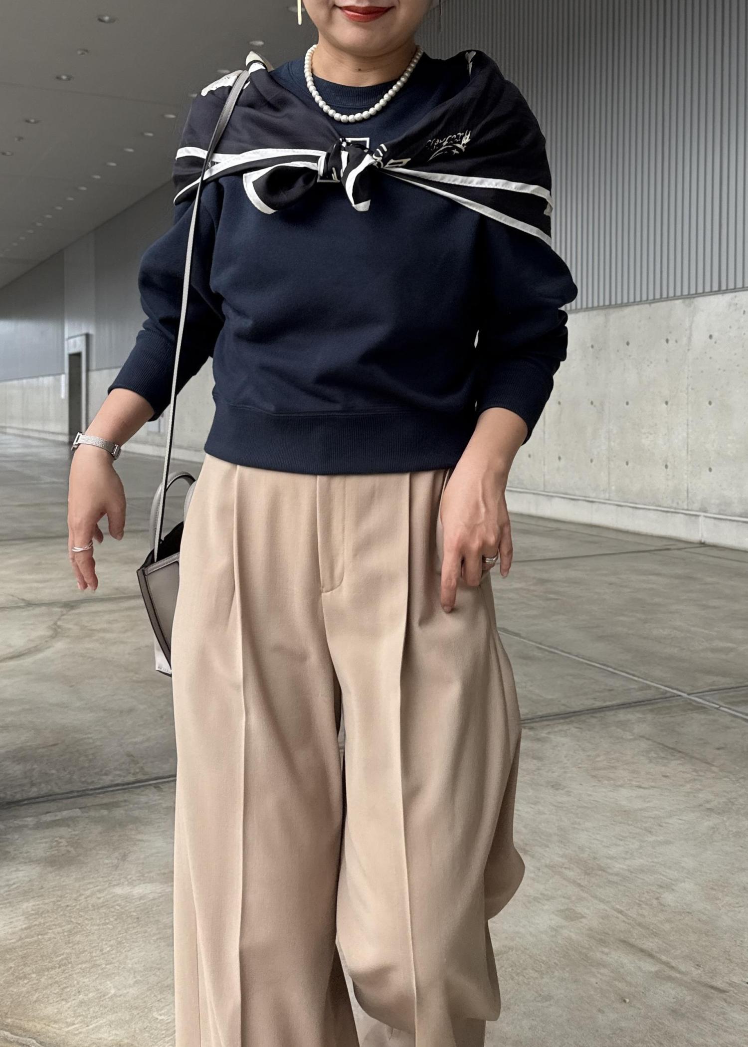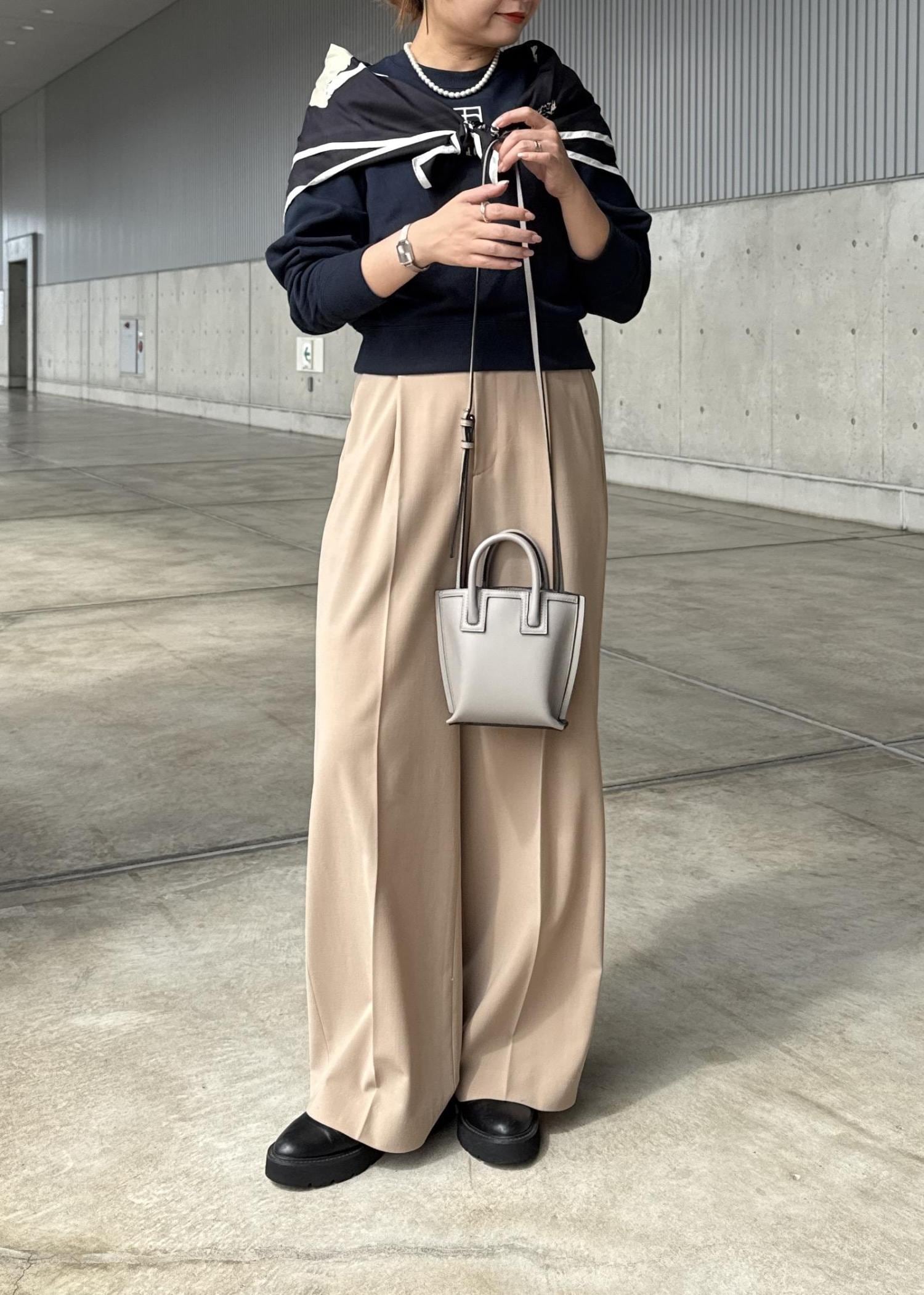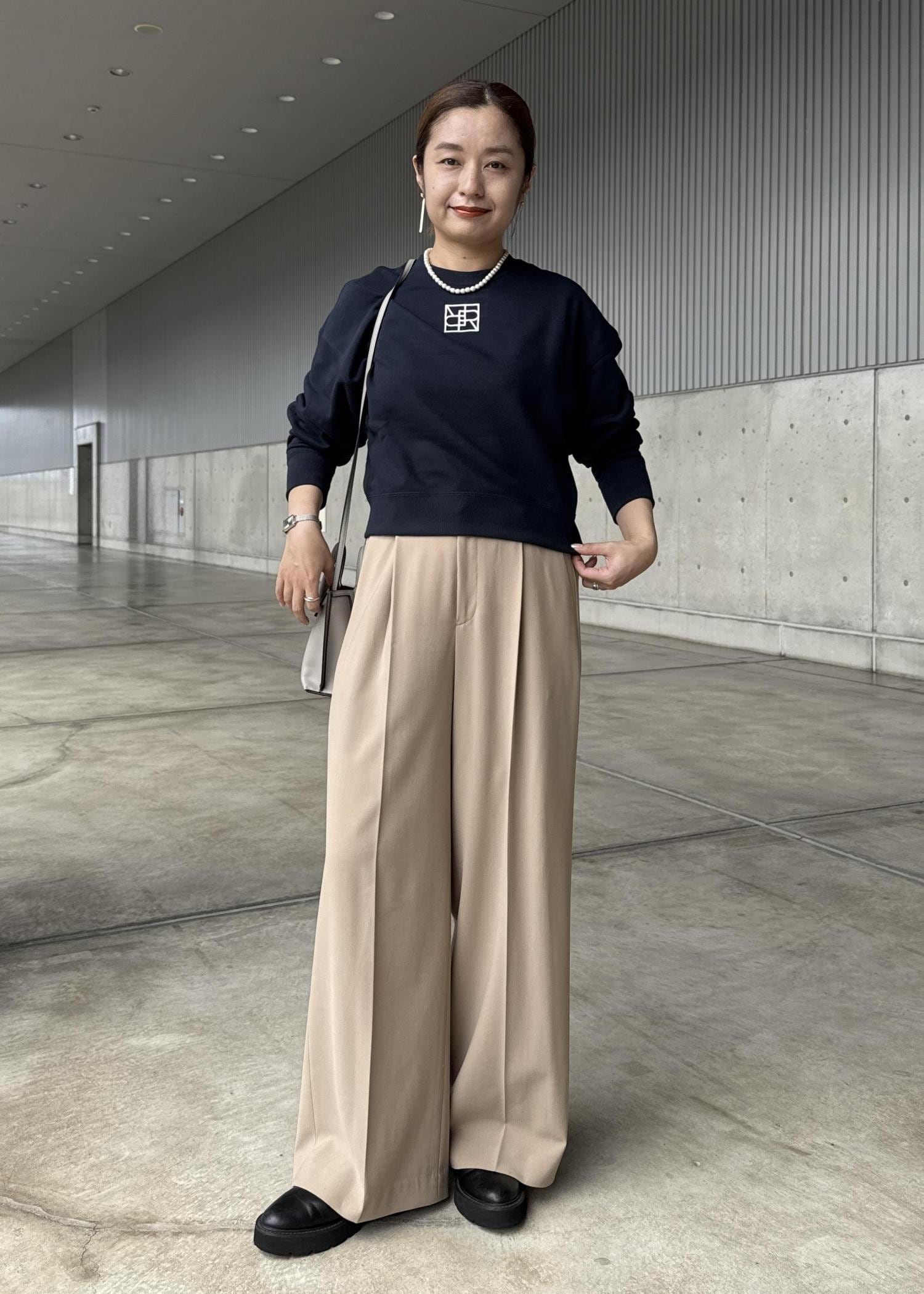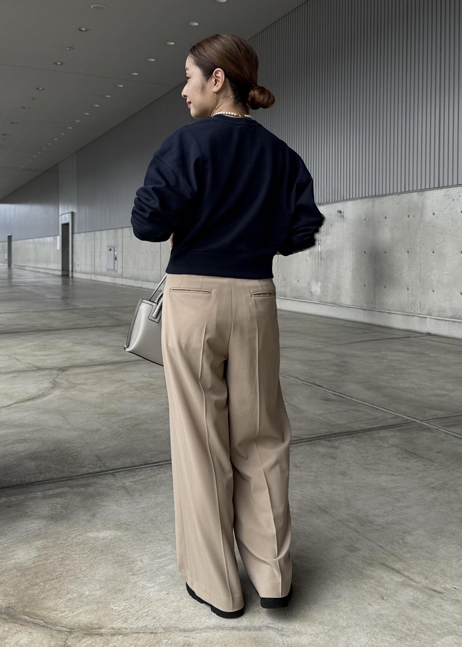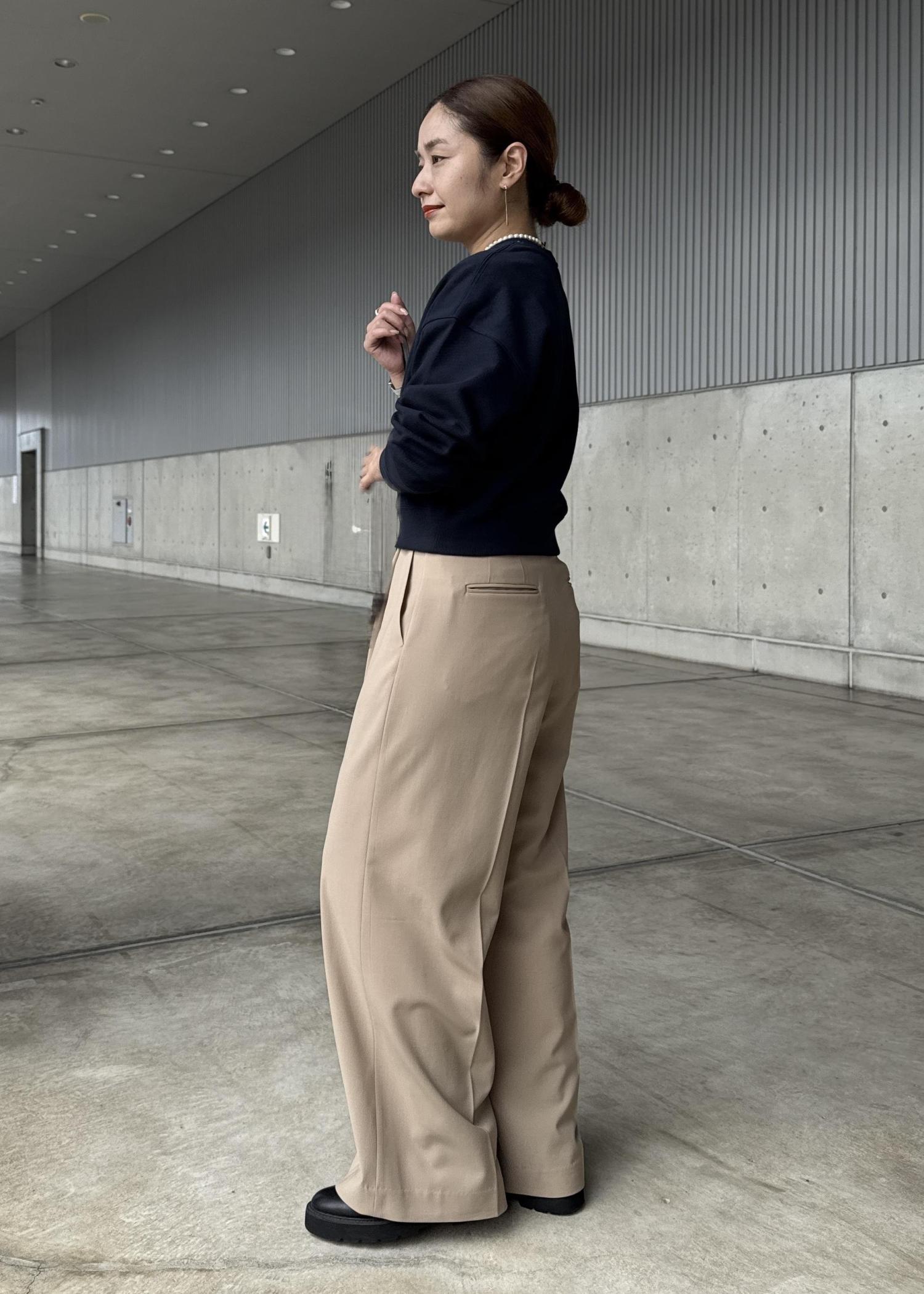 ワイドラインですが、落ち感のある生地なので、ボリュームが出過ぎることなく綺麗なラインです。