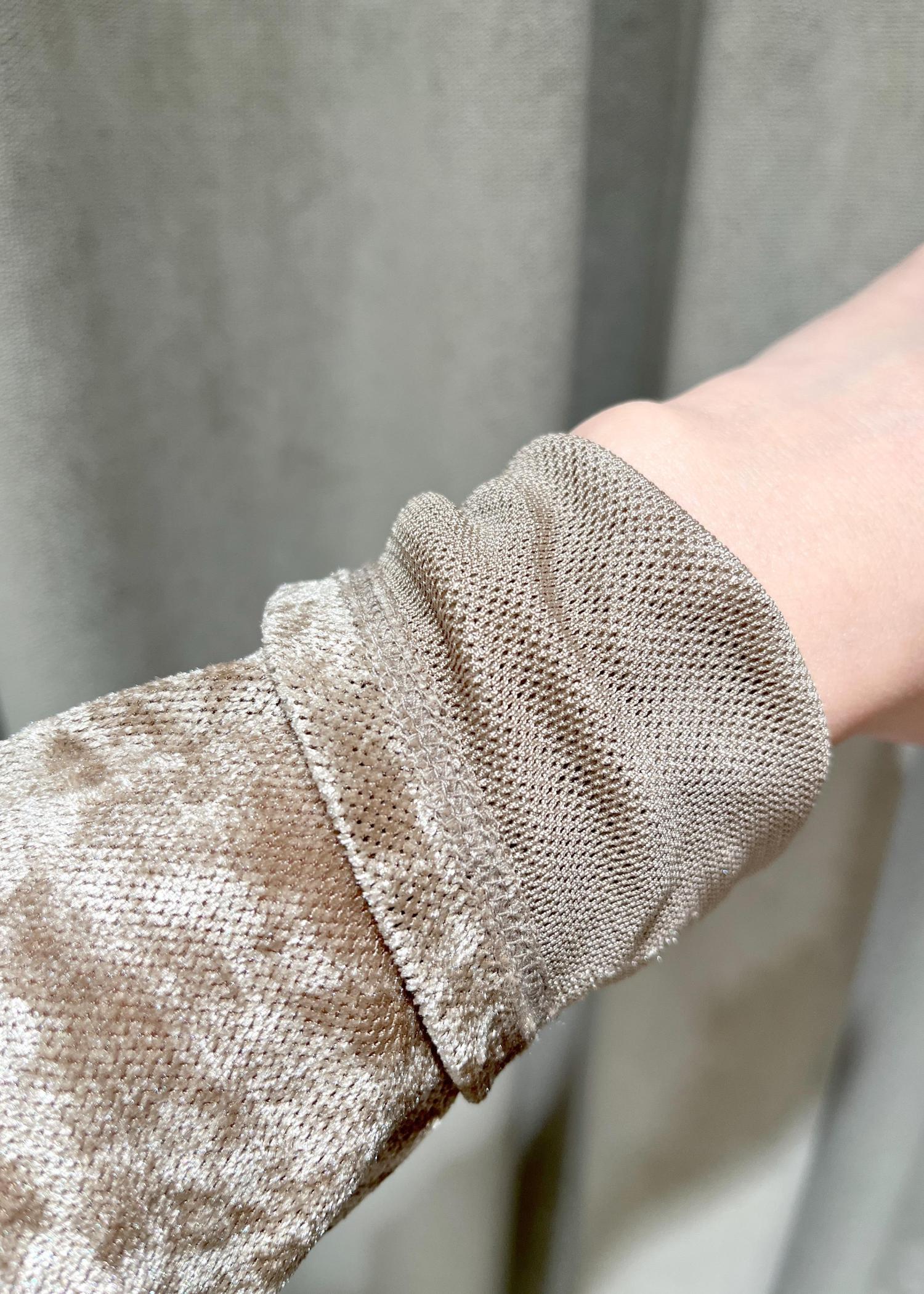 光沢のあるベロアが、着こなしにスパイスを加えてくれて、シンプルながらも季節の変わり目に重宝するアイテムです!