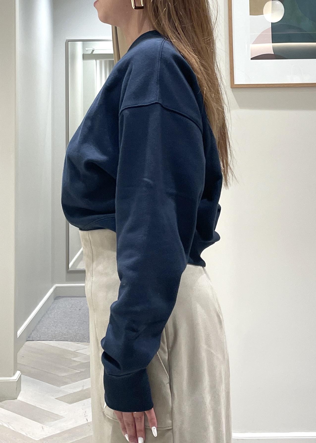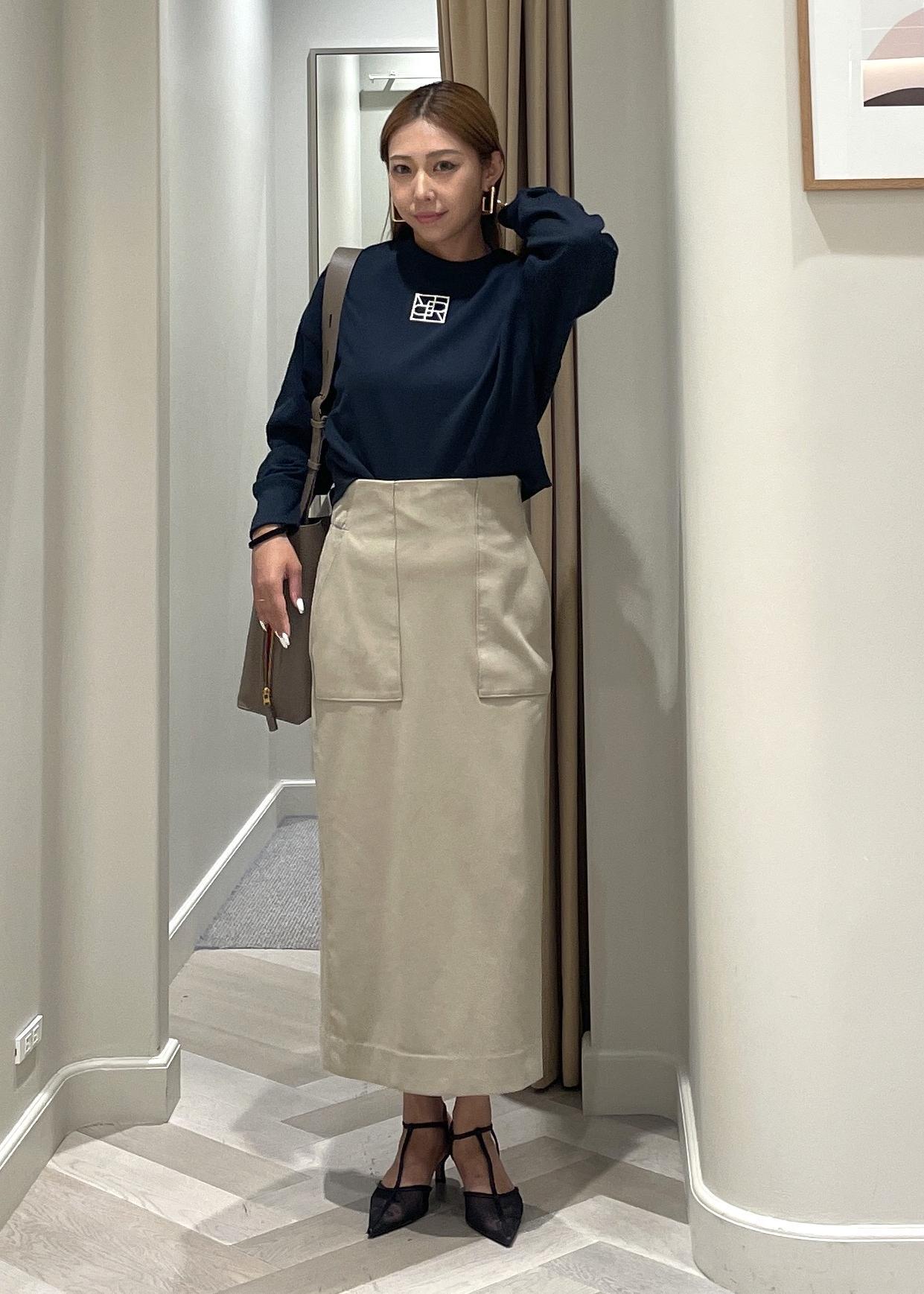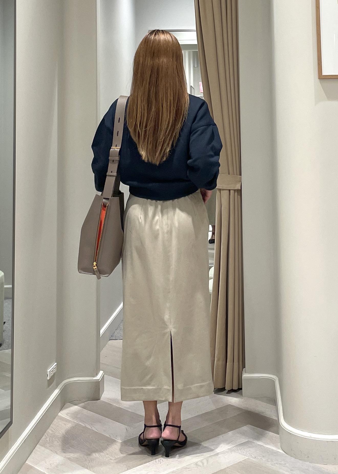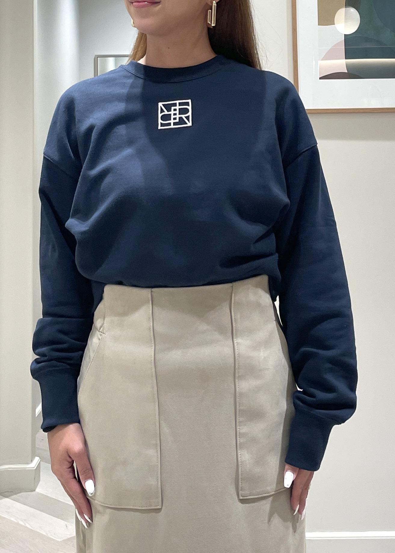 ROPÉアナグラム刺繍スウェットプルオーバー/イージーケアネイビー / F¥18,700レビュー丈感は160cmが着用で、おへそ10cm程下。