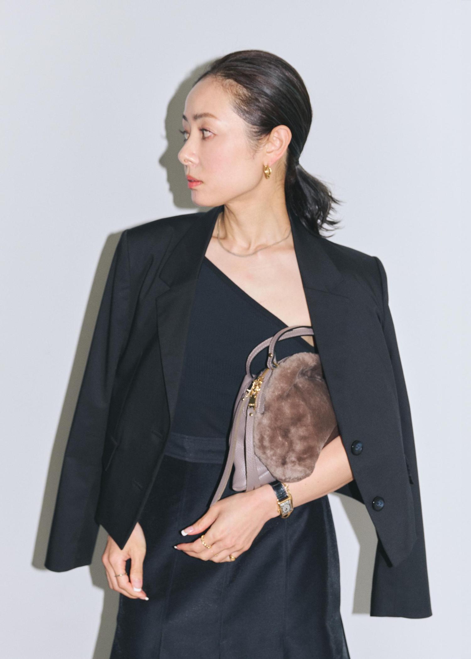 沈みがちなオールブラックなスタイリングは似合うフォルムを見つけたいもの。