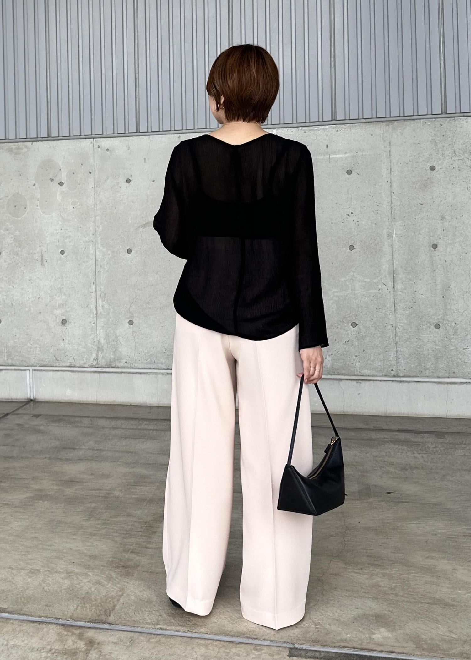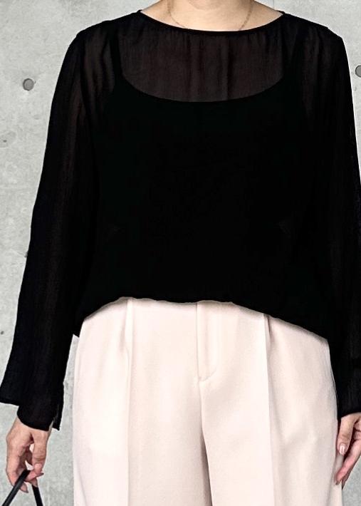ROPÉ【洗える・前後2WAY】楊柳プルオーバー シアーブラウス【WEB・一部店舗限定】ブラック / F¥17,600レビュー162センチ 普段トップス38サイズ