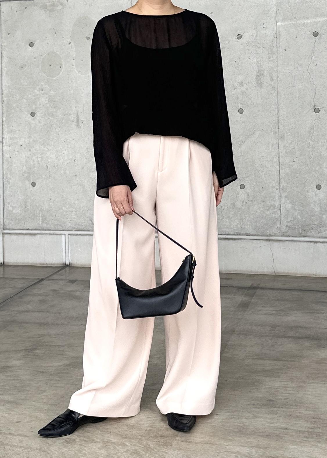 見た目はすっきりですがマチが広めなので、ミニ財布、ハンカチ、携帯など必需品は見た目以上に収納ができます◎