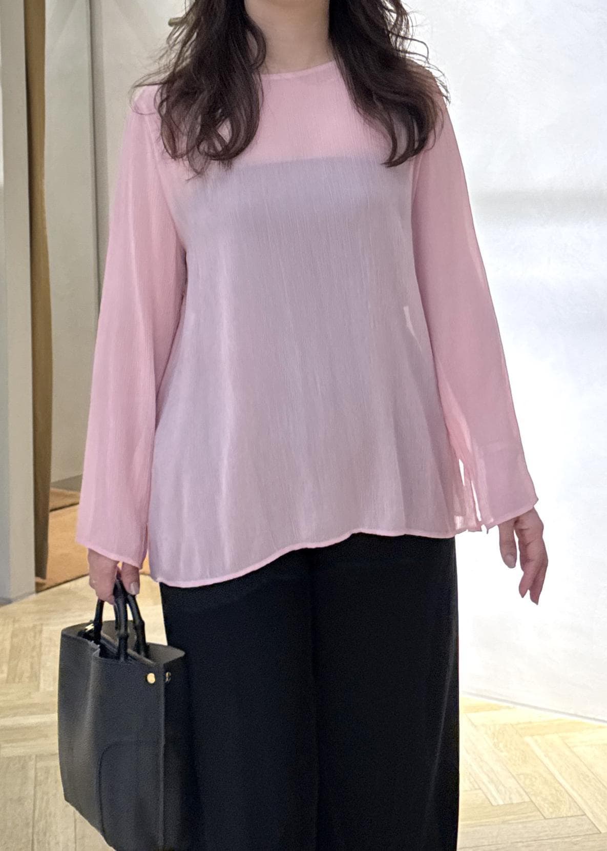 シアーで軽やかなので今からジャストで着やすいのと長袖インナーをプラスすれば冬にもお召しいただけますよ。