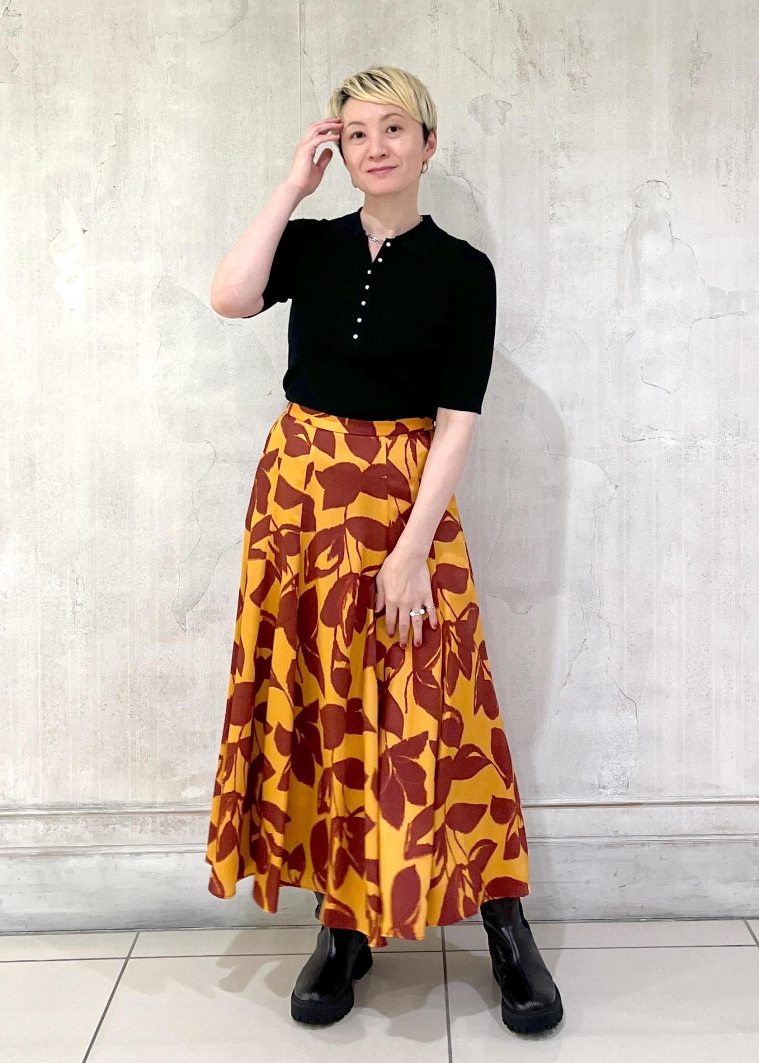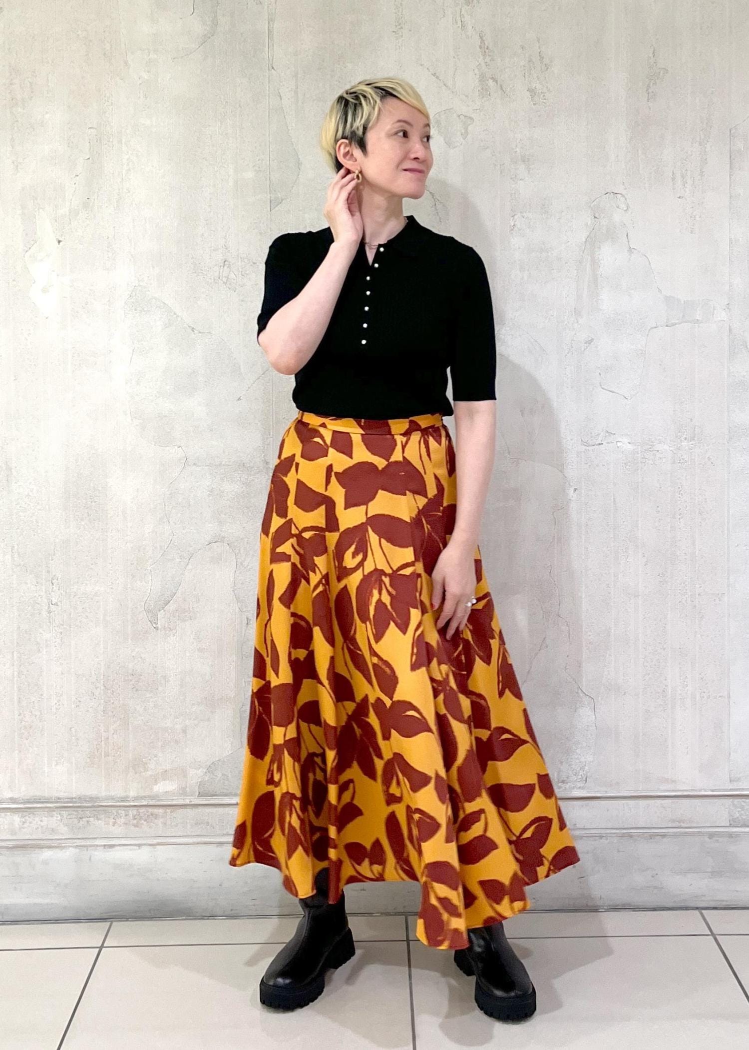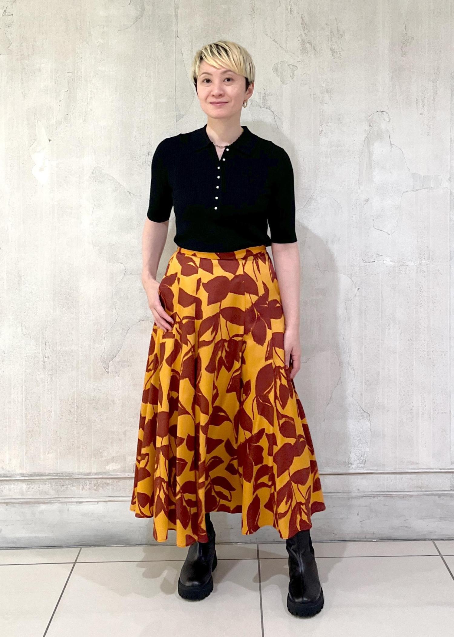 アウトレットROPÉDEVEAUXジオメトリックフラワーイージースカートオレンジ / 38¥13,750レビューフランスのDEVEAUX社テキスタイルを使用した人気シリーズのフレアスカート。