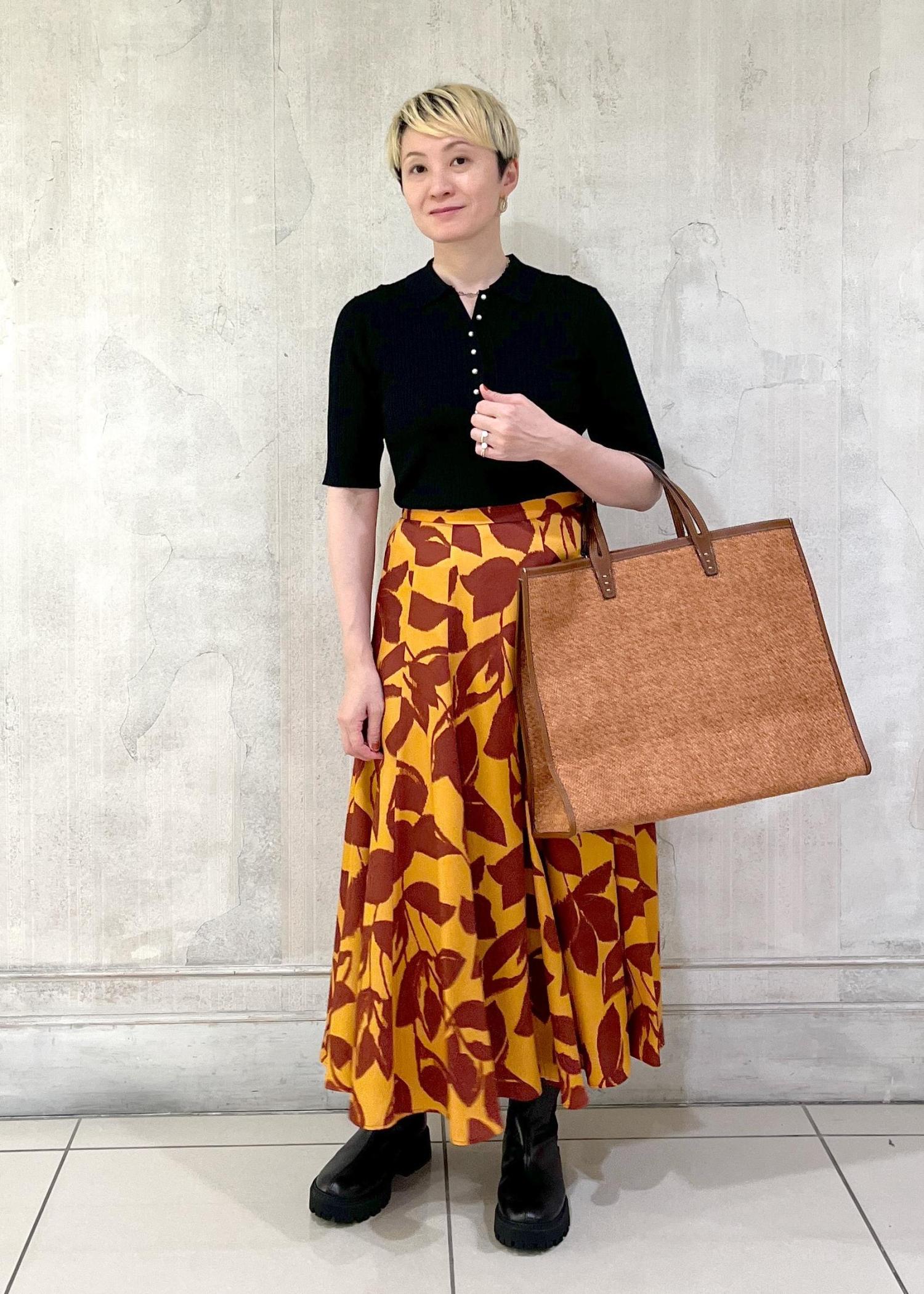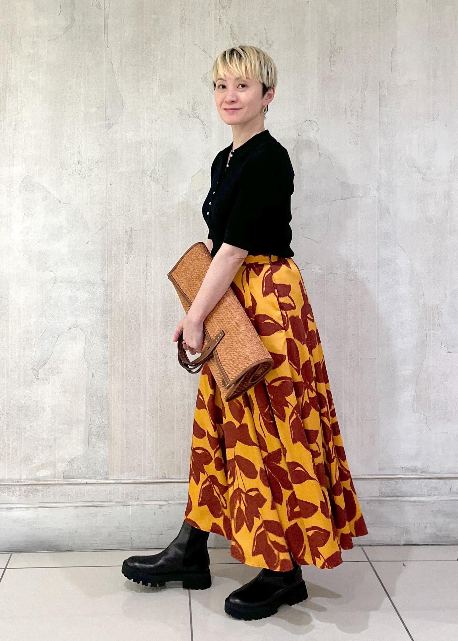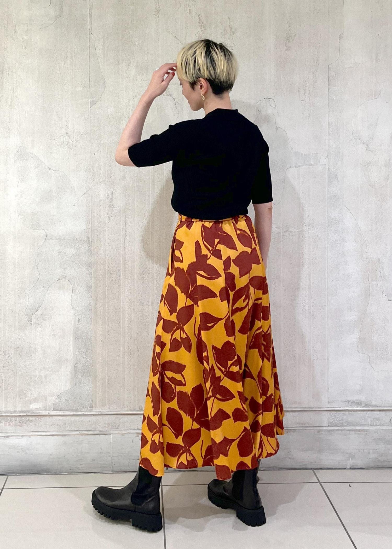 アウトレットROPÉDEVEAUXジオメトリックフラワーイージースカートオレンジ / 38¥13,750レビューフランスのDEVEAUX社テキスタイルを使用した人気シリーズのフレアスカート。