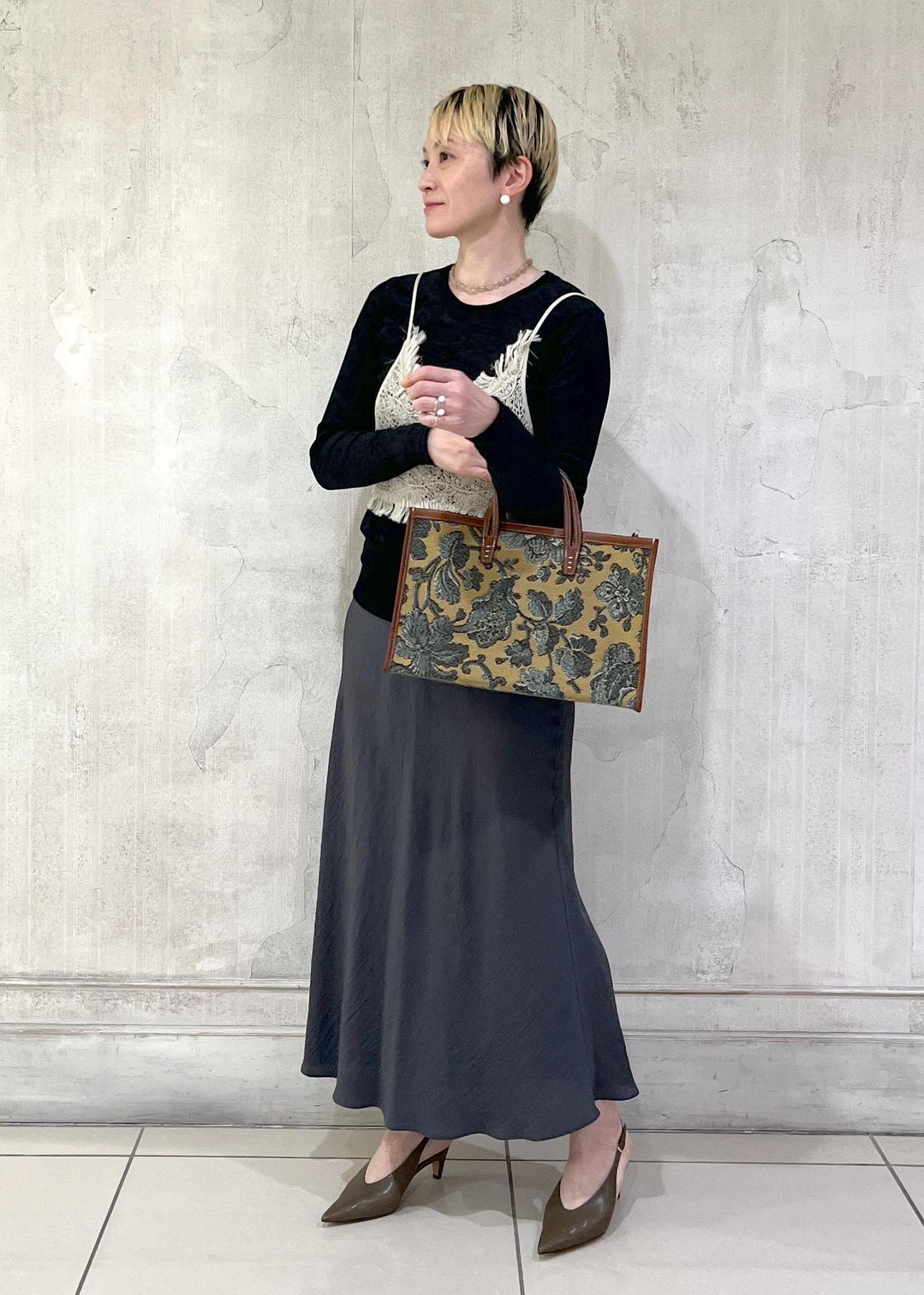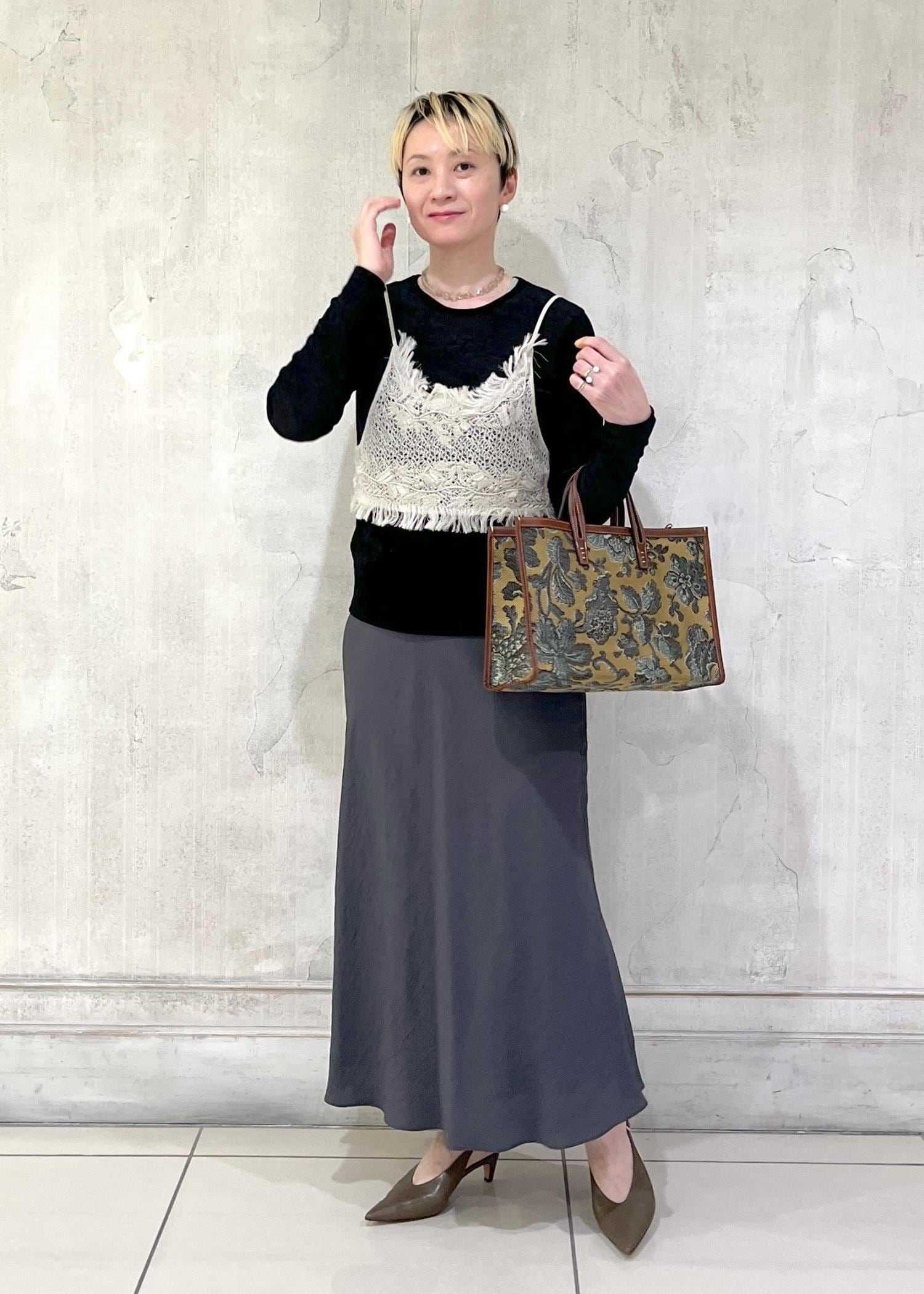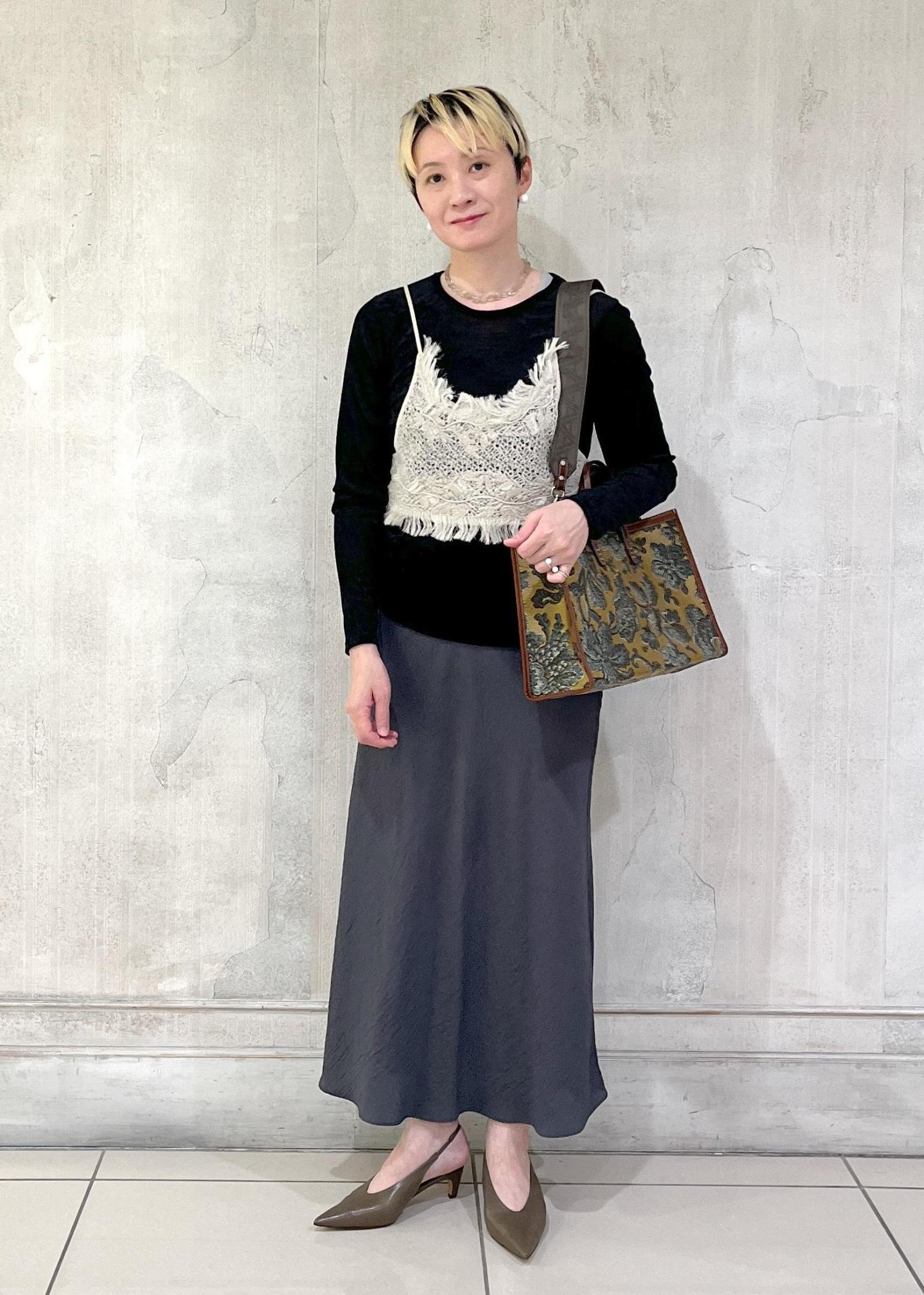 柔らかな落ち感があり、少し身体のラインを拾いやすいので、ヒップが気になる方はインナーに気をつけていただくと良さそうです。