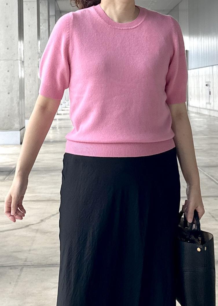 ROPÉウールカシミヤブレンド 5分袖ニットプルオーバー/イージーケアピンク系 / F¥19,800レビュー身長161㎝で普段38サイズを着用。