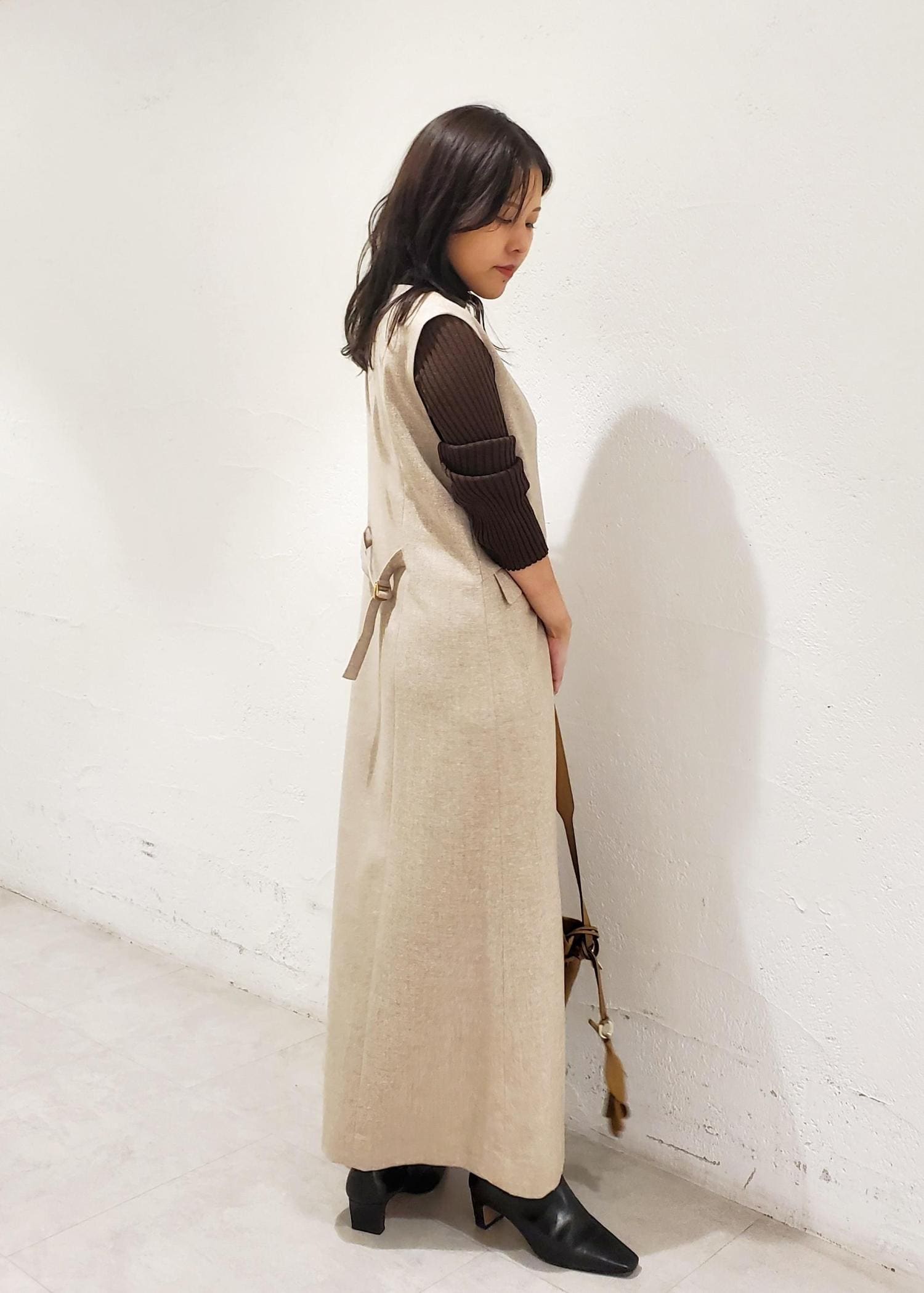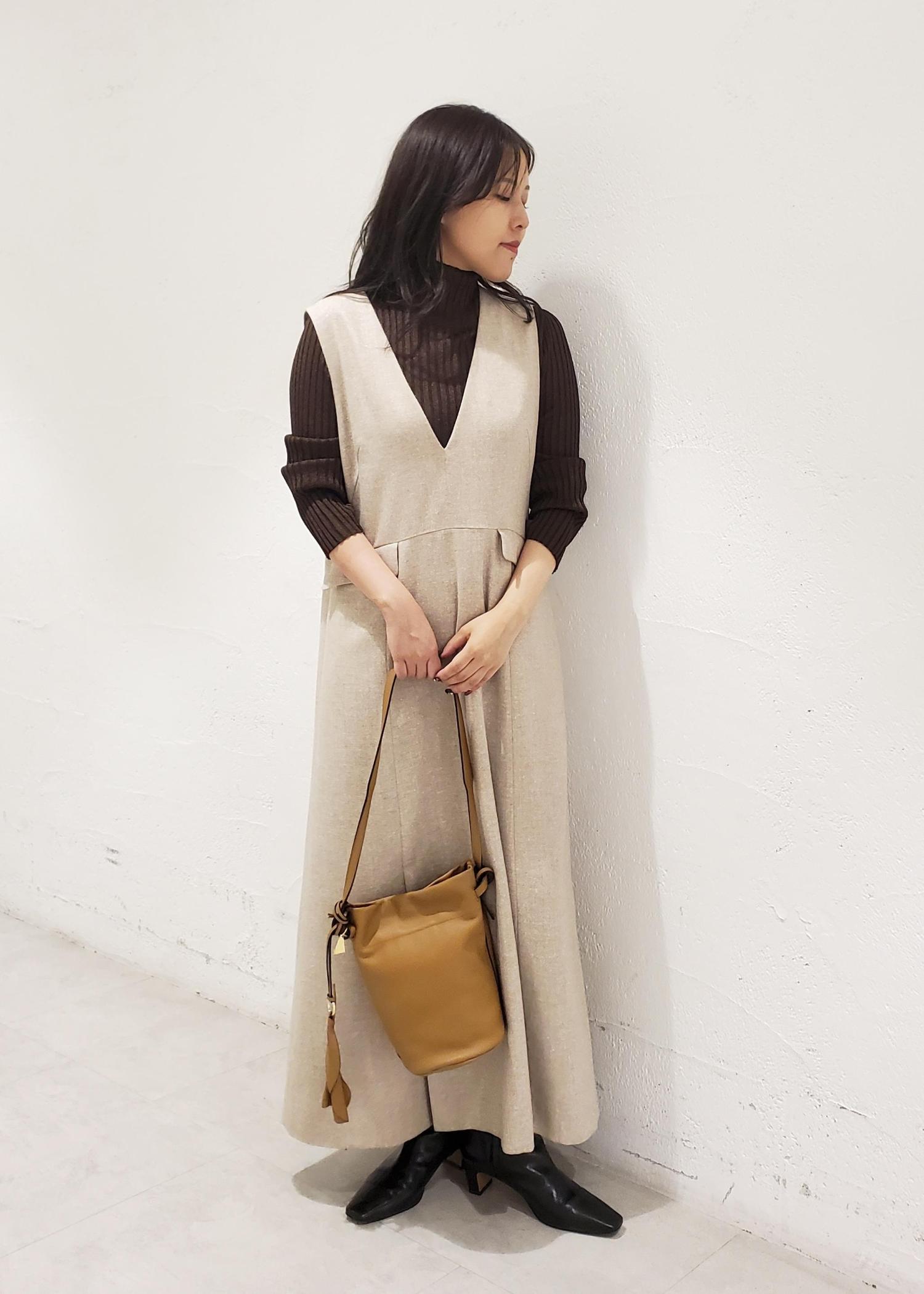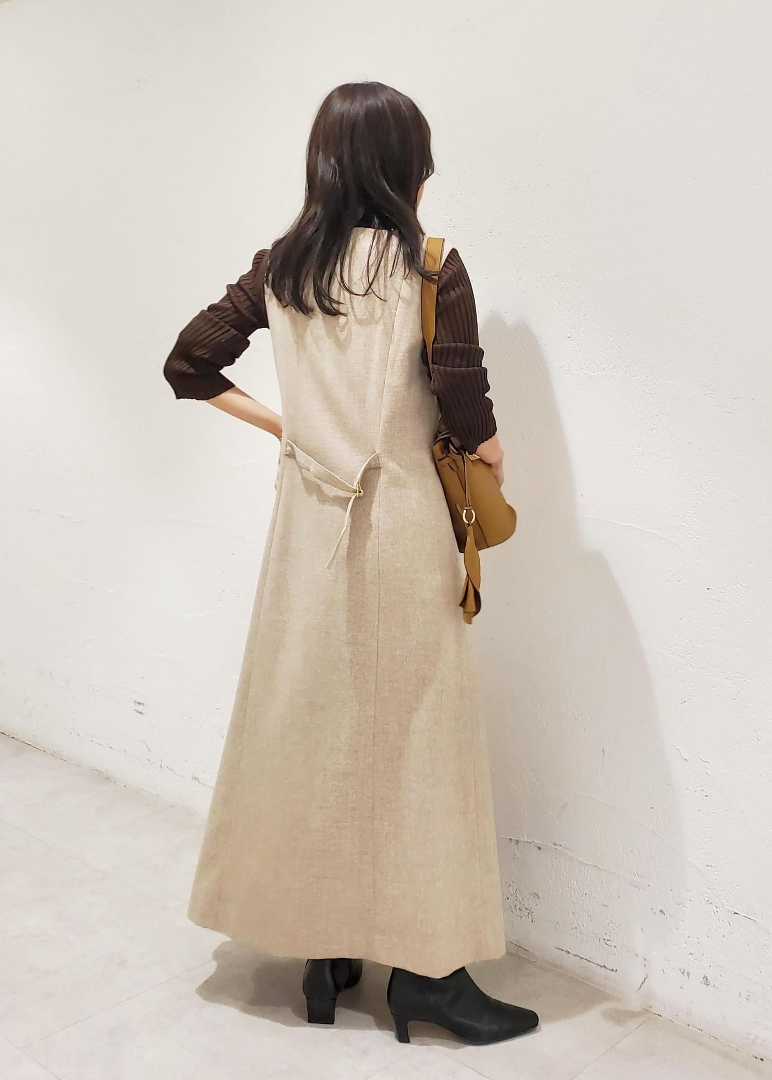 ROPÉスノーツイードジャンパースカート/イージーケアベージュ / F¥30,800レビュー着丈は足首が見えるくらいで少し長めの着丈。