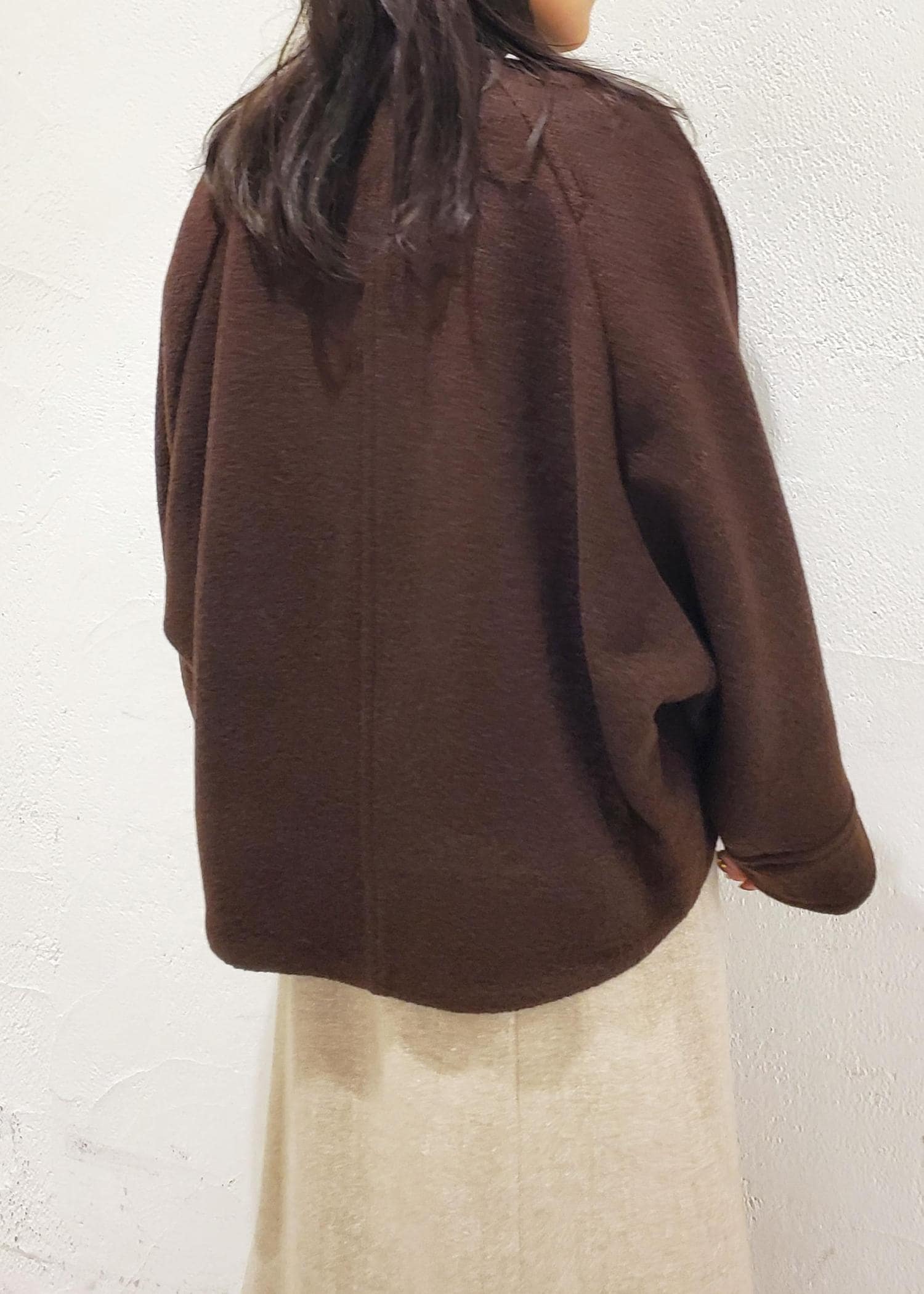 ハリ感があり、ゆったりとしているので肉厚なニットも楽々下に重ねていただけます。
