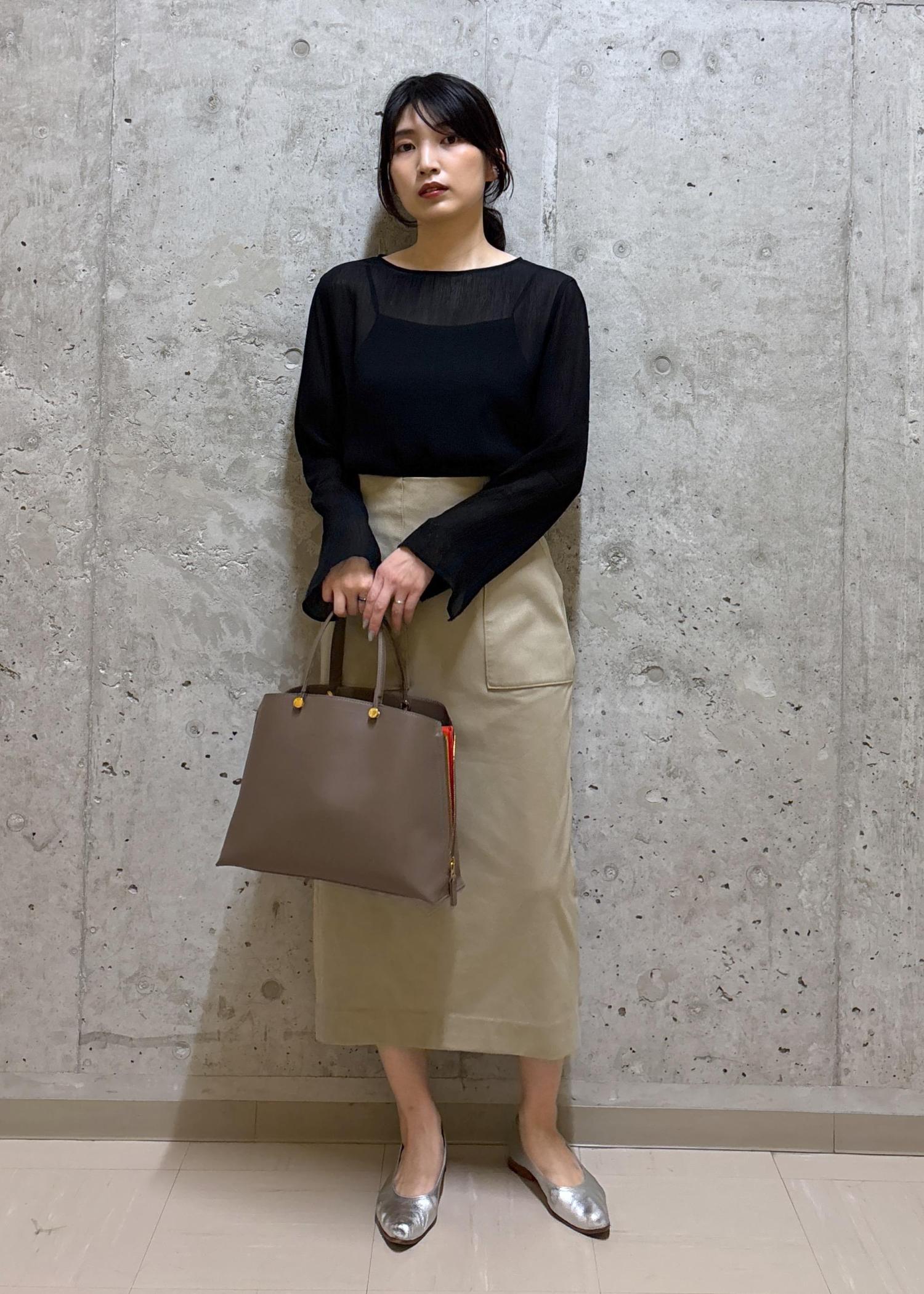 透け感のある黒トップスで、重たくならない秋のブラックコーデ♪