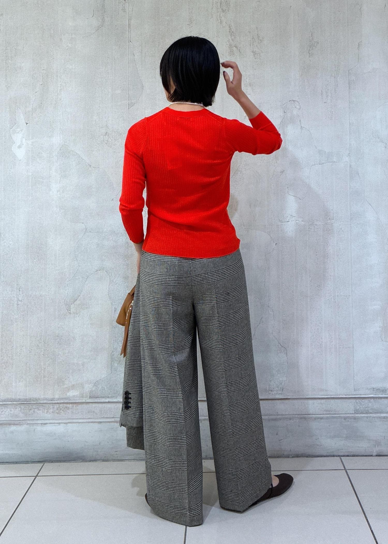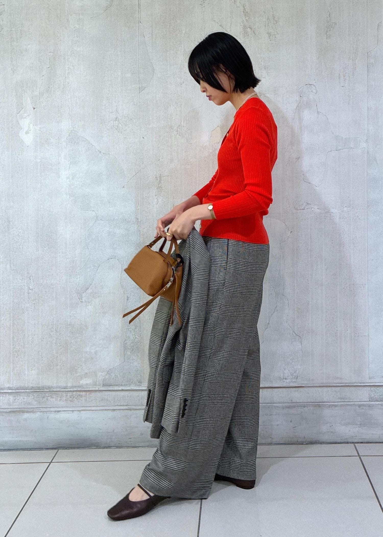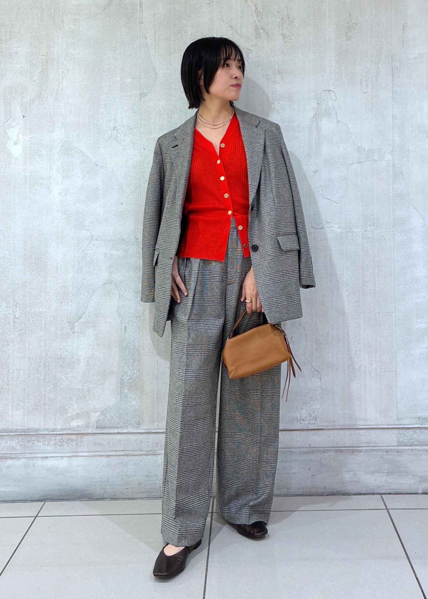 赤×チェックは秋の代名詞、やっぱり今年も赤を取り入れたくてジャケットセットアップスタイルにまとめてみました!