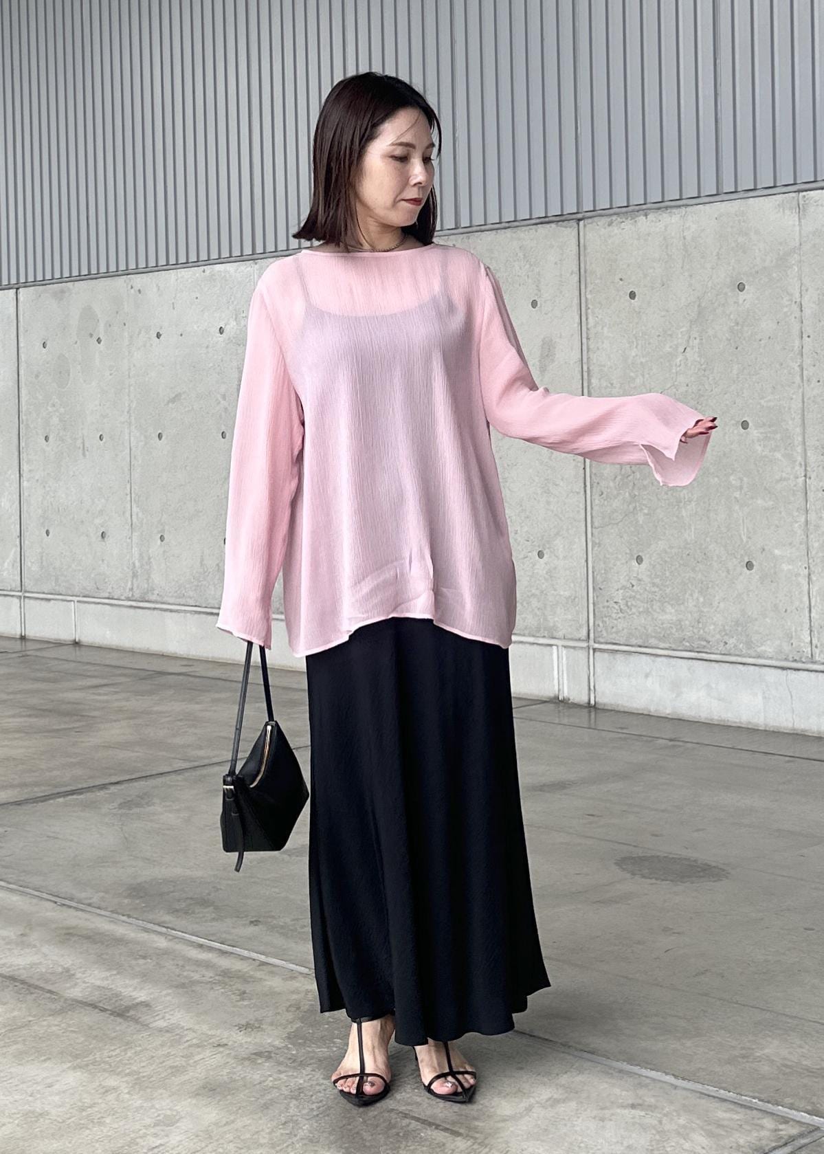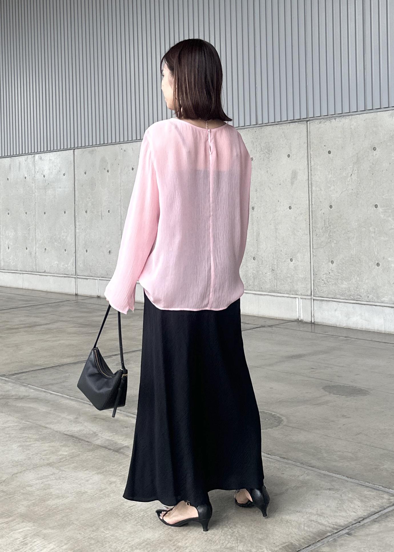 ROPÉ【洗える・前後2WAY】楊柳プルオーバー シアーブラウス【WEB・一部店舗限定】ピンク / F¥17,600レビュー身長156cm、Fサイズ着用。