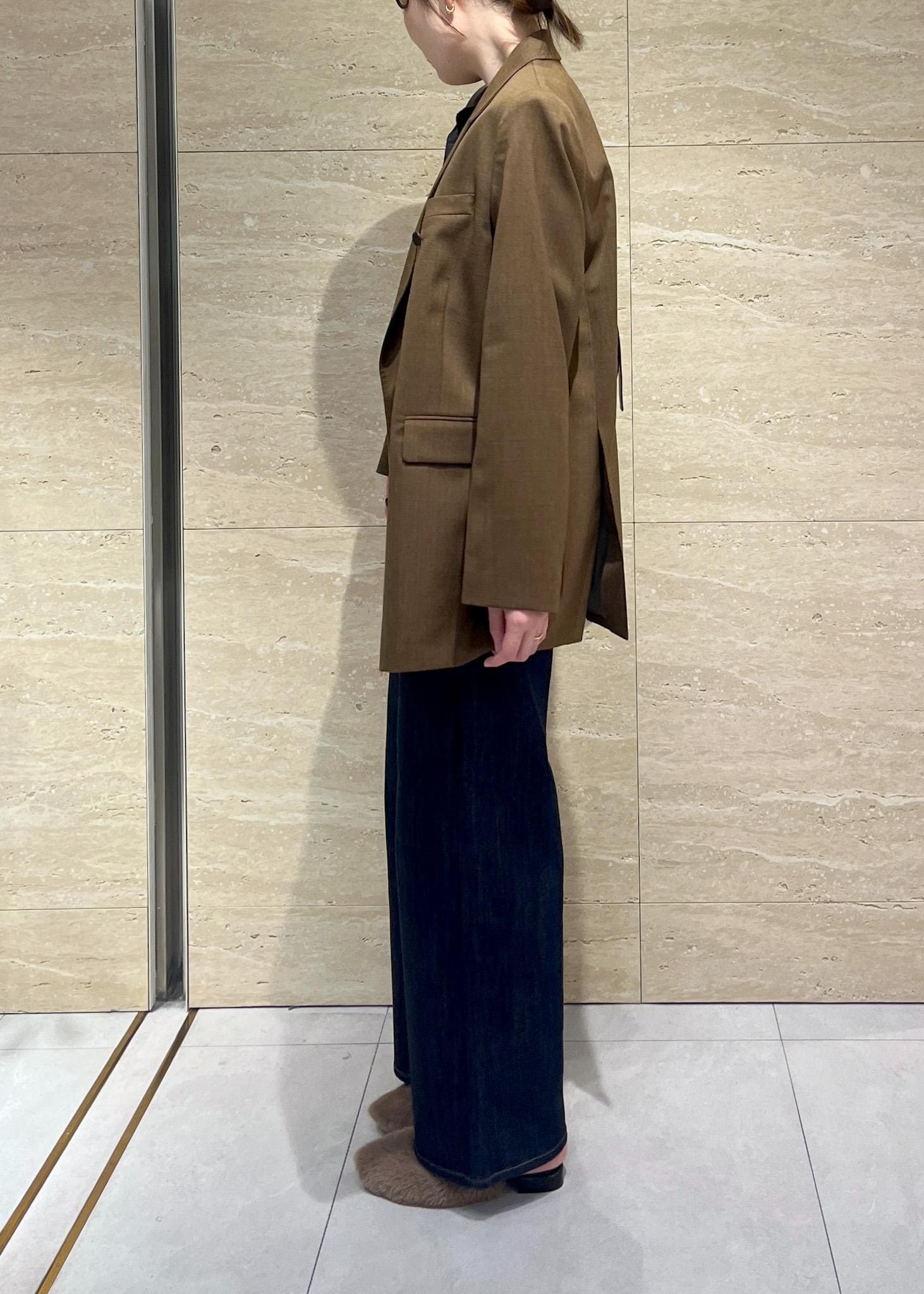 EMOELLE【EMOELLE】ボックスジャケットキャメル系 / 38¥39,600レビューメンズライクなシルエットで、ハリのある素材感です。167cmで36だと肩幅がジャストすぎたので38サイズで着ています。オーバーサイズですが、ダボっとした感じではないので着膨れしにくいかと思います。