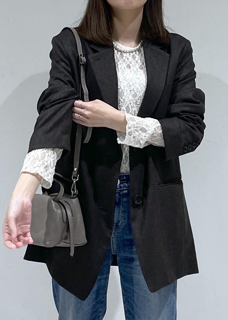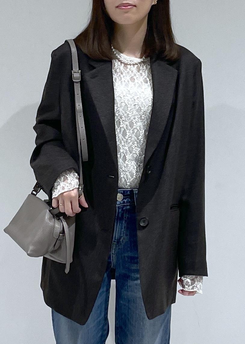身幅や肩周りがゆったりしているので少し厚みのあるニットの上からでも着用できます。 -