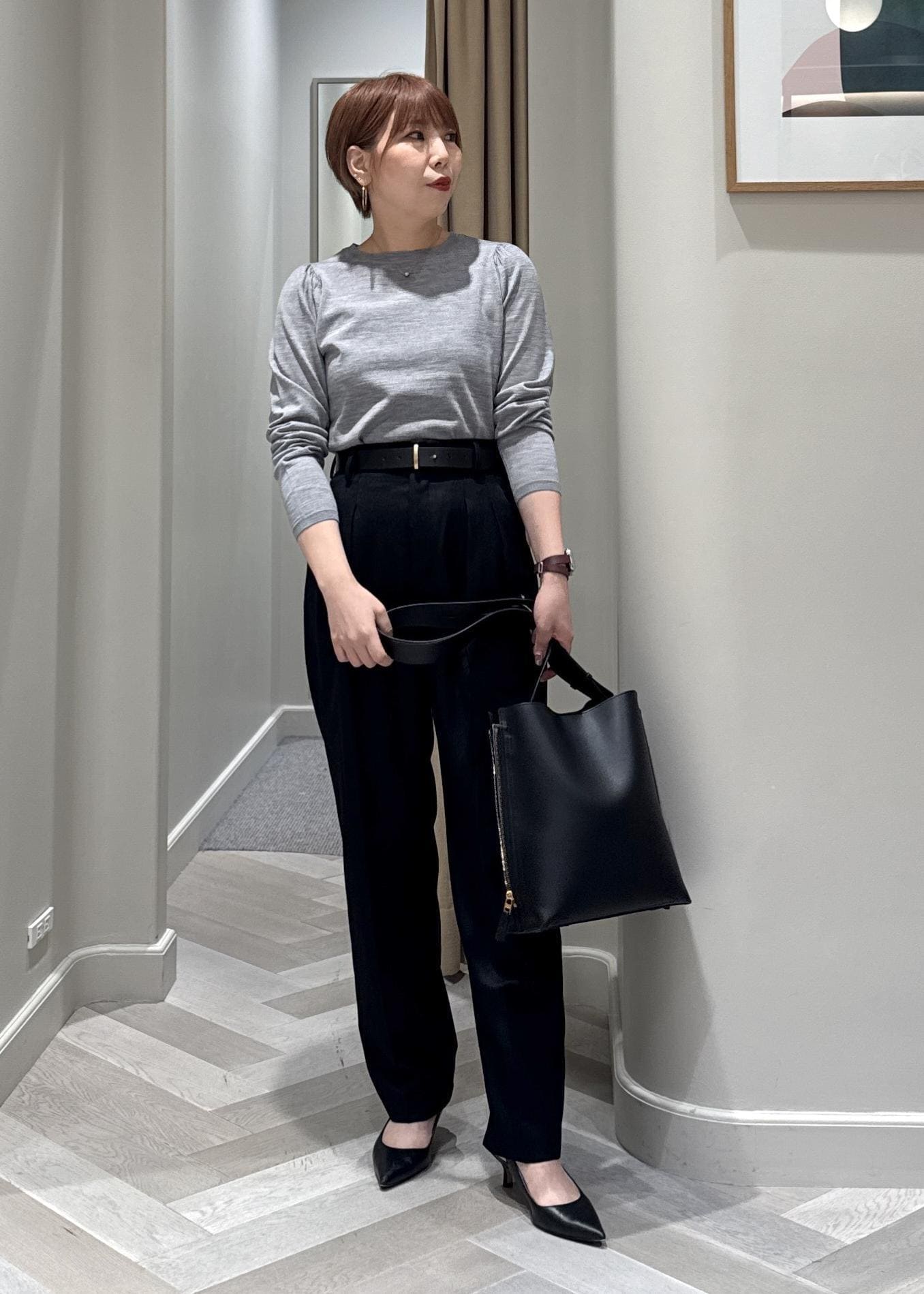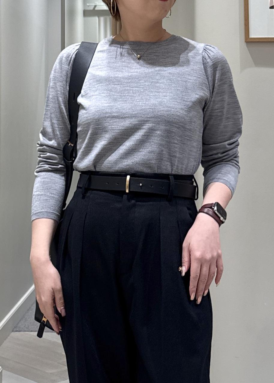 ROPÉ袖ギャザークルーネックニットプルオーバー/イージーケアグレー / F¥19,800レビューコンパクトなシルエットでスッキリ見え。