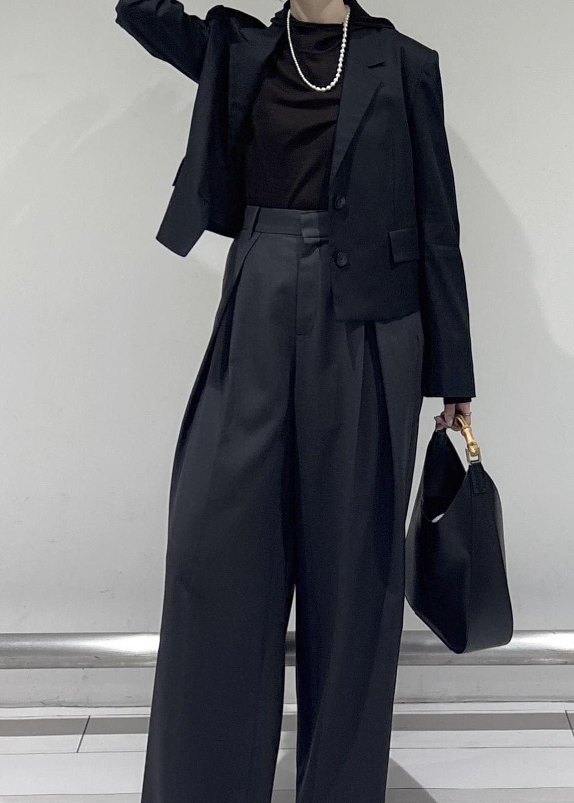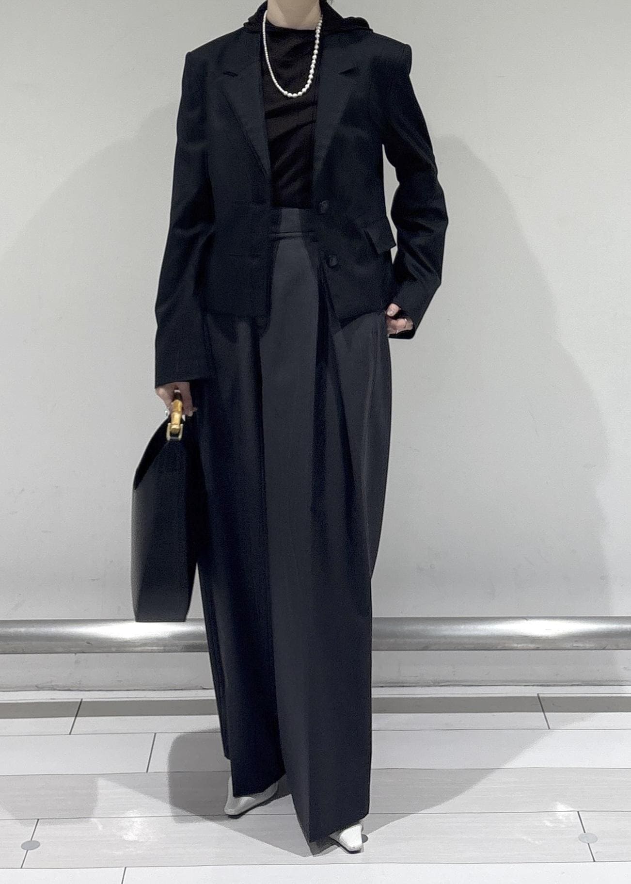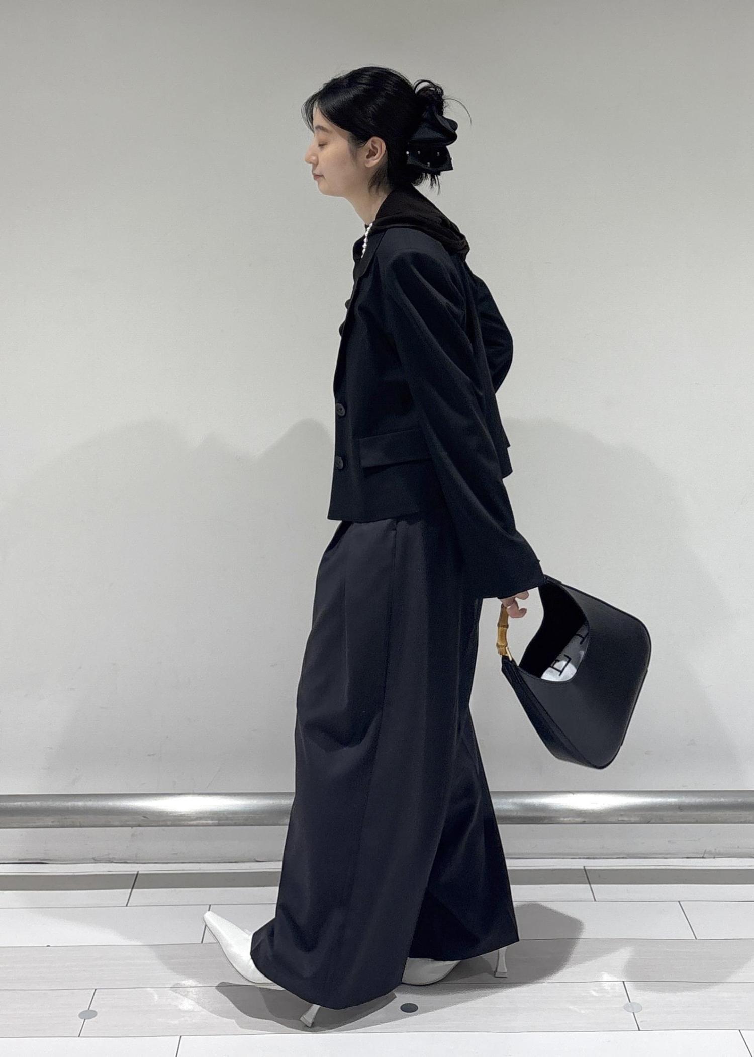 REALMのショートジャケットをパンツと合わせてモードな雰囲気に。