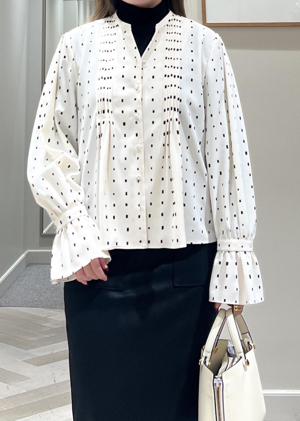 ROPÉスクエアドットプリントブラウス/イージーケアキナリ / F¥36,300レビューゆとりがあるデザインでインナー
