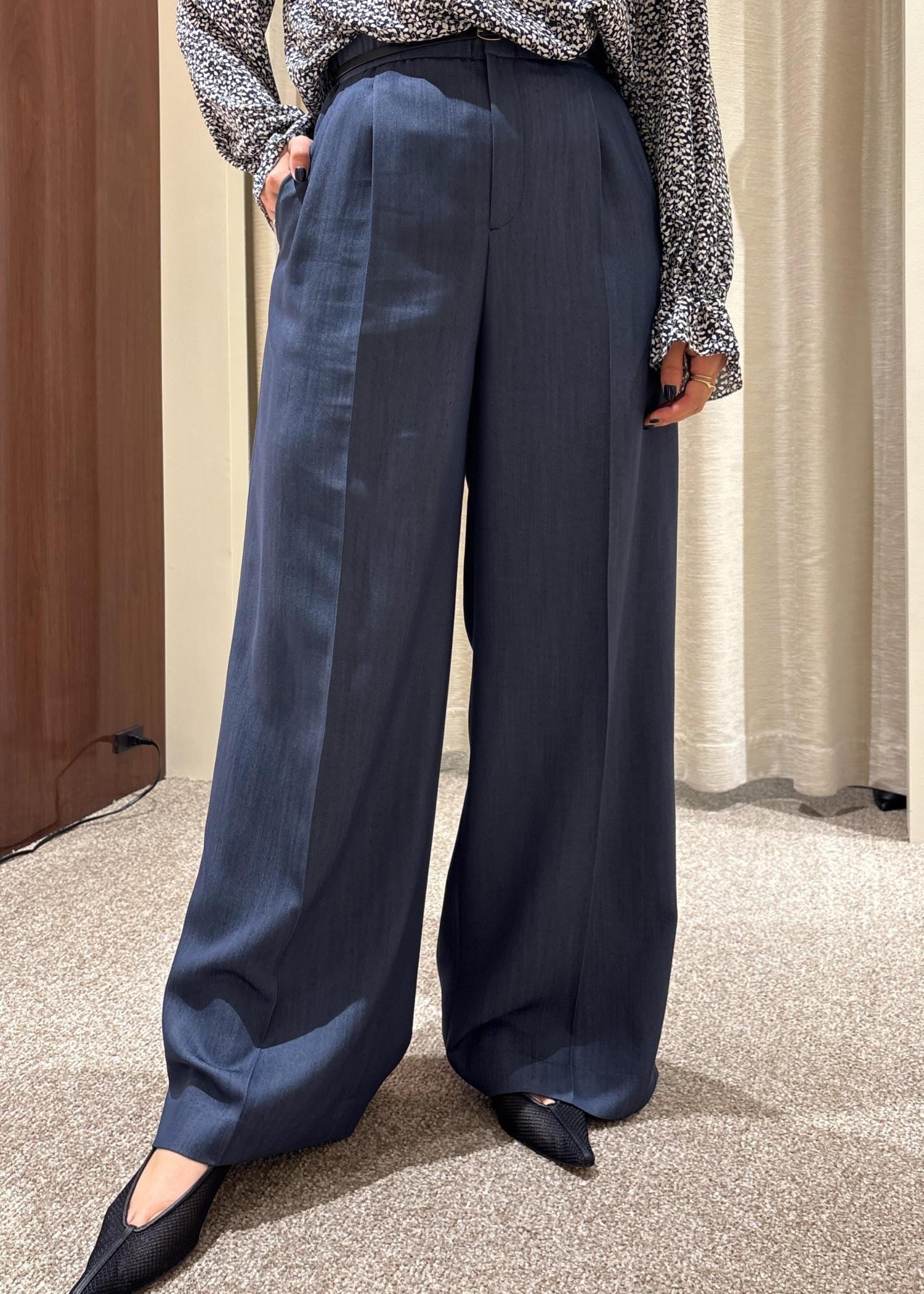 ROPÉ【洗える・カセット服・新色追加】バックサテンイージーワイドパンツ/お仕事・通勤・セットアップ対応ネイビー系 / 38¥27,500レビュー普段38サイズを着用しておりますが、こちらのパンツも38サイズでピッタリでした。