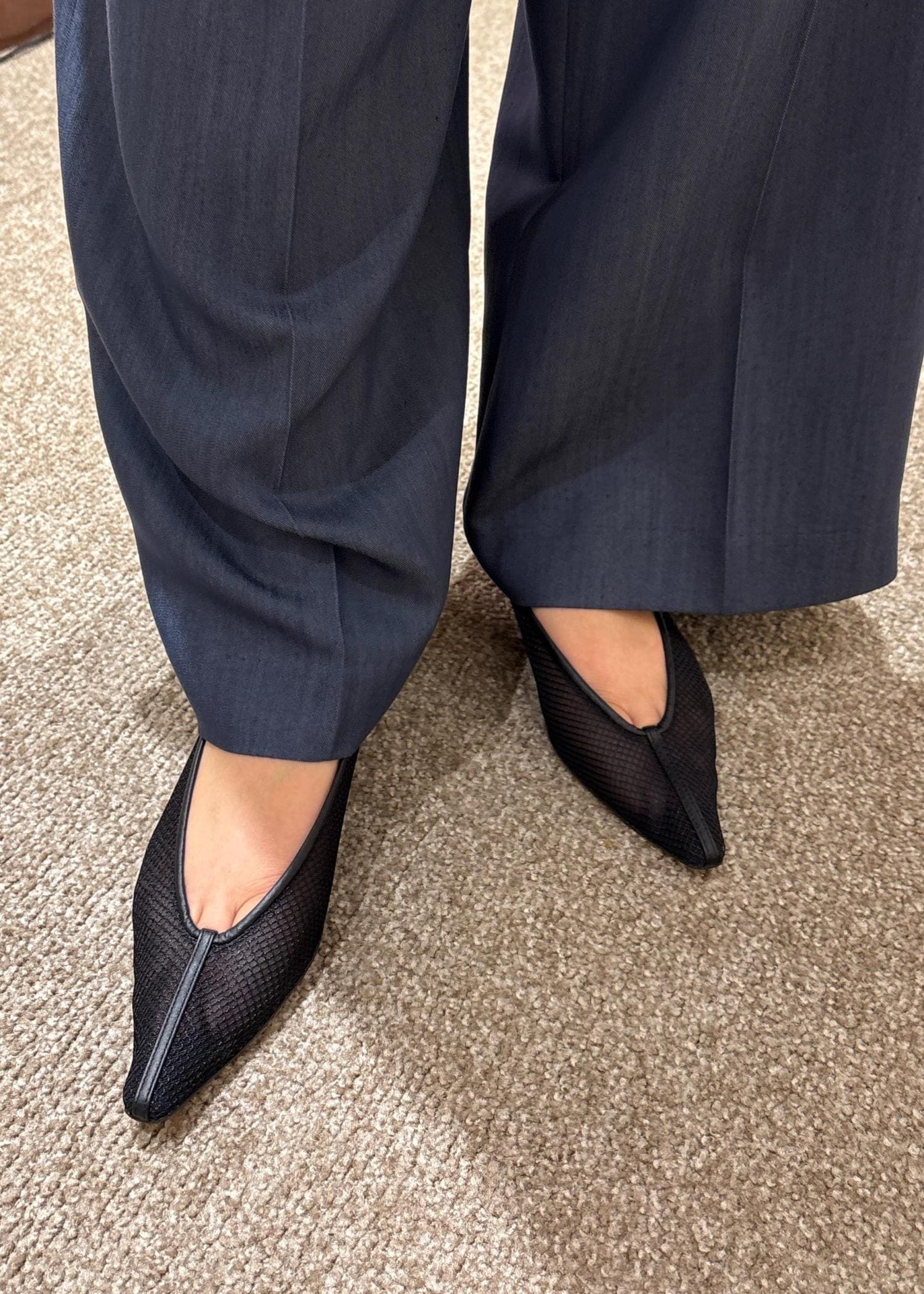 3.5センチの程よいヒールで、履いた時に足首がすっきりと見えるバランスです。 -
