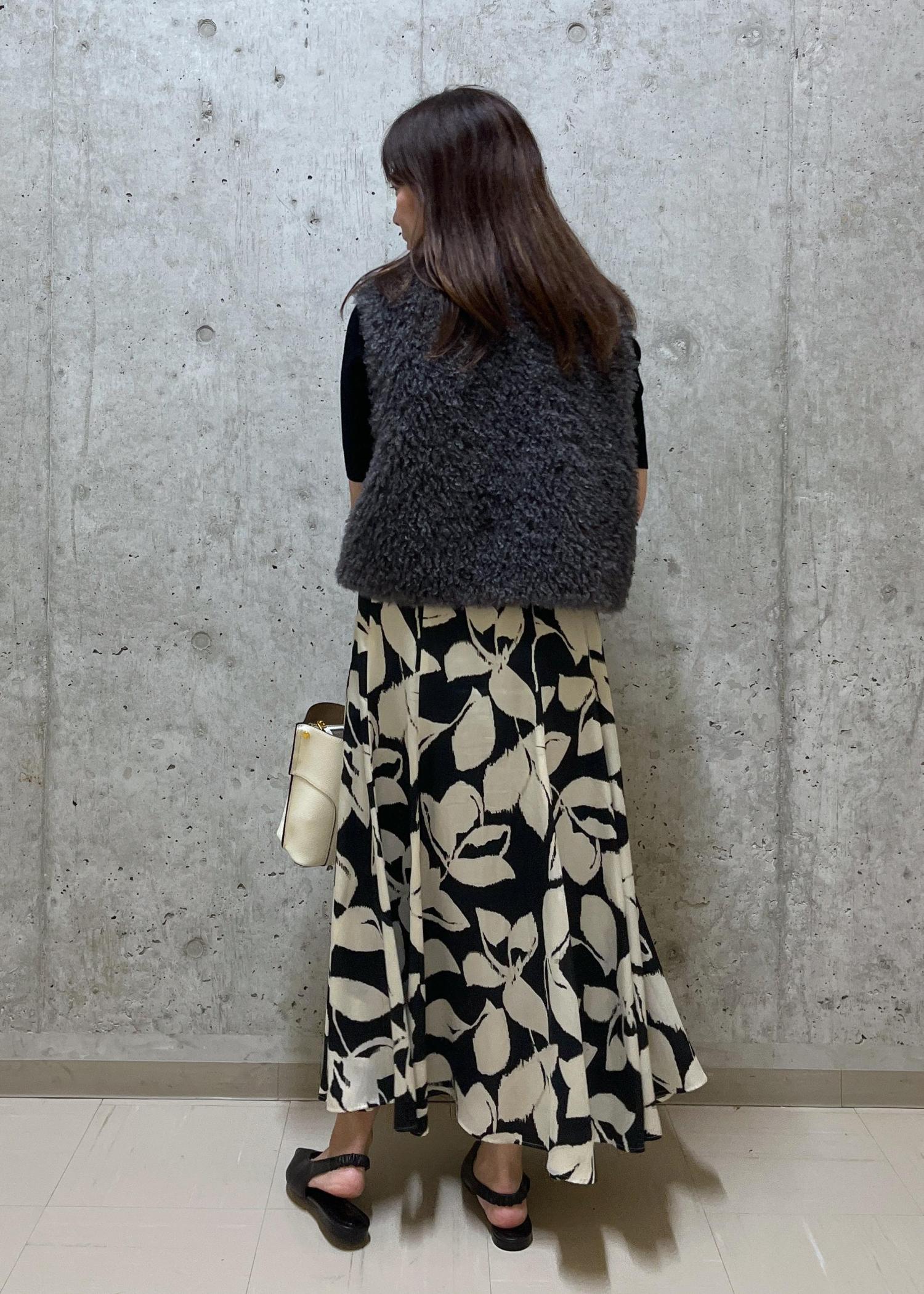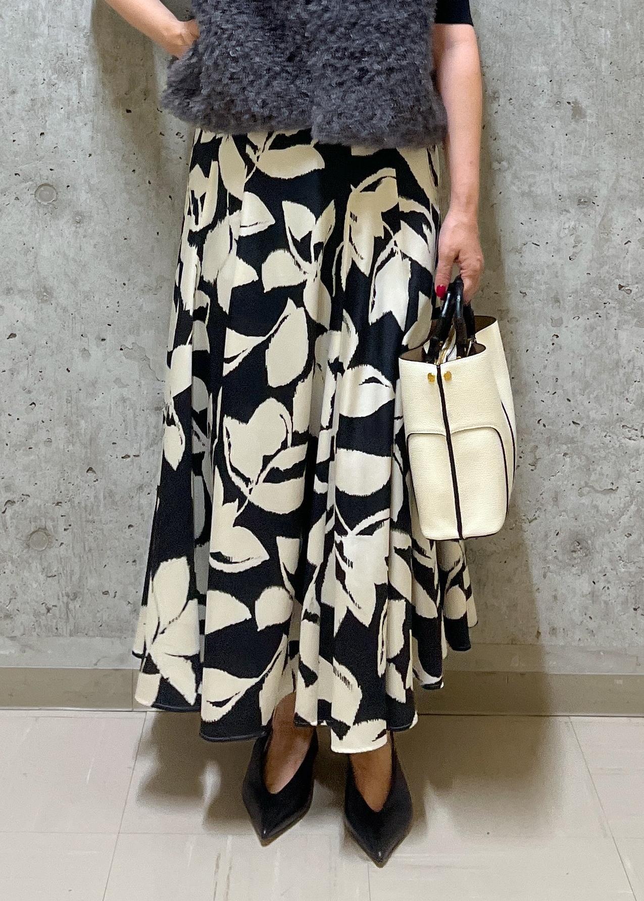 落ち感のあるフレアスカートで広がりすぎず、歩く度に動きがあるのでとてもキレイなシルエットです。 -