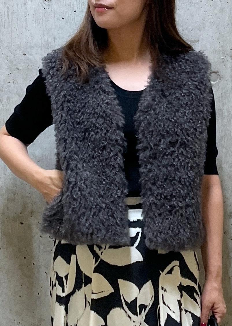 ふわふわとした肌触りのファーですが毛が抜けることも無く色んな素材との重ね着が楽しめます。 -