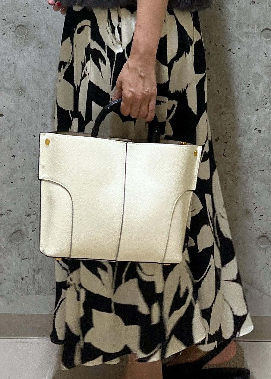 ROPÉ【E'POR】BAMBOO BAG Medium【超軽量】【25AW】オフホワイト / F¥18,700レビュー中は3分割になっていて、とても収納しやすいです。