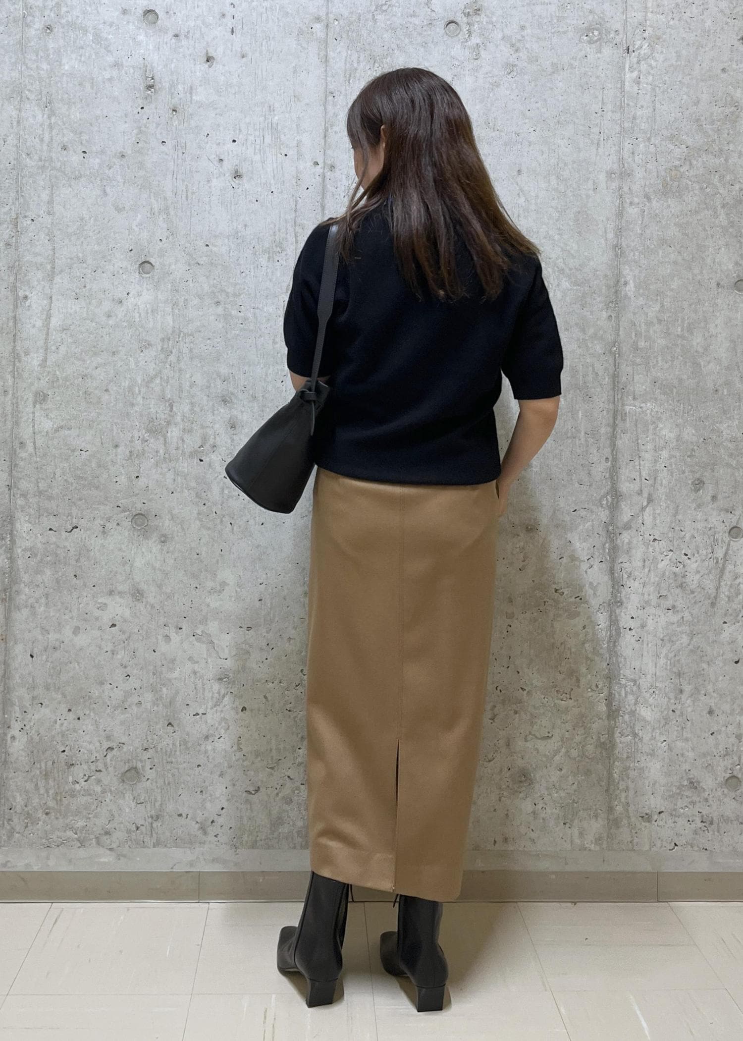 Iラインでハイウエストのシルエットは小柄な方でも脚長効果がありオススメのスカートです。 -
