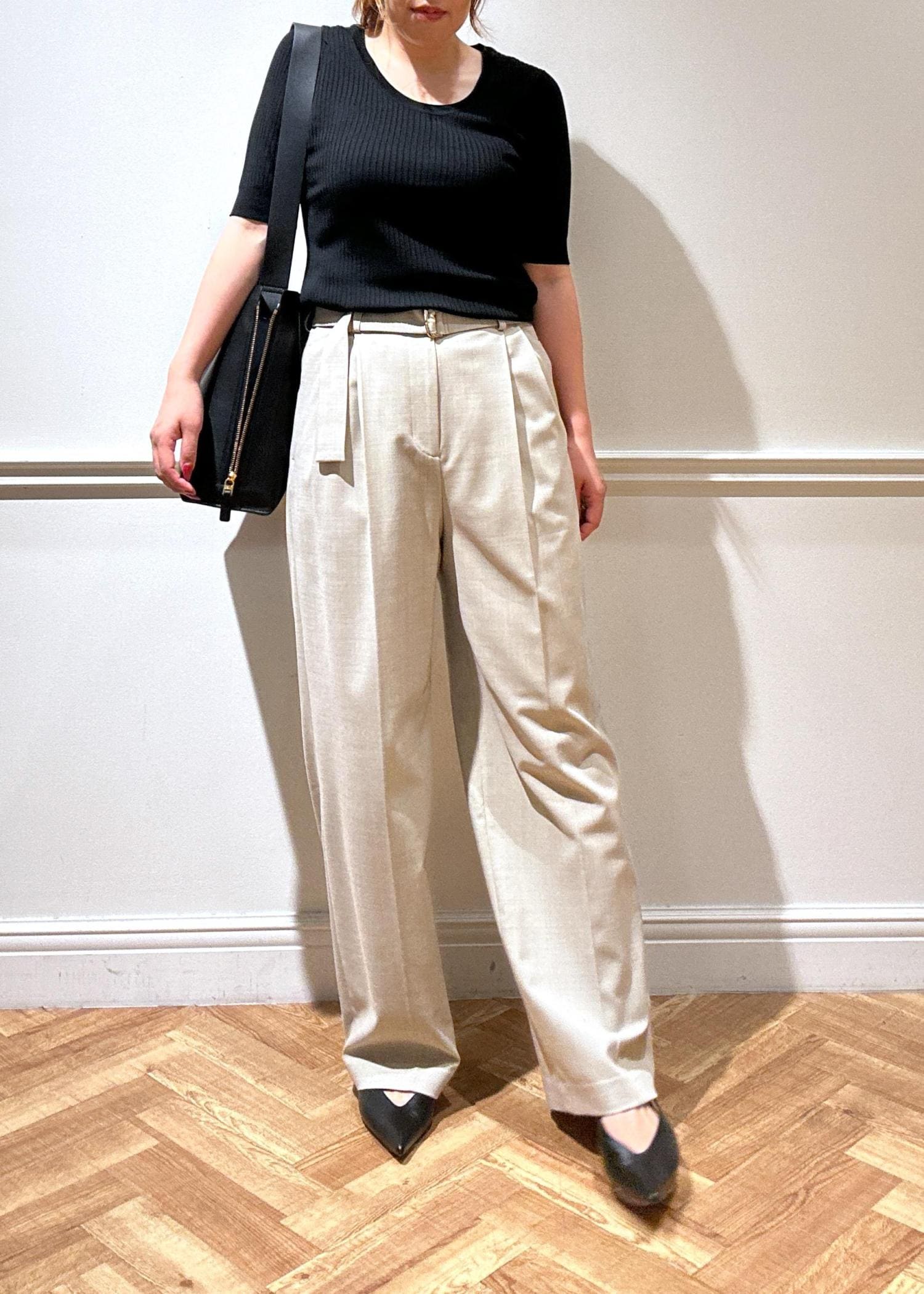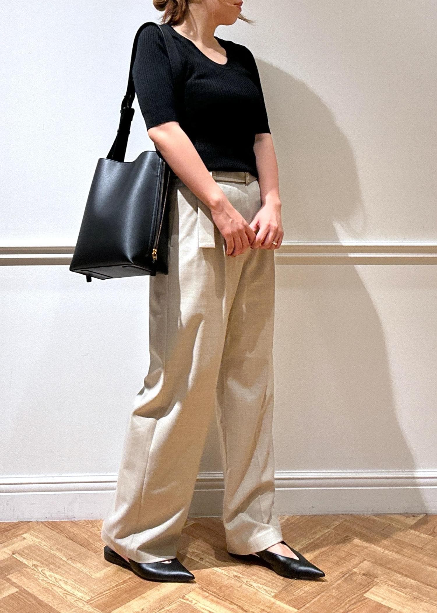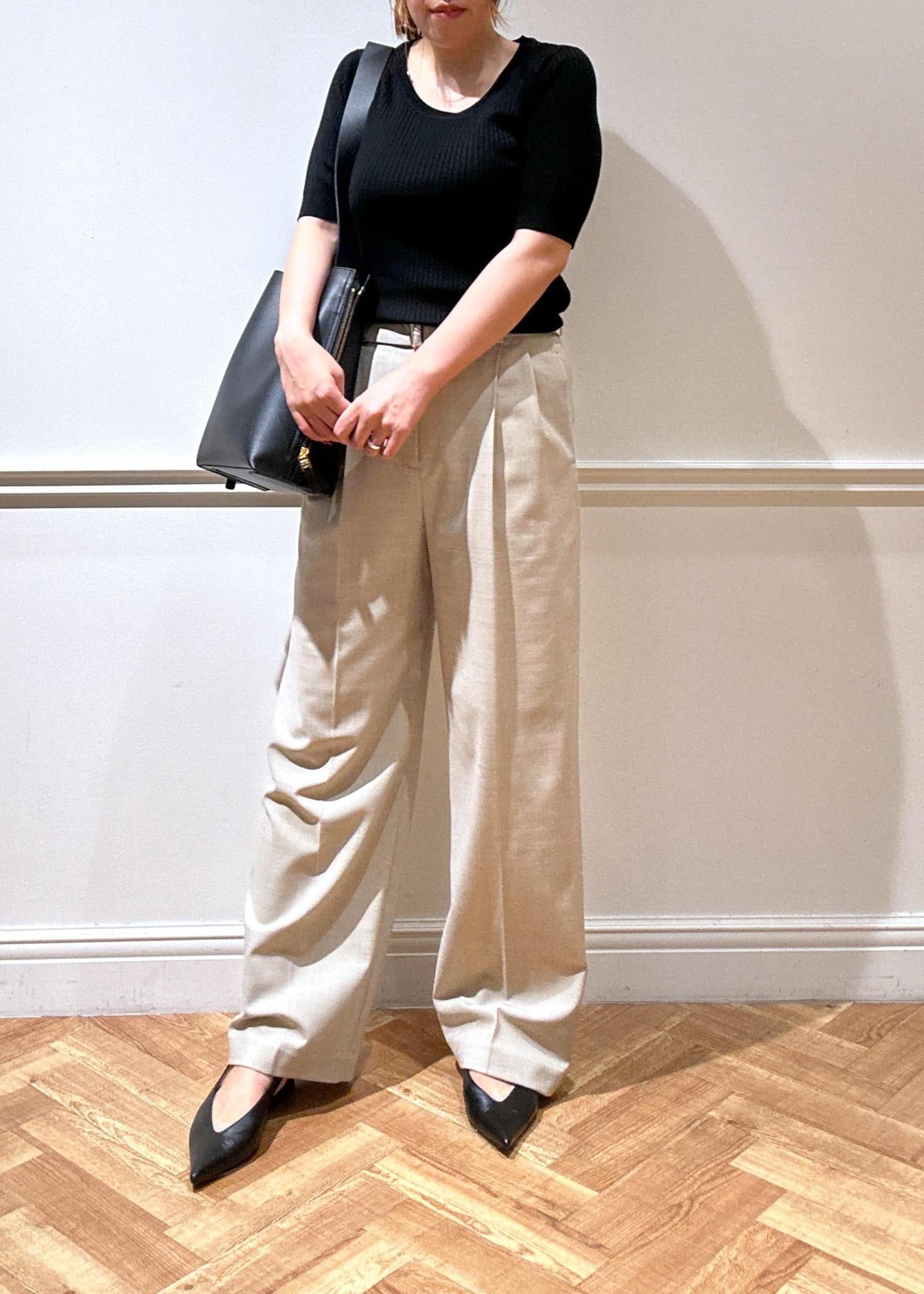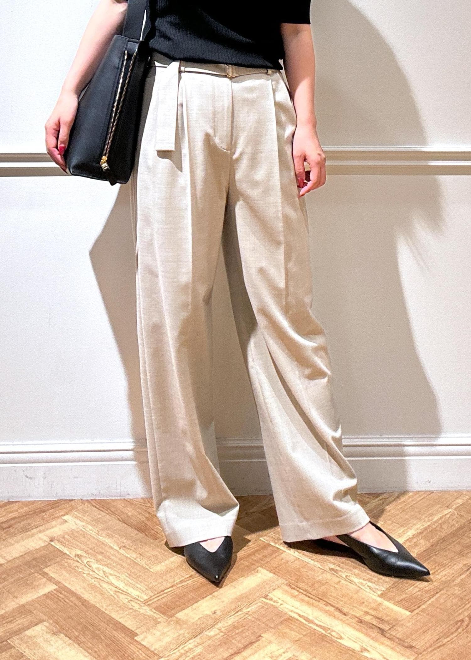 ROPÉ【洗える】ウール混ツイル ベルト付きツータックワイドパンツ/セットアップ対応【WEB・一部店舗限定】ブラック / 38¥13,860レビューウエストゴムで楽ちんですがきれいなシルエットです♪履き心地もよく、手洗い可能です。同素材のジレとセットで着るのもおすすめです。