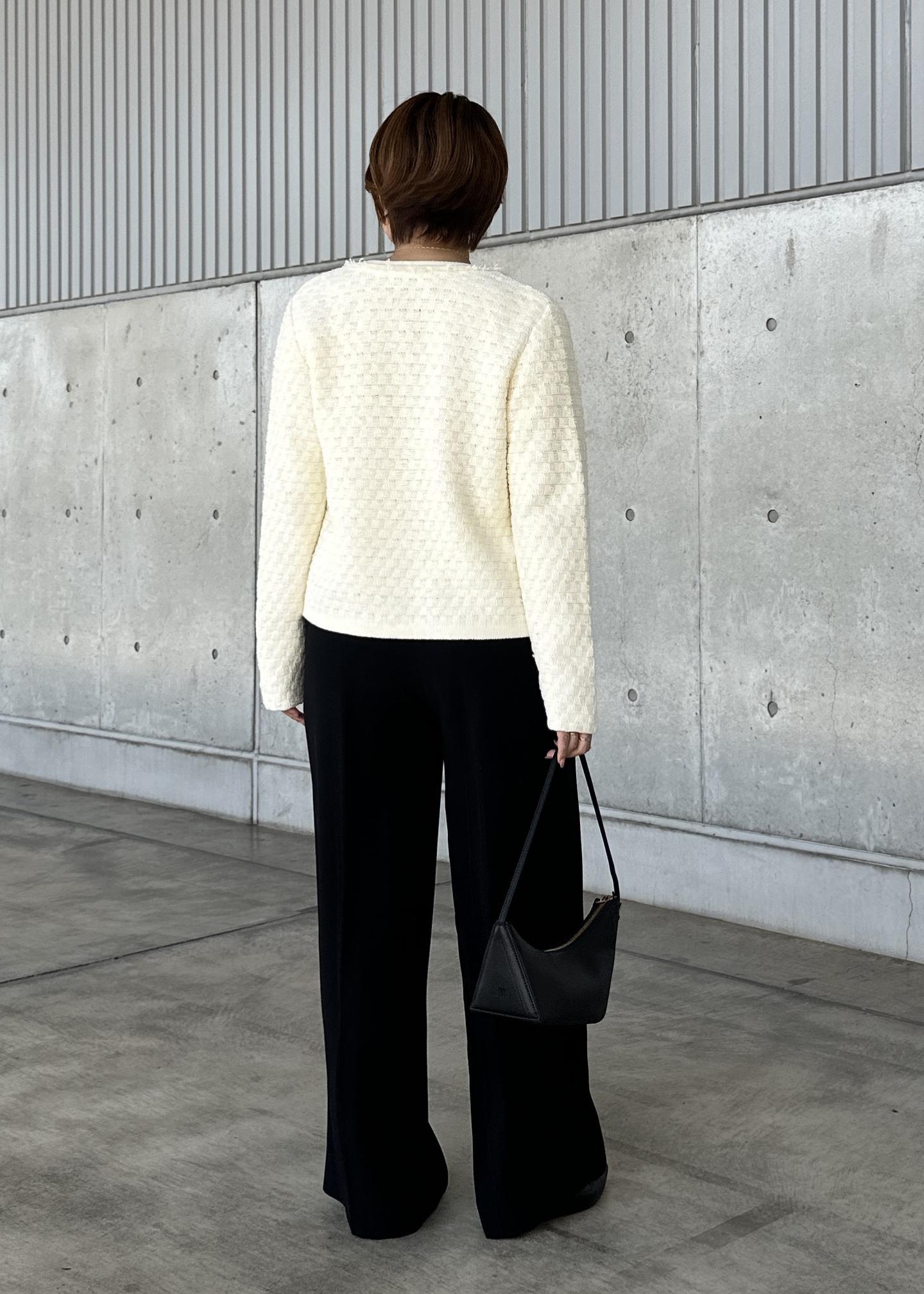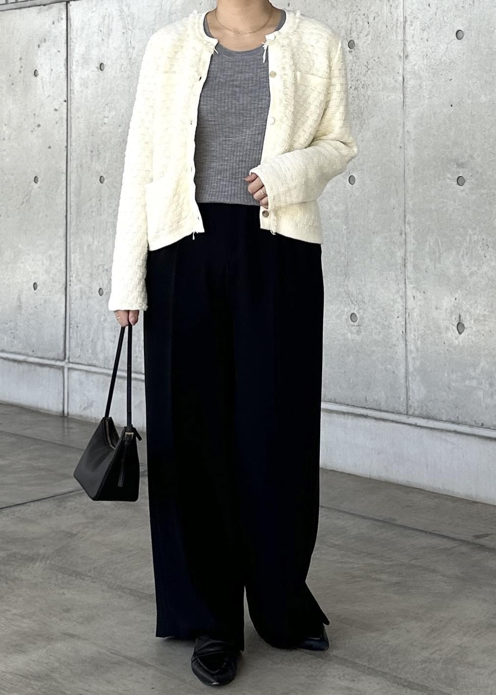 インナーにはもちろん、1枚でも着られる万能ニットです。 -