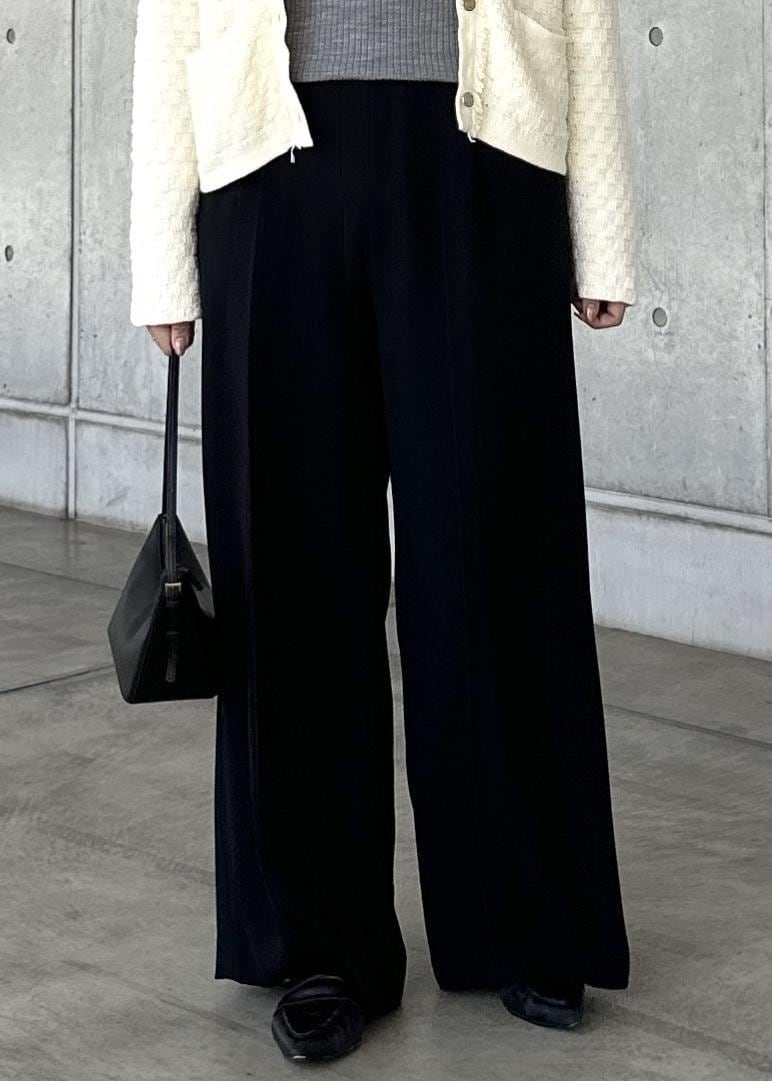 ROPÉ【洗える・カセット服・新色追加】バックサテンイージーワイドパンツ/お仕事・通勤・セットアップ対応ブラック / 38¥27,500レビュー162センチ 普段ボトム38、40サイズ