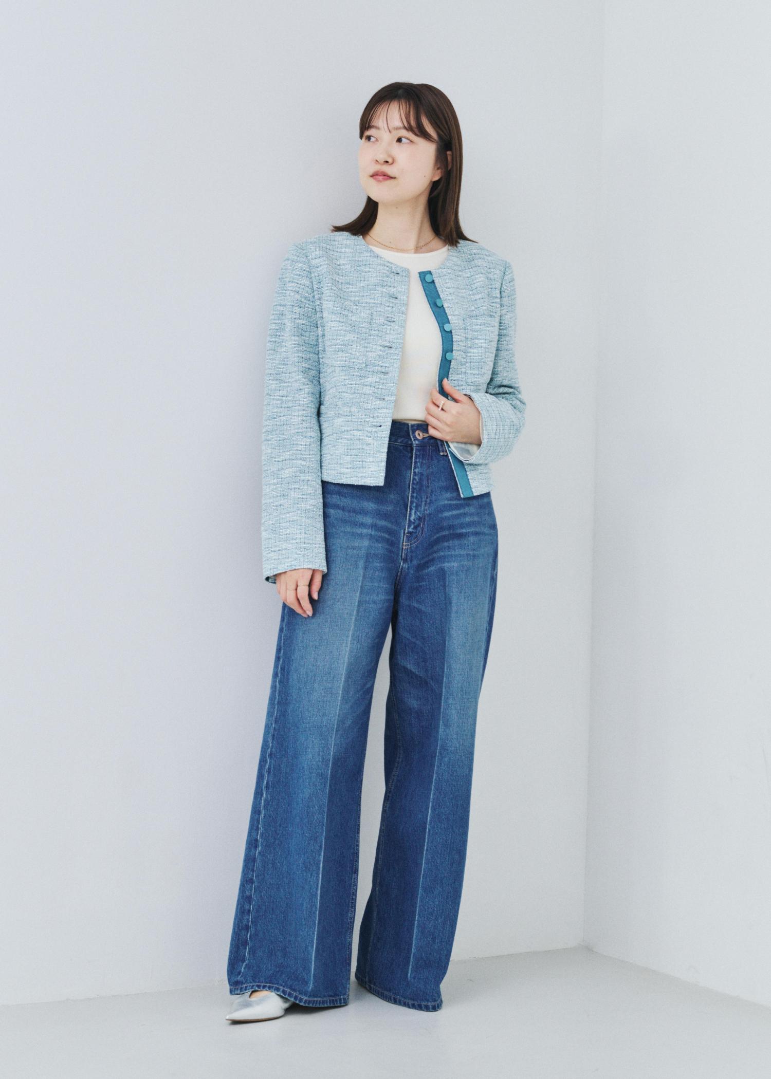 尾州別注のツイード素材で、華やかに決まるジャケット。