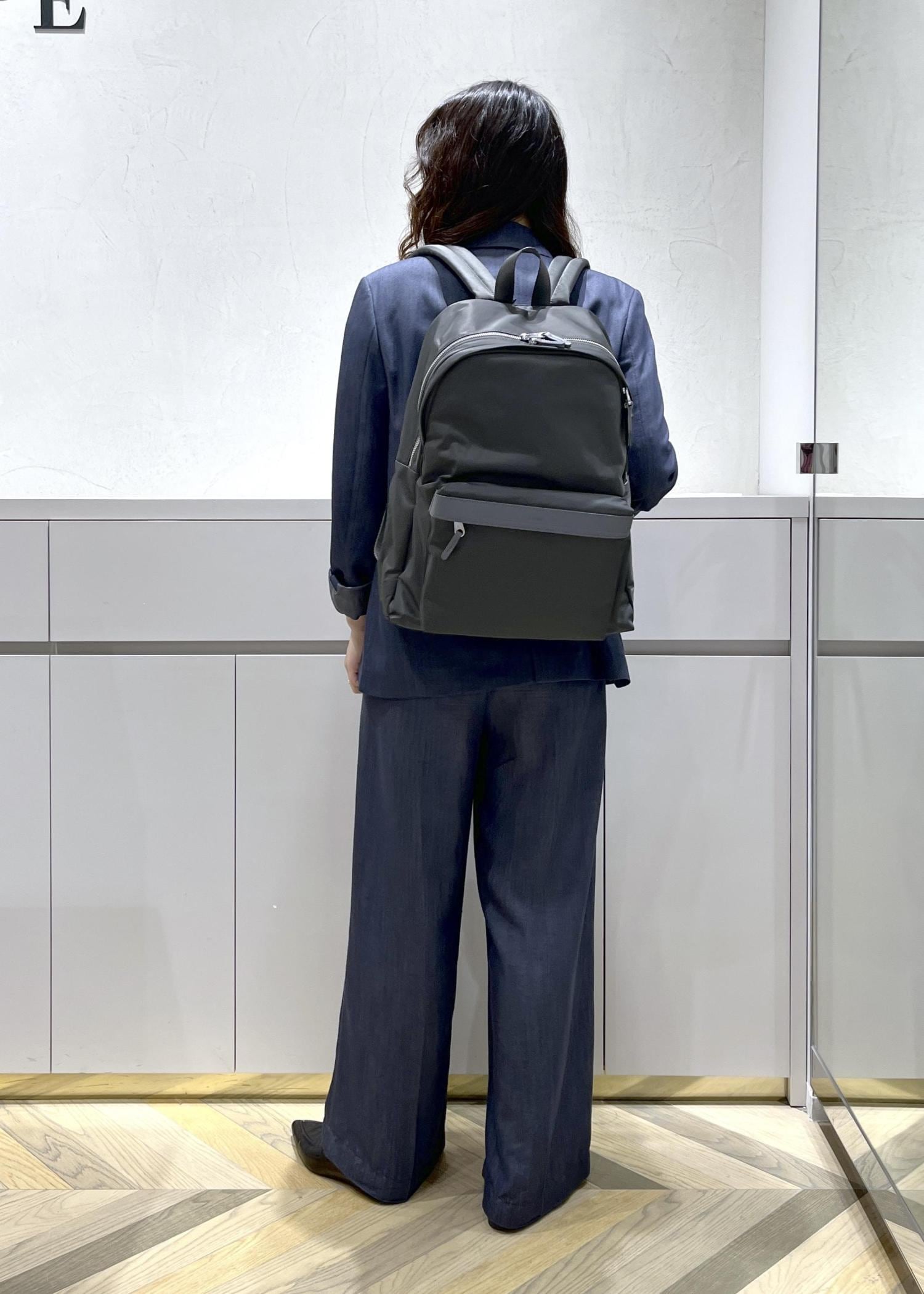 綺麗めなお洋服にも馴染む、カジュアルすぎないパックサック。