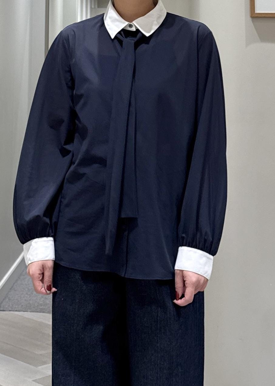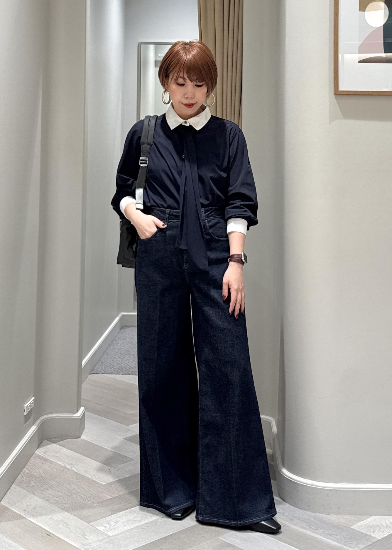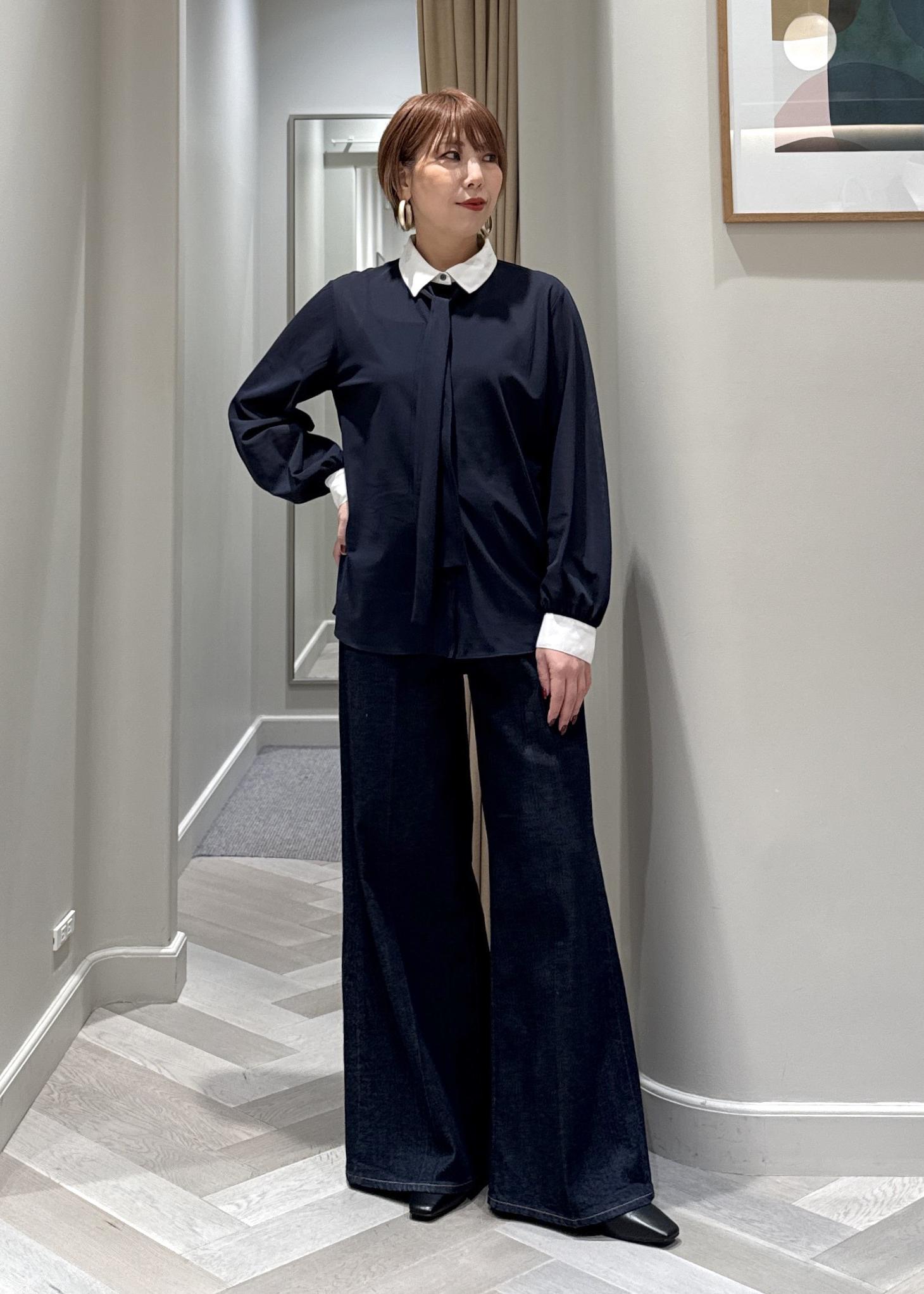 ROPÉシアートリコットボウタイシャツブラウス/イージーケアネイビー / F¥19,800レビューサイズ感は全体的にゆったりめ。