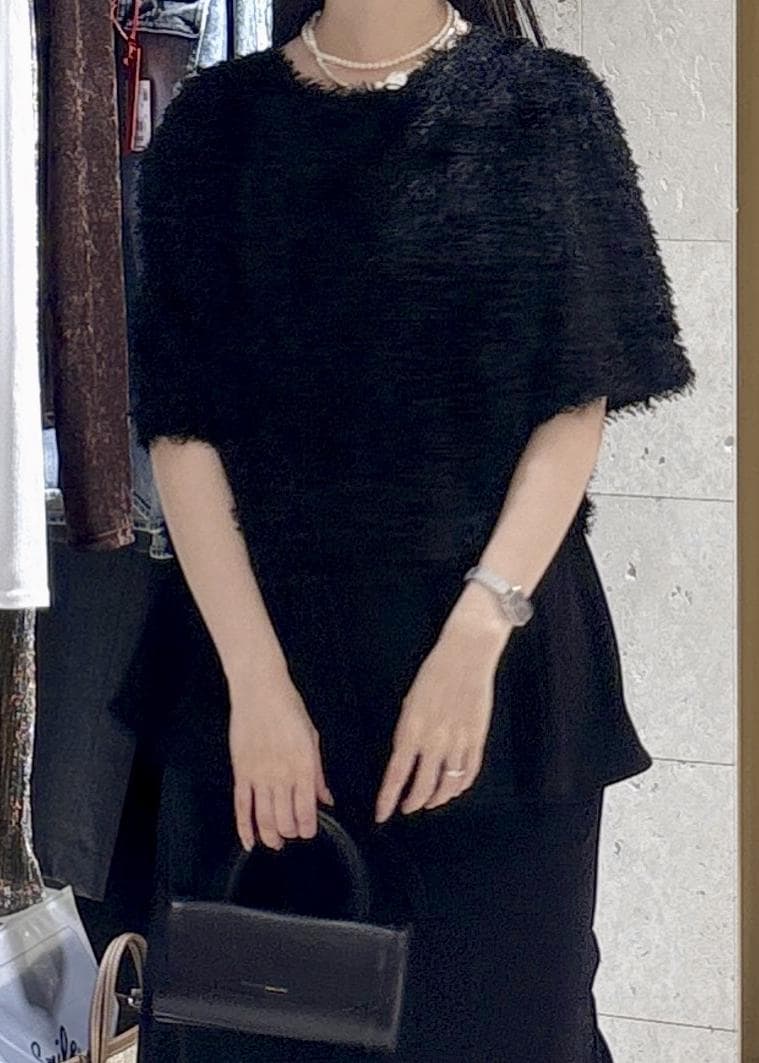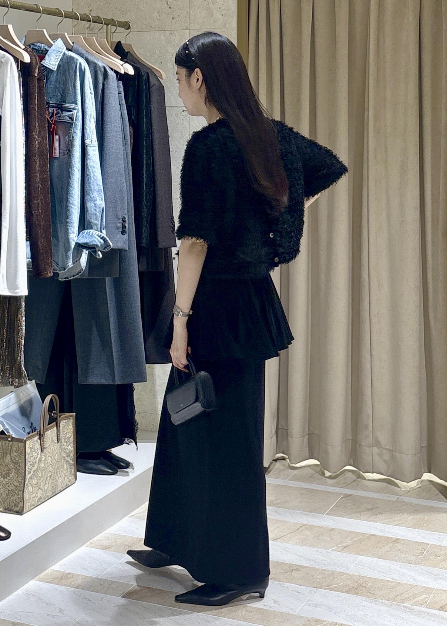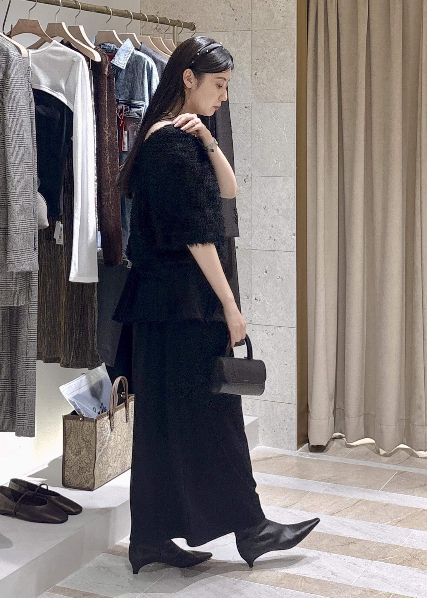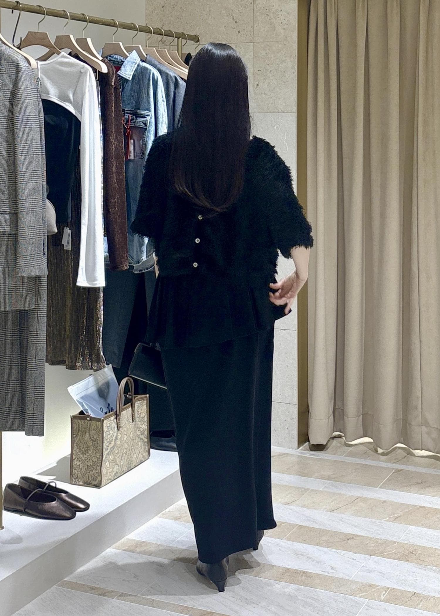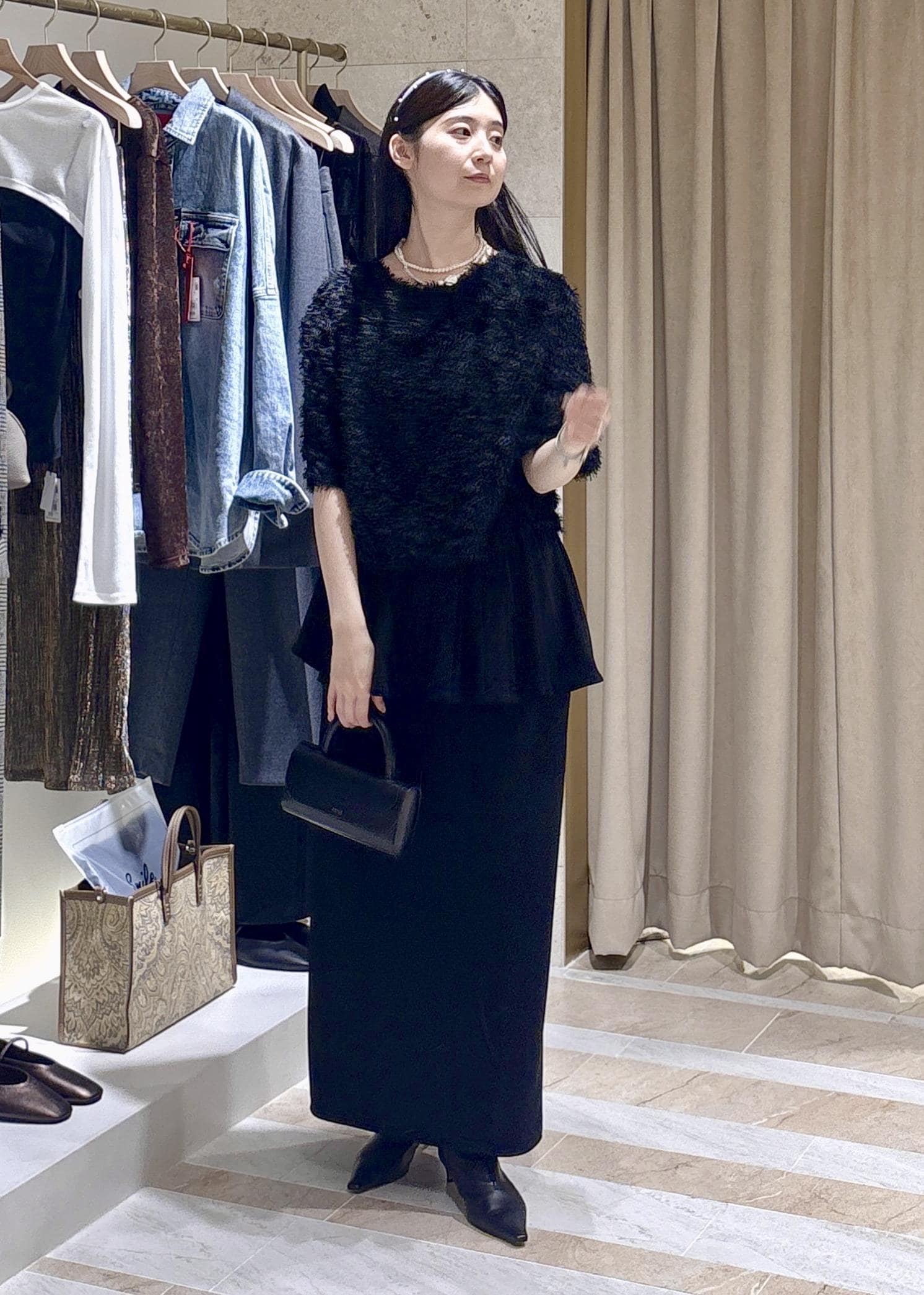ふんわりした質感のトップスにペプラムスカートを合わせて、ドレッシーに仕上げてみました。