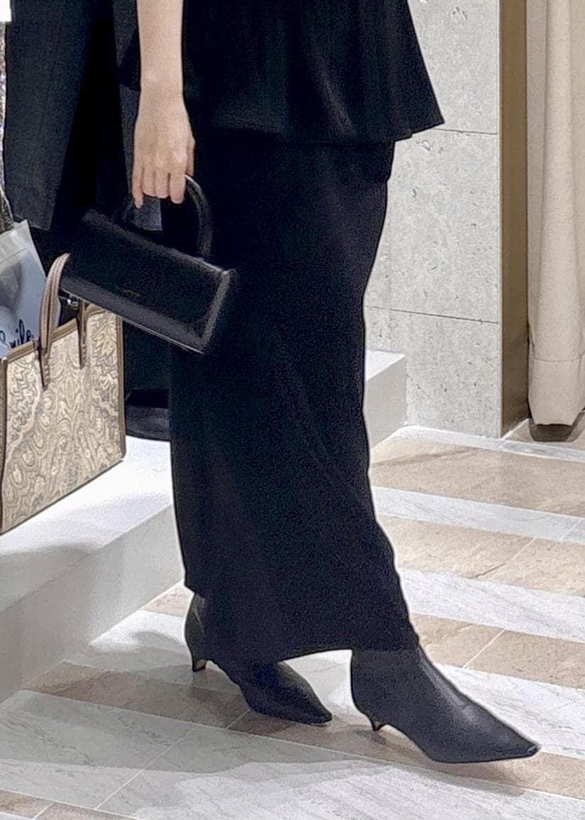 SALON adam et ropé【W S(ドゥーブル)】ポインテッドトゥ レザーヒールショートブーツブラック / 37¥39,600レビュー普段23.5で37をストッキングで着用し、程よいサイズ感。平べったく幅細めの足ですが、柔らかいレザーで履き心地抜群でした。