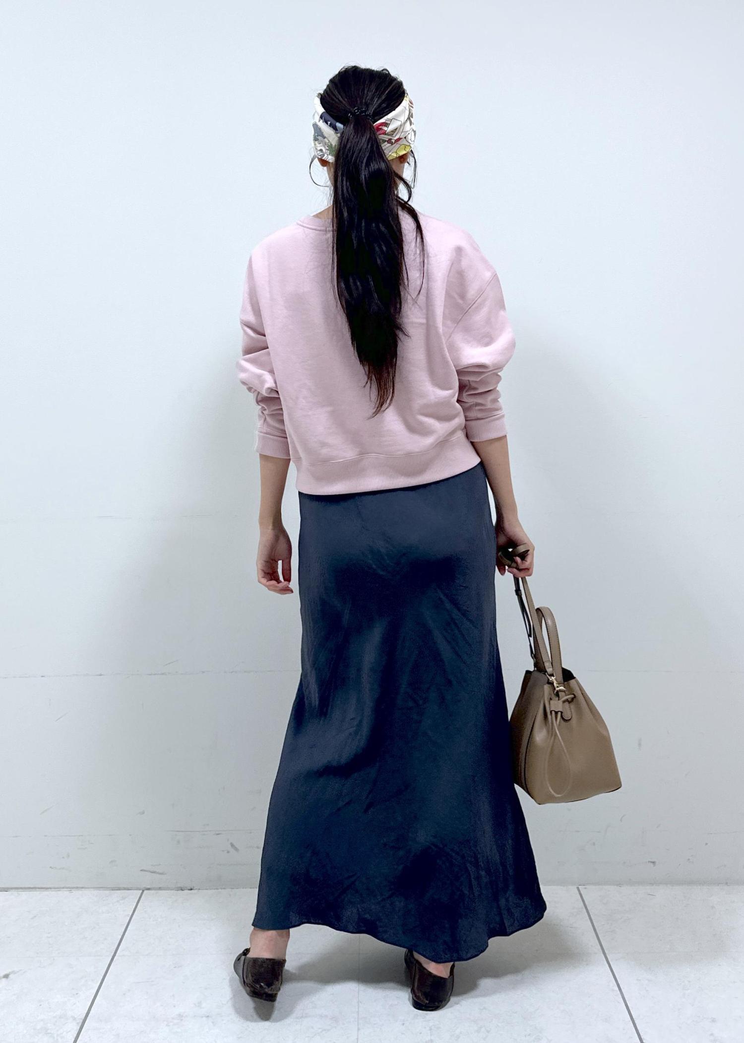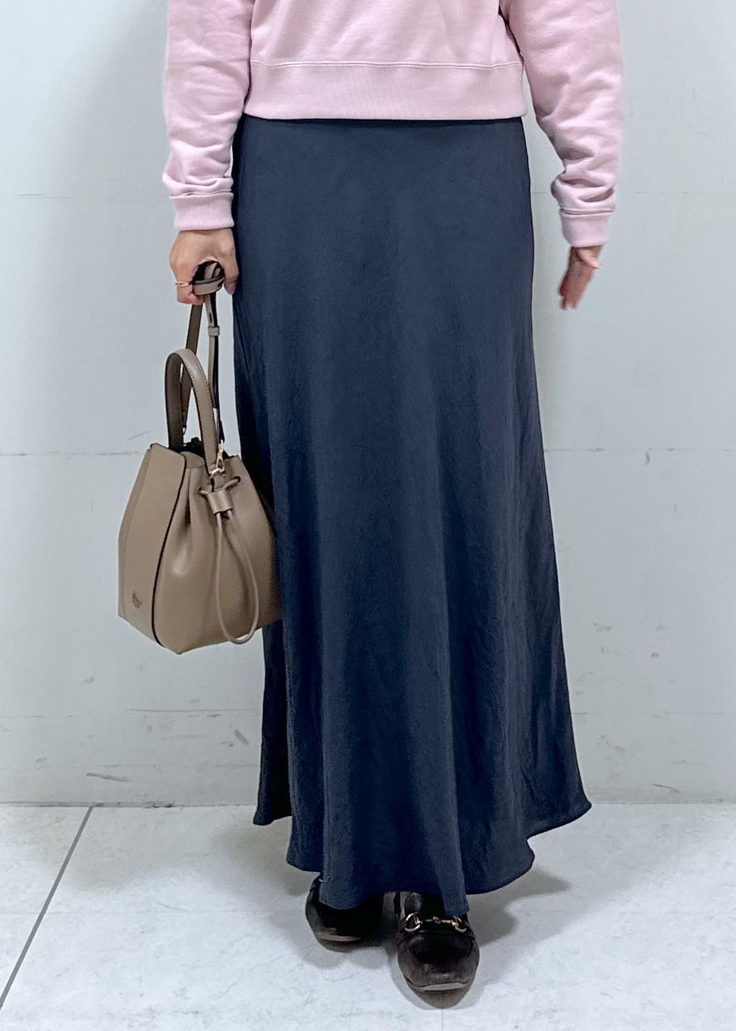 腰回りがすっきりとしたマーメイドシルエットで、ウエストが後ろゴムなので楽に着ていただけます◎ -