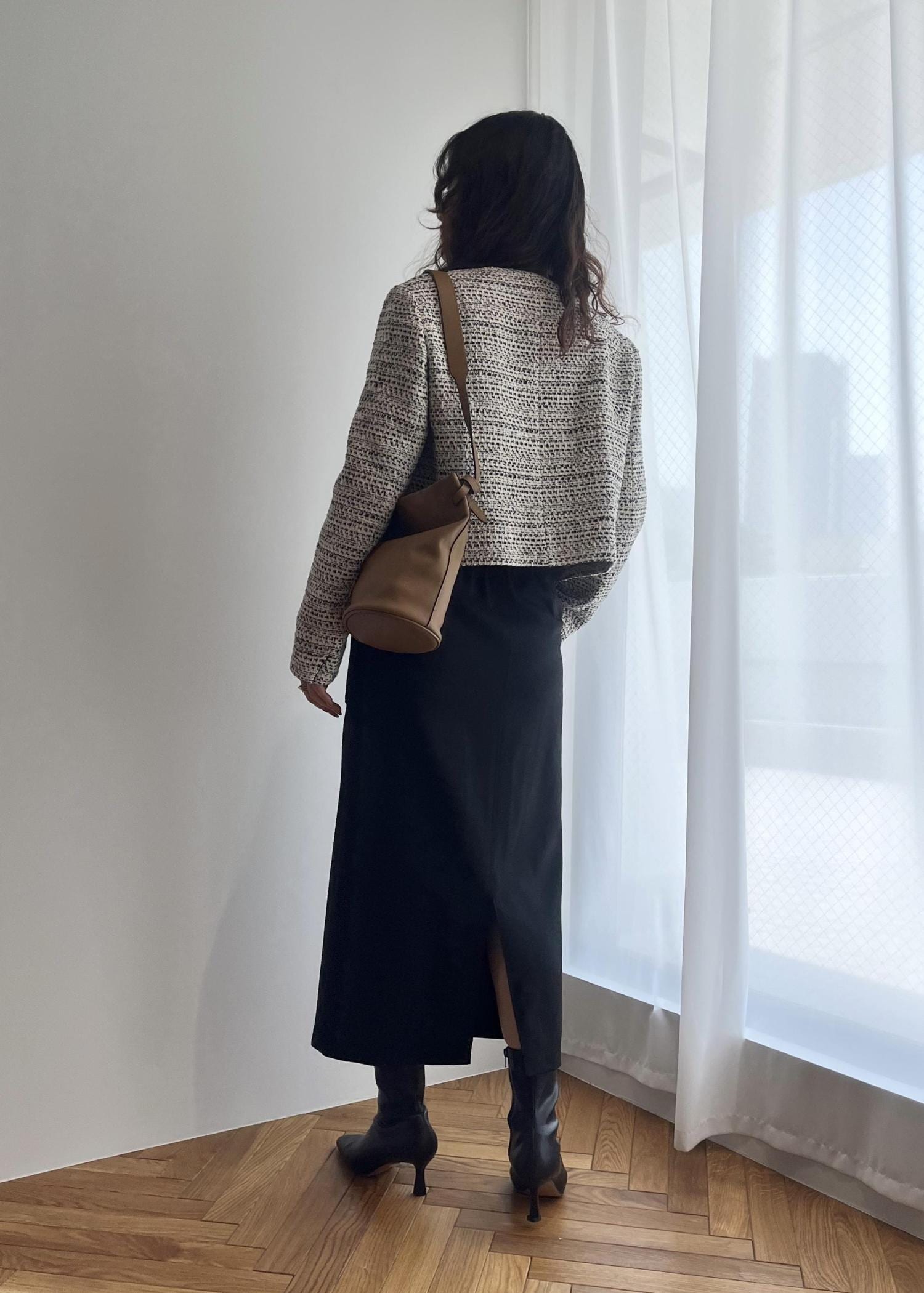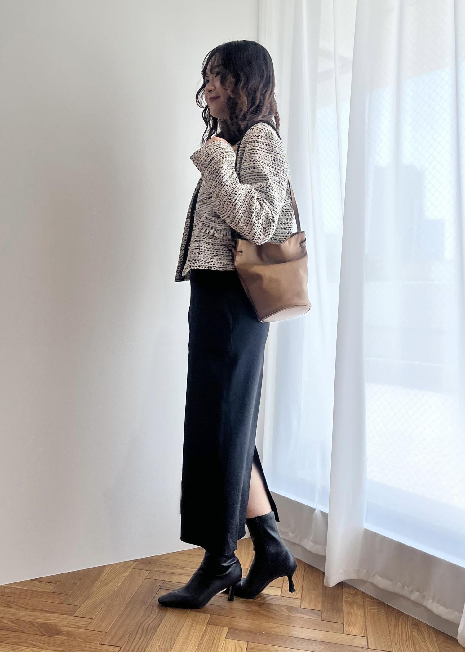 ウエストがゴムで見た目以上に楽な履き心地で、スリットも入っているので足捌きも良いです◎