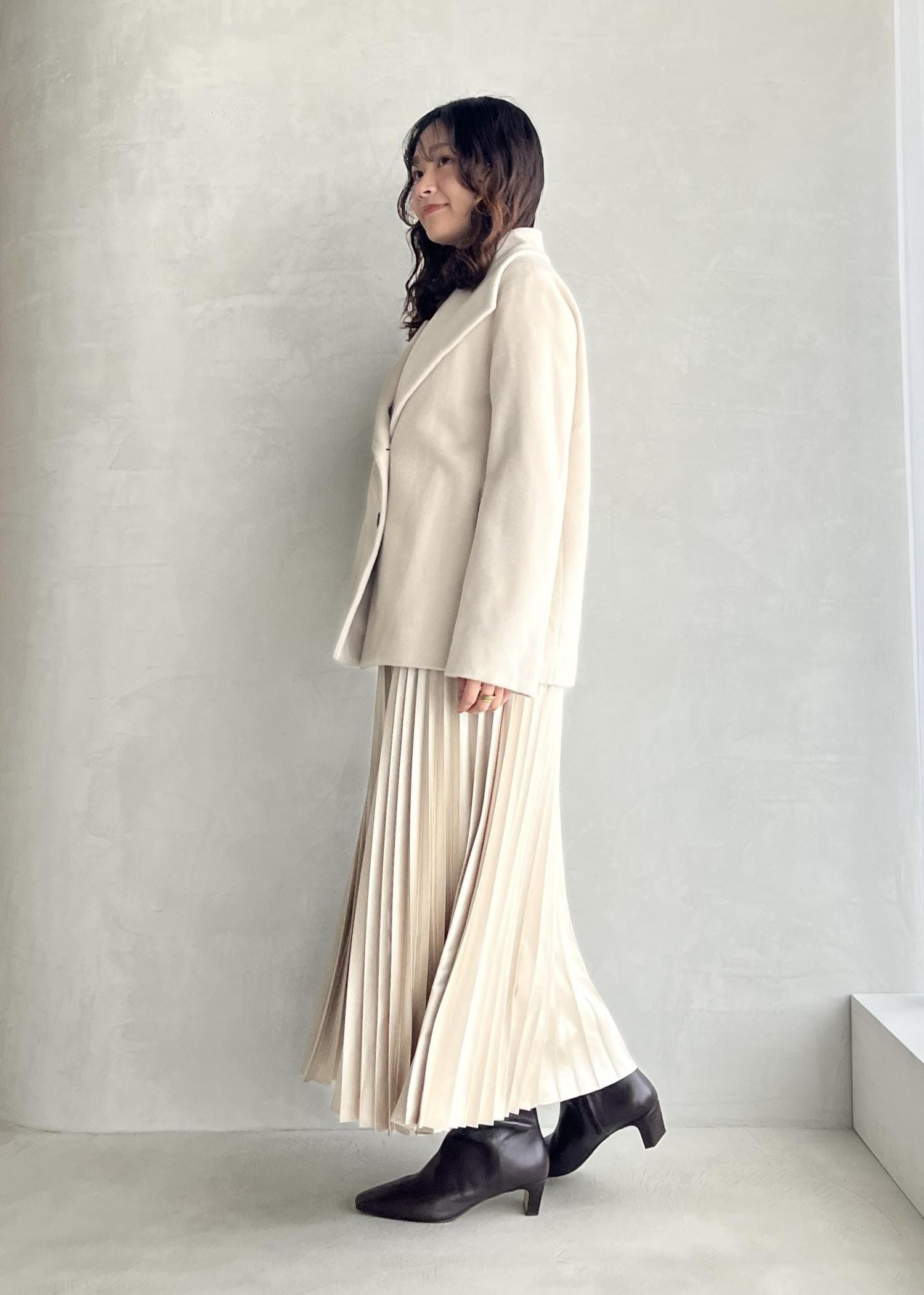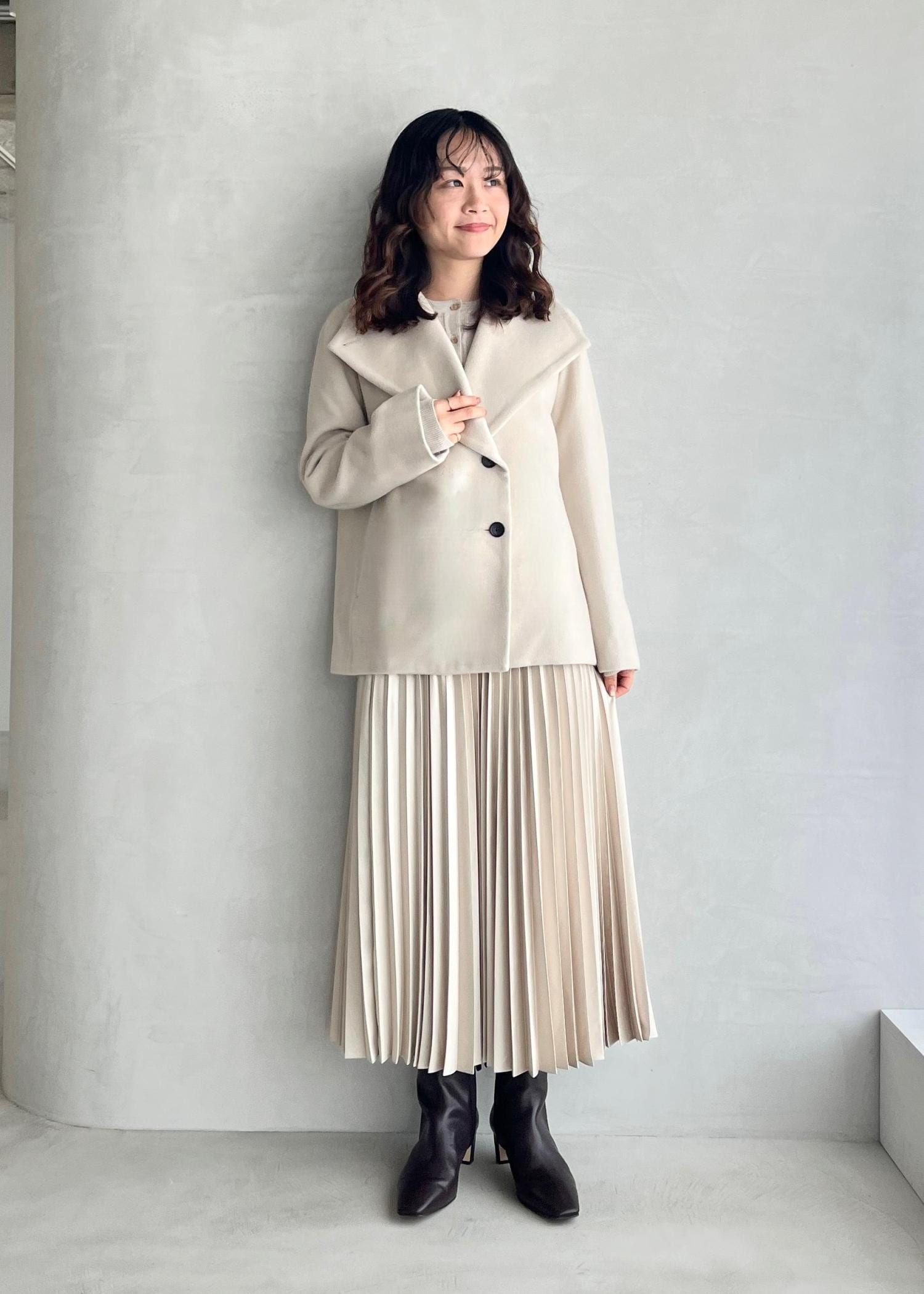 NEW!ROPÉプレミアムカシミヤ ショートコート【25AW】オフホワイト / 38¥53,900レビュー38サイズを着用しています。