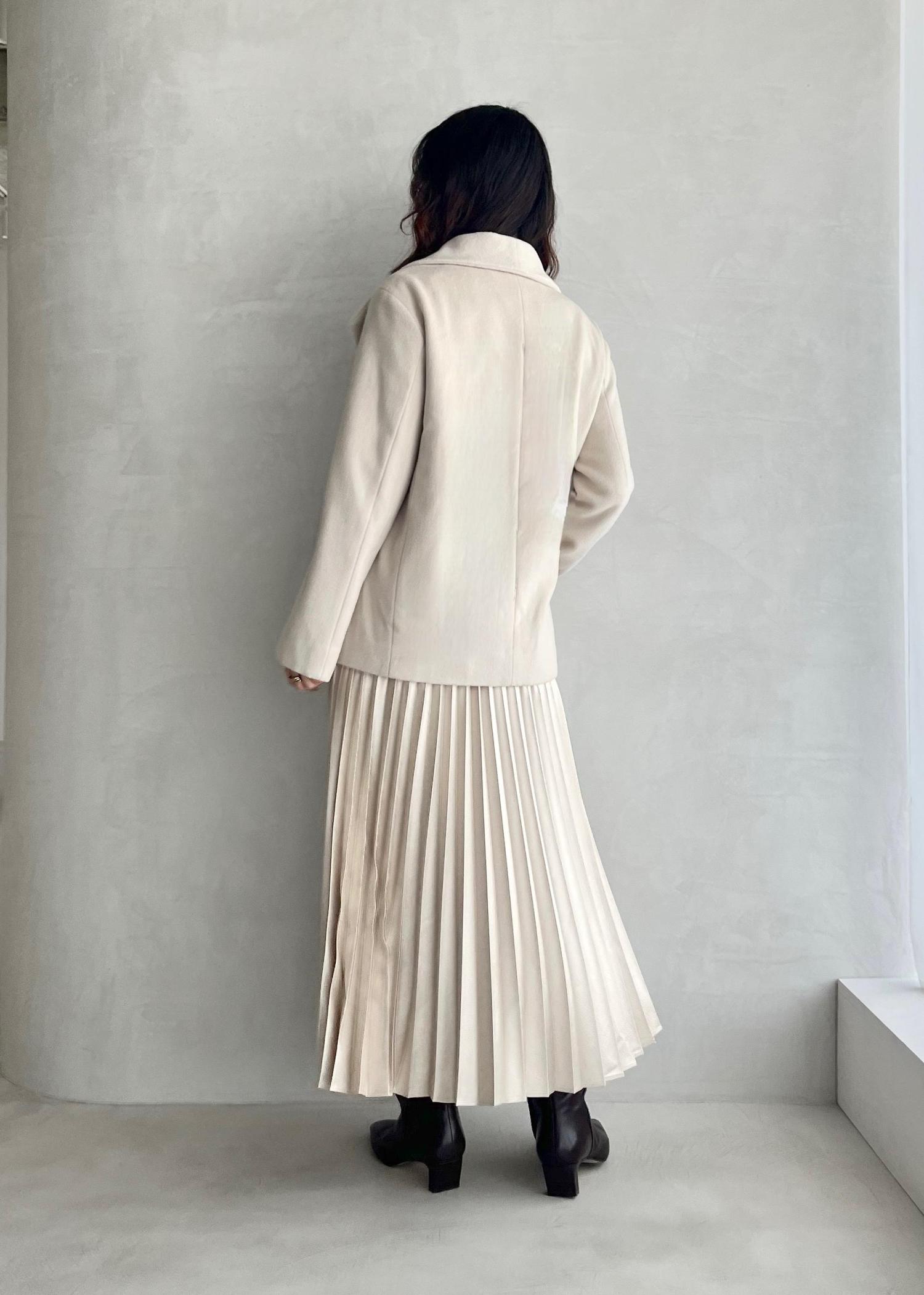メリノウールとカシミヤ素材で、裏地付きですが軽い着心地。表面の光沢感も上質に見えます◎