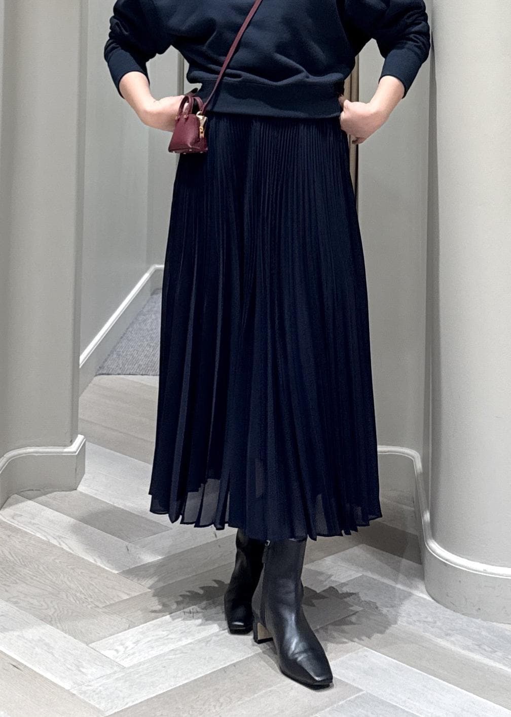 スウェット×プリーツスカートの大人カジュアルコーデです♪
