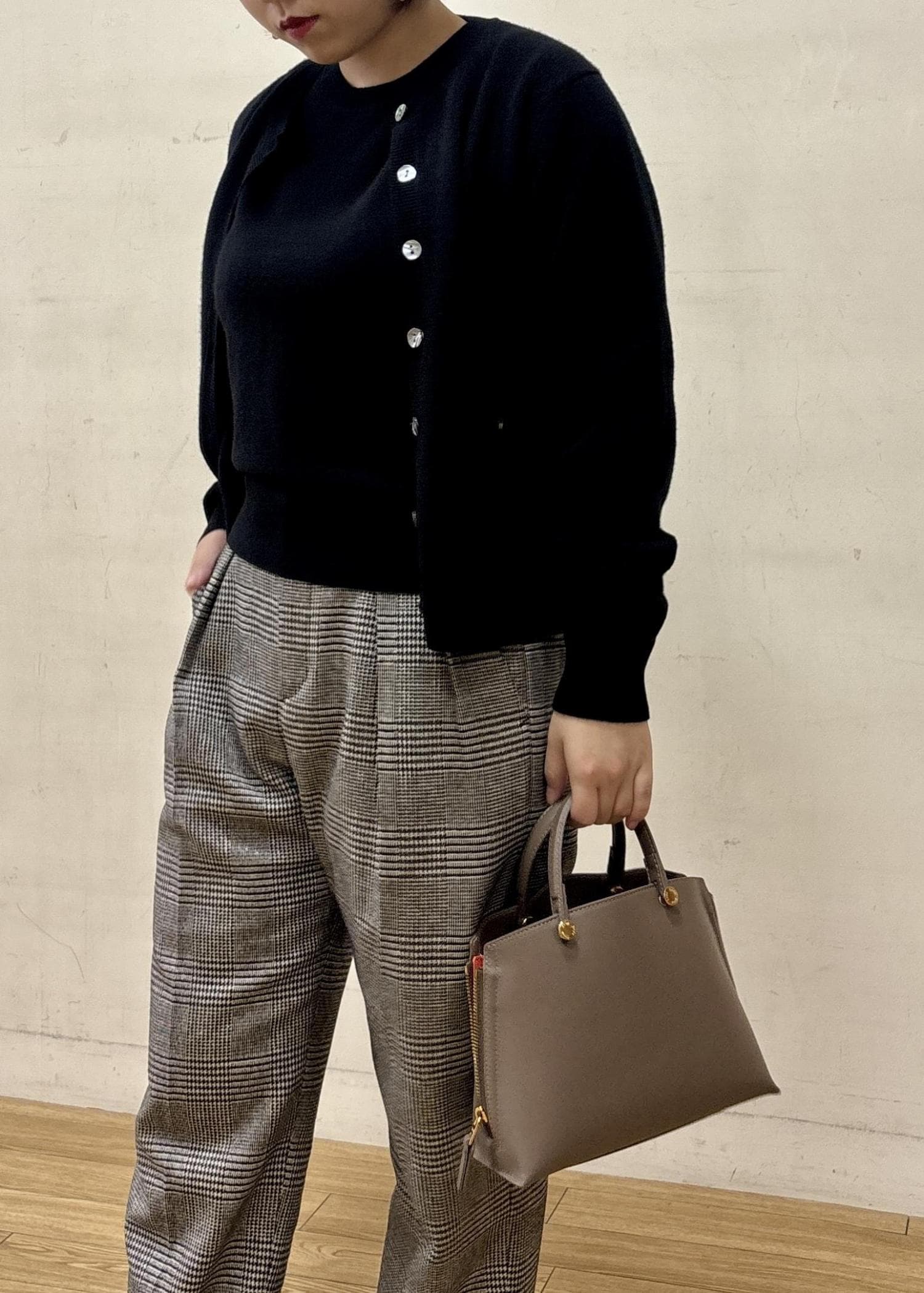 ROPÉ【一部WEB限定】ウールカシミヤ ブレンドニットカーディガン/イージーケアブラック / F¥27,500レビュー着丈はヒップが隠れない程度で、アーム周りもゆとりがありました。