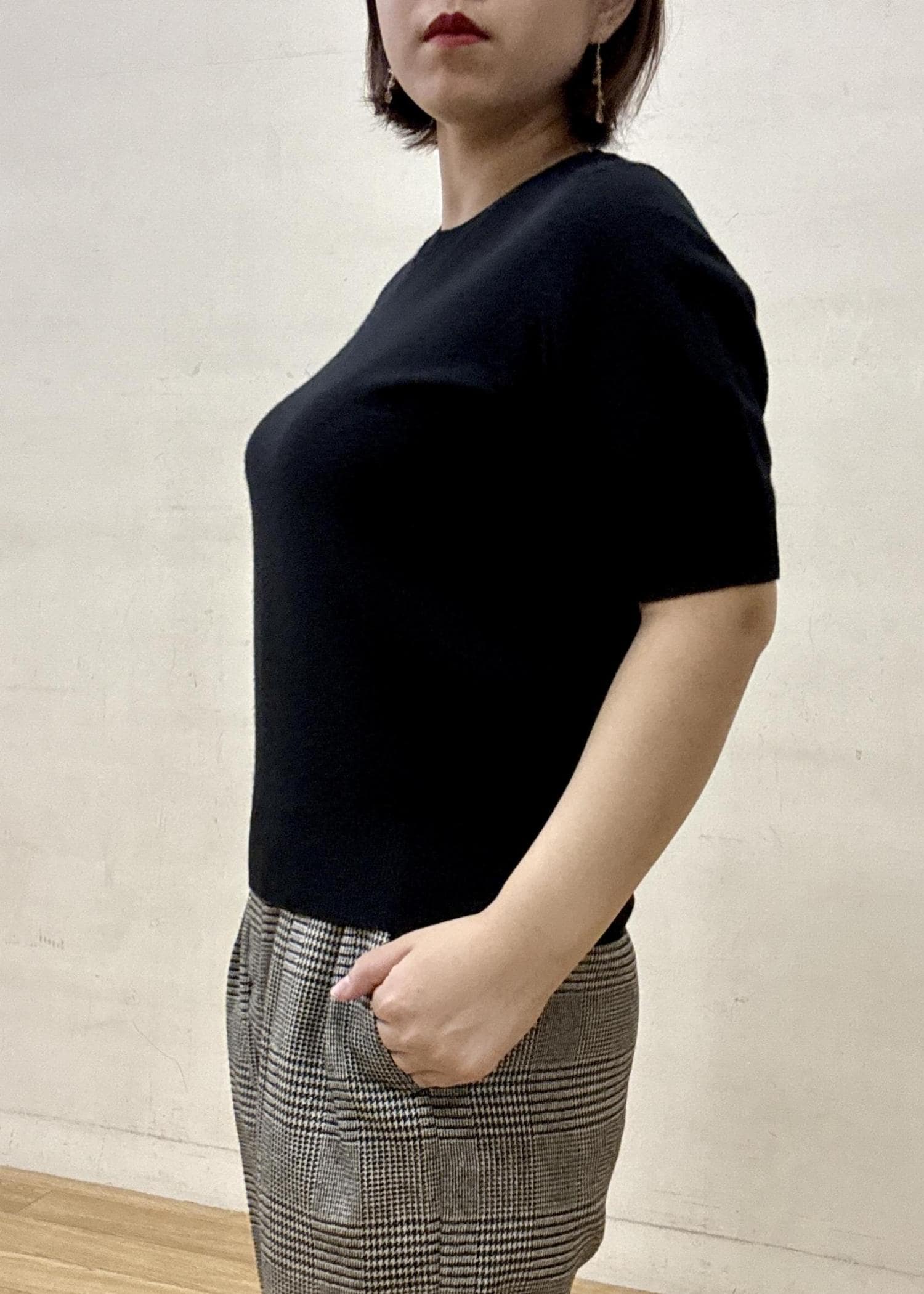 ROPÉウールカシミヤブレンド 5分袖ニットプルオーバー/イージーケアブラック / F¥19,800レビューやや厚めの生地感で透け感はまったくありません。