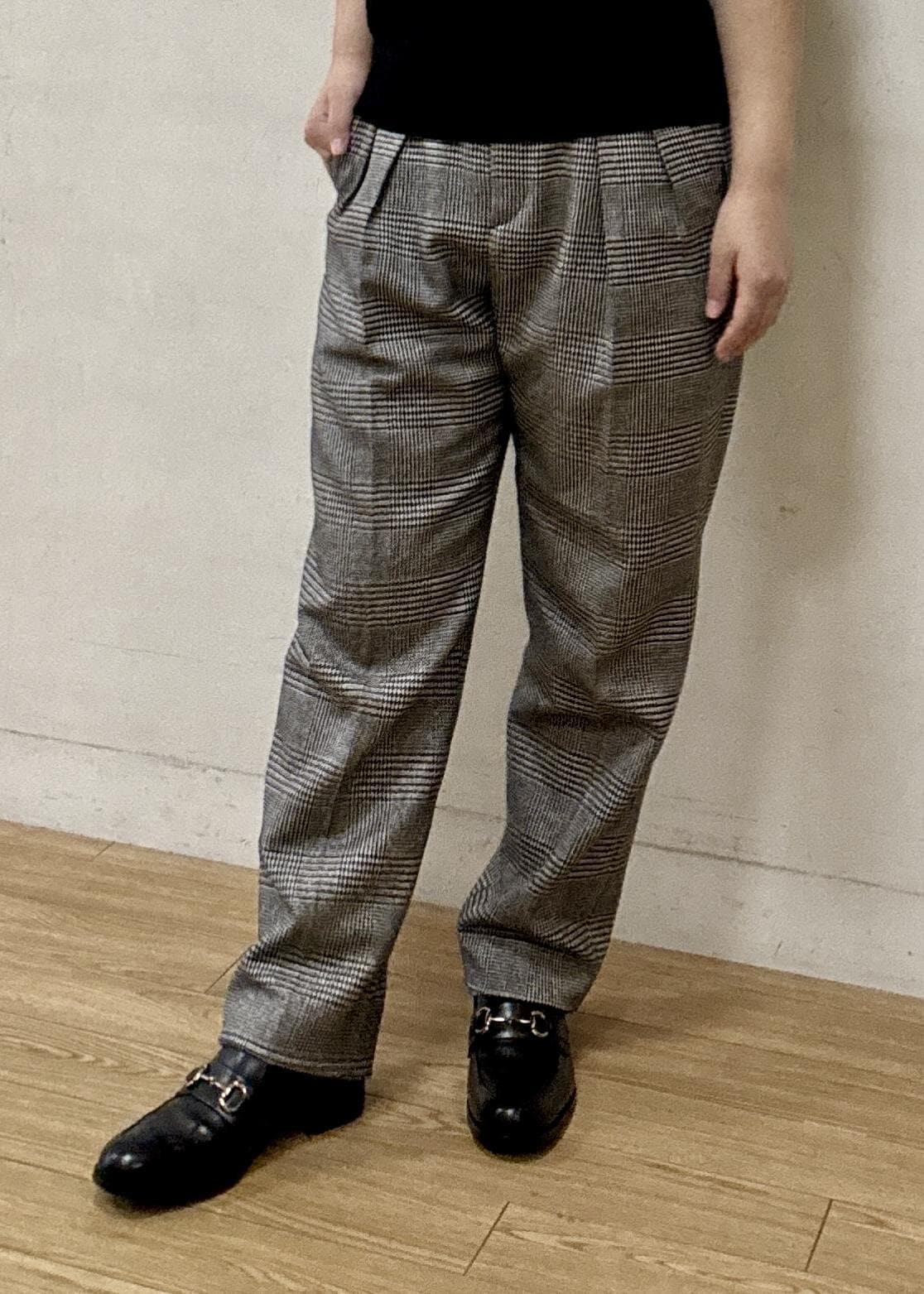 ROPÉウールレーヨンクラシック2タックパンツ(ヘリンボーン/グレンチェック)/セットアップ対応ブラック系 / 36¥27,500レビュー2タックで気になるヒップや太もも周りもさりげなくカバーしてくれるシルエットです。